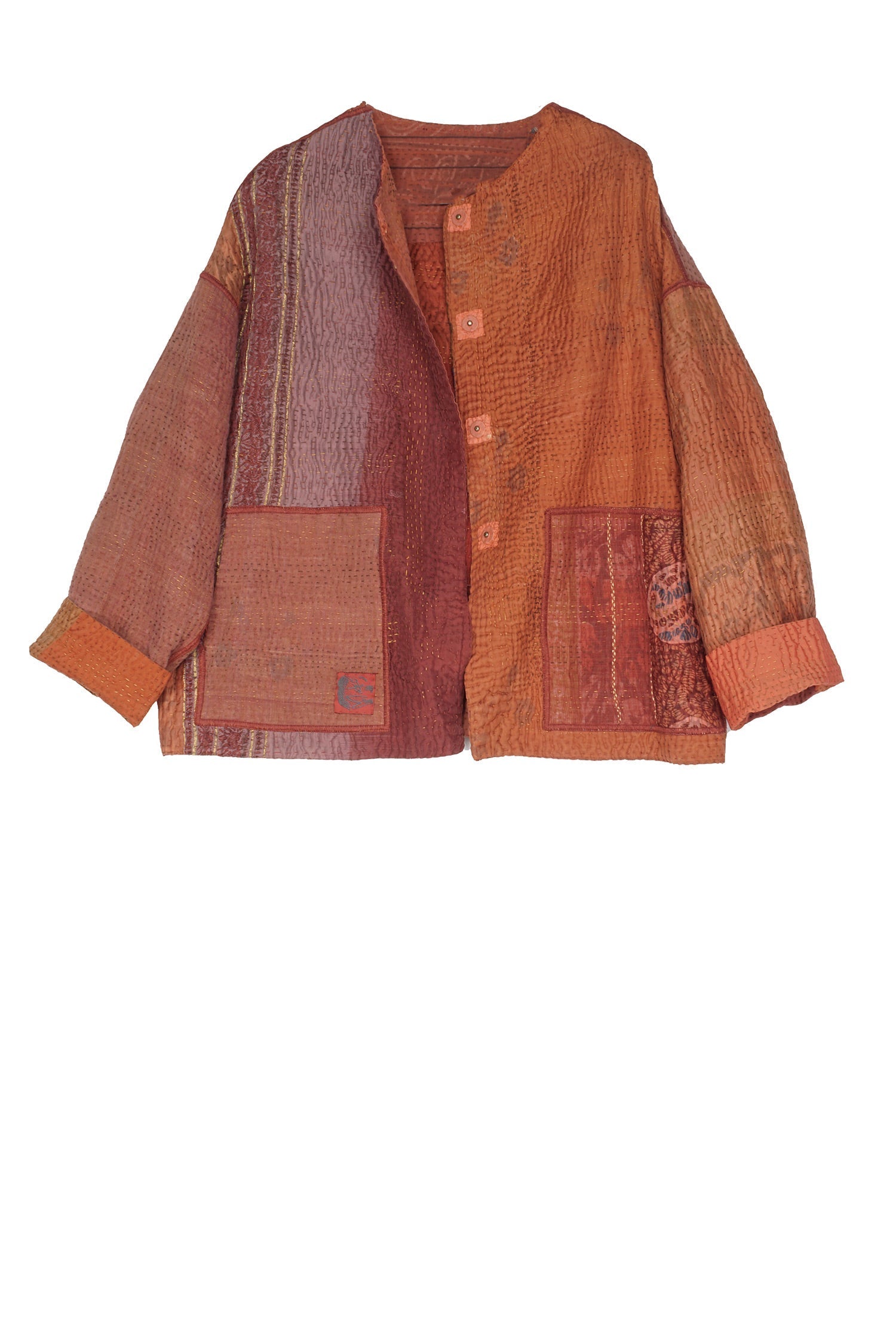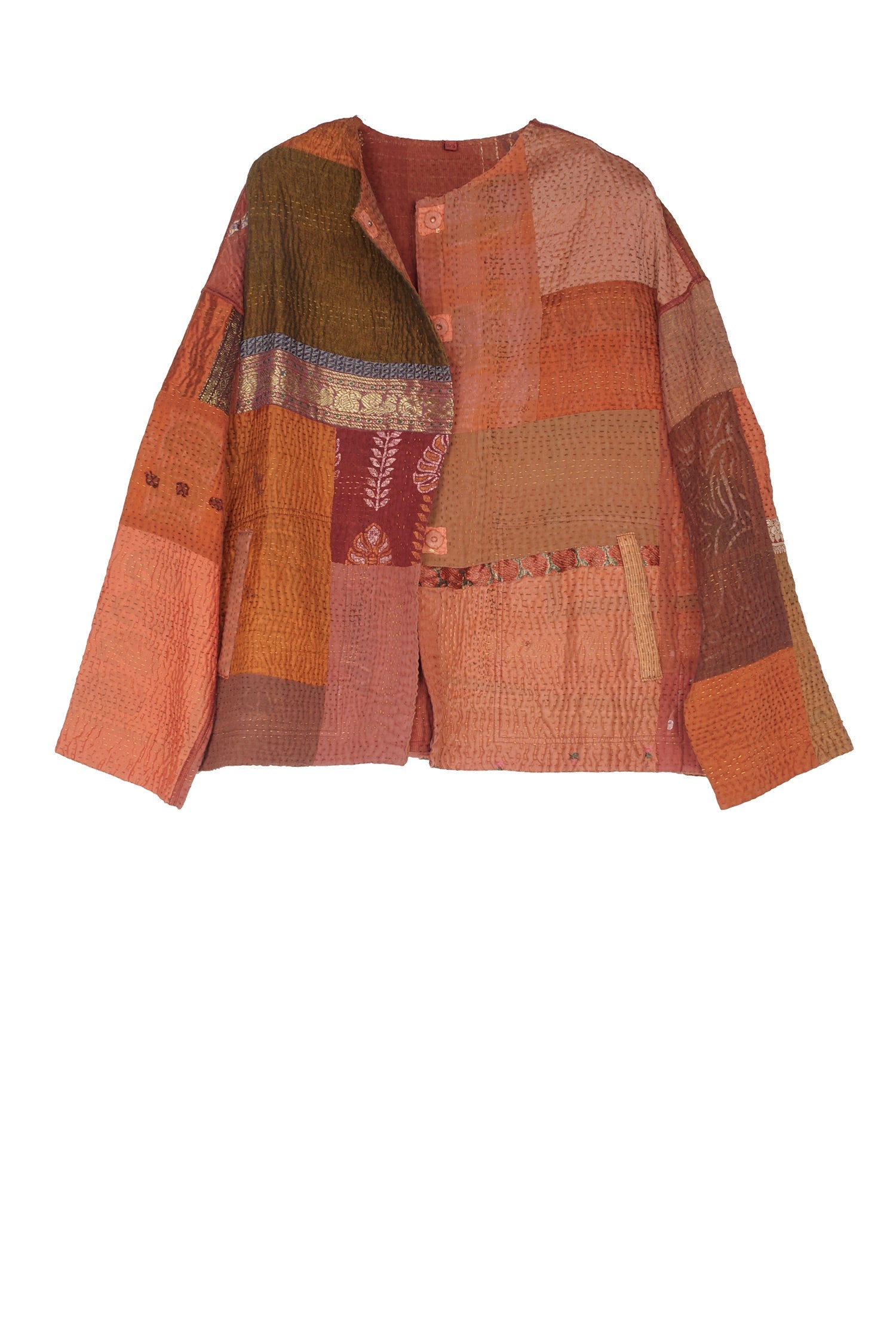COTTON SILK SW PATCH KANTHA CREW NECK SHORT JKT - ws4053-org -