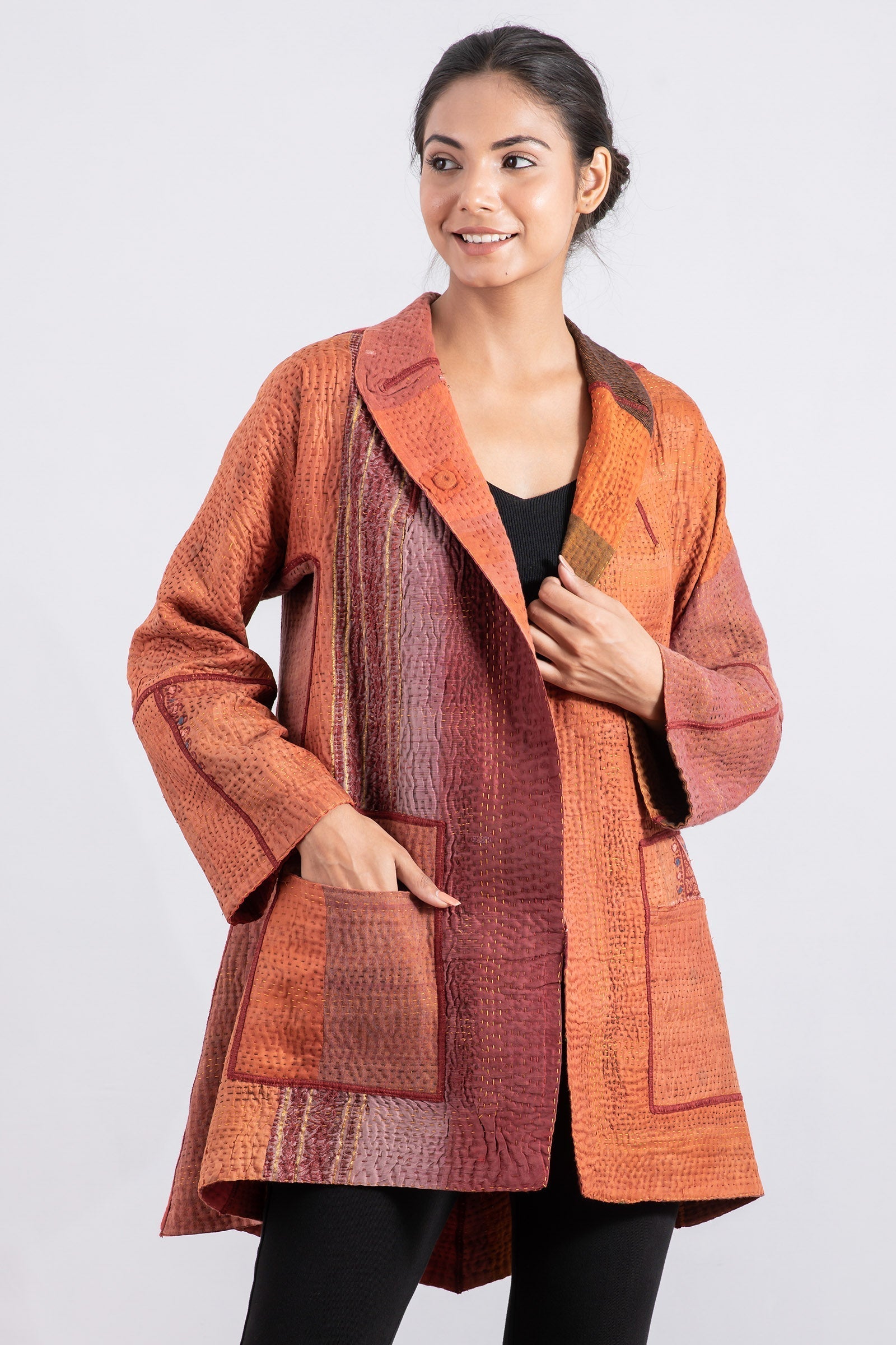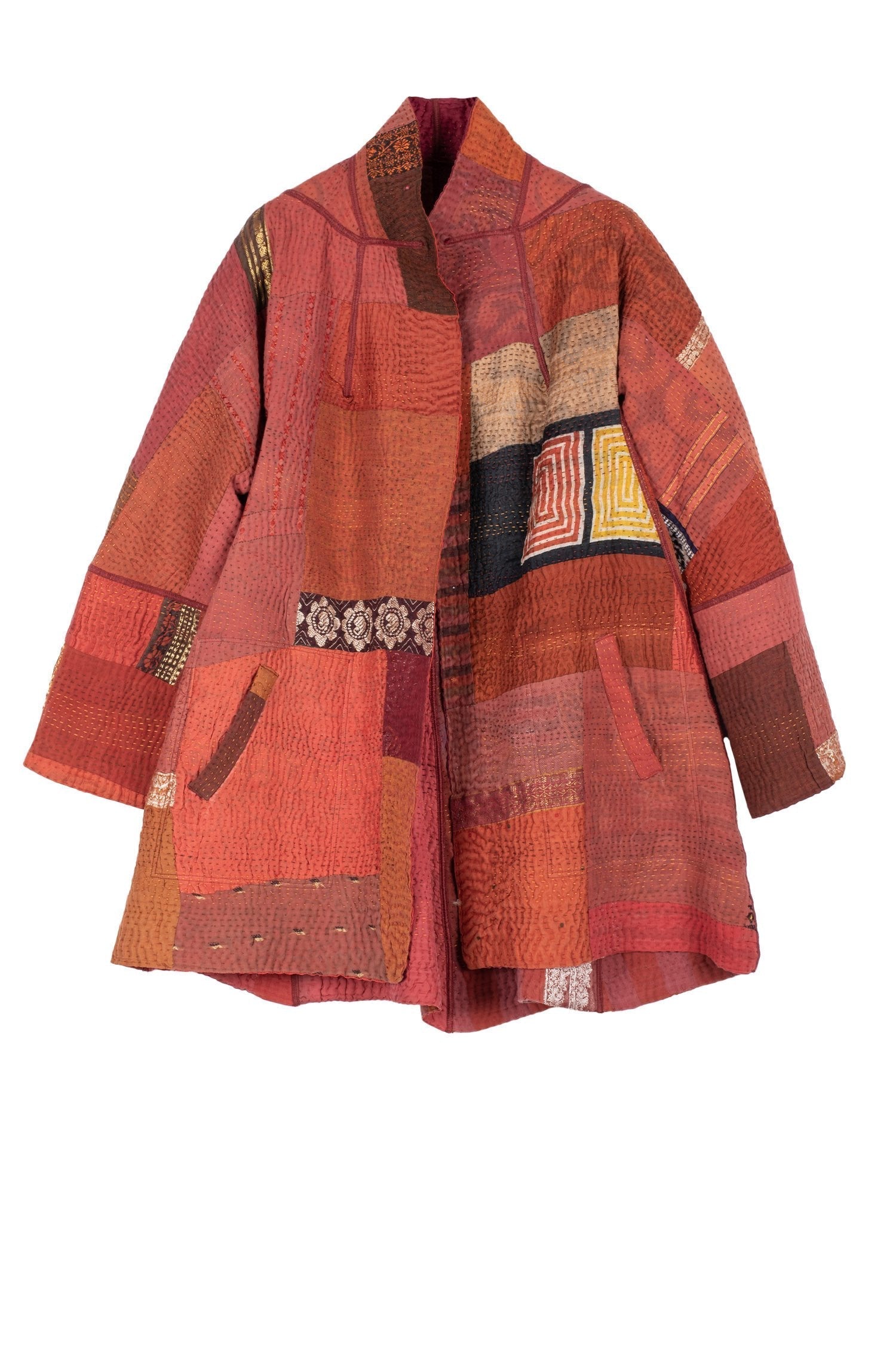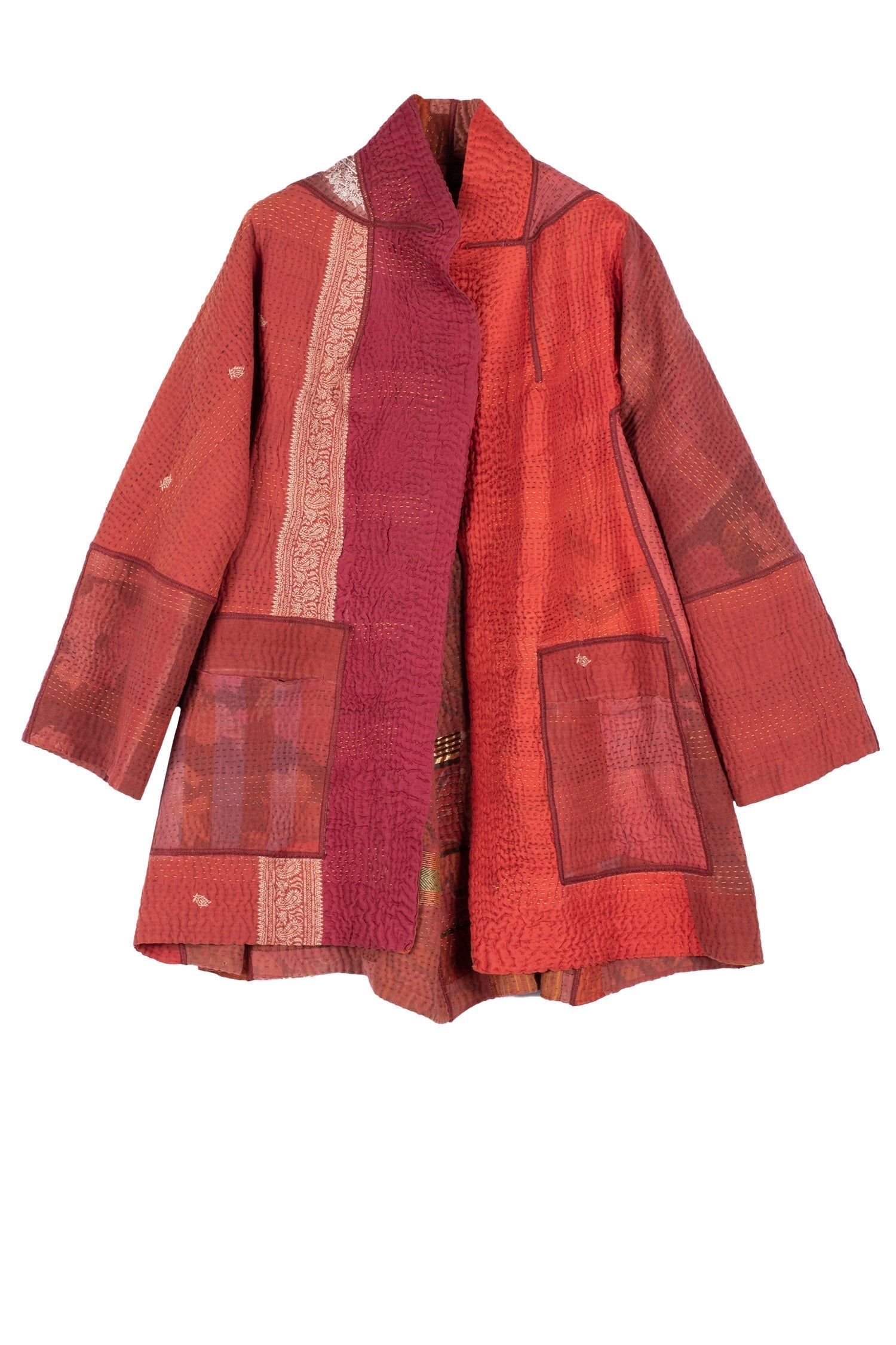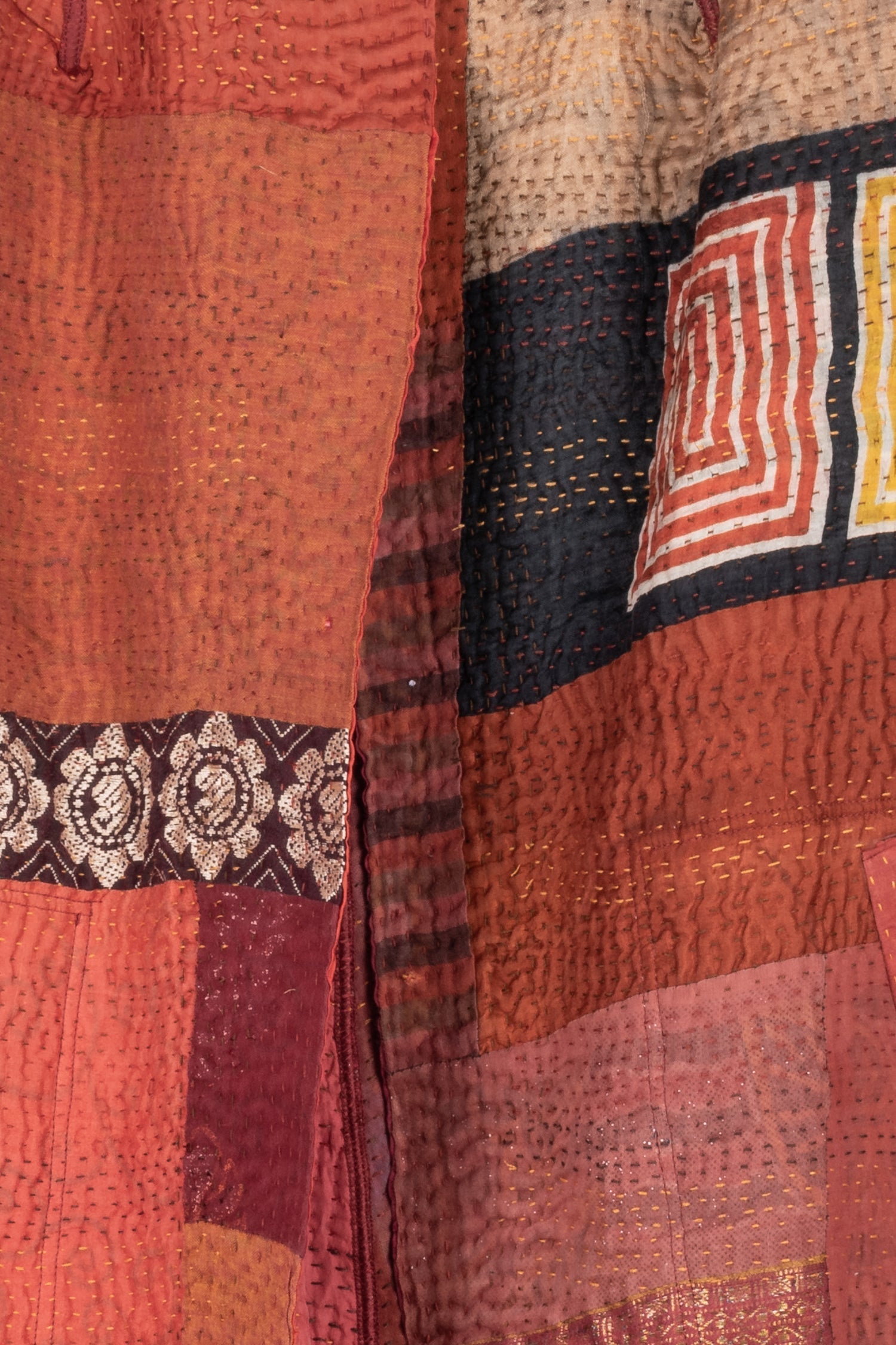 4 Layer Vintage Saris with Hand Stitches on Entire Garment - Reversible