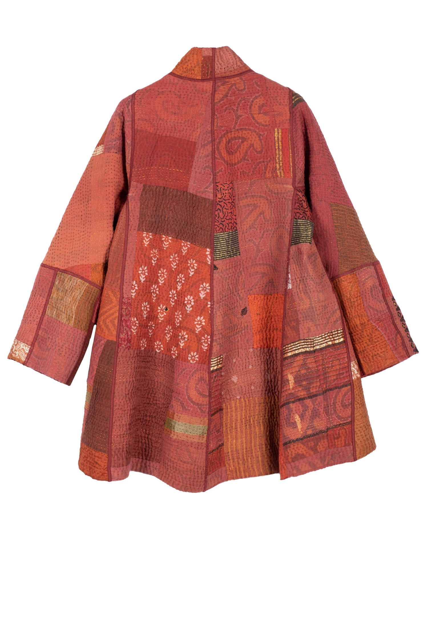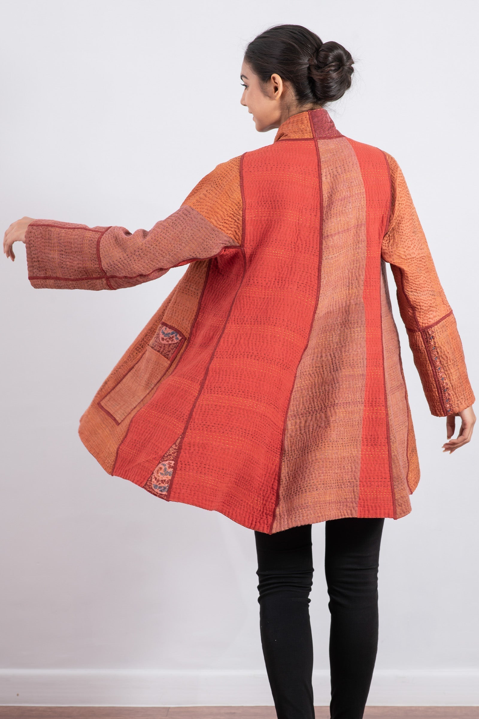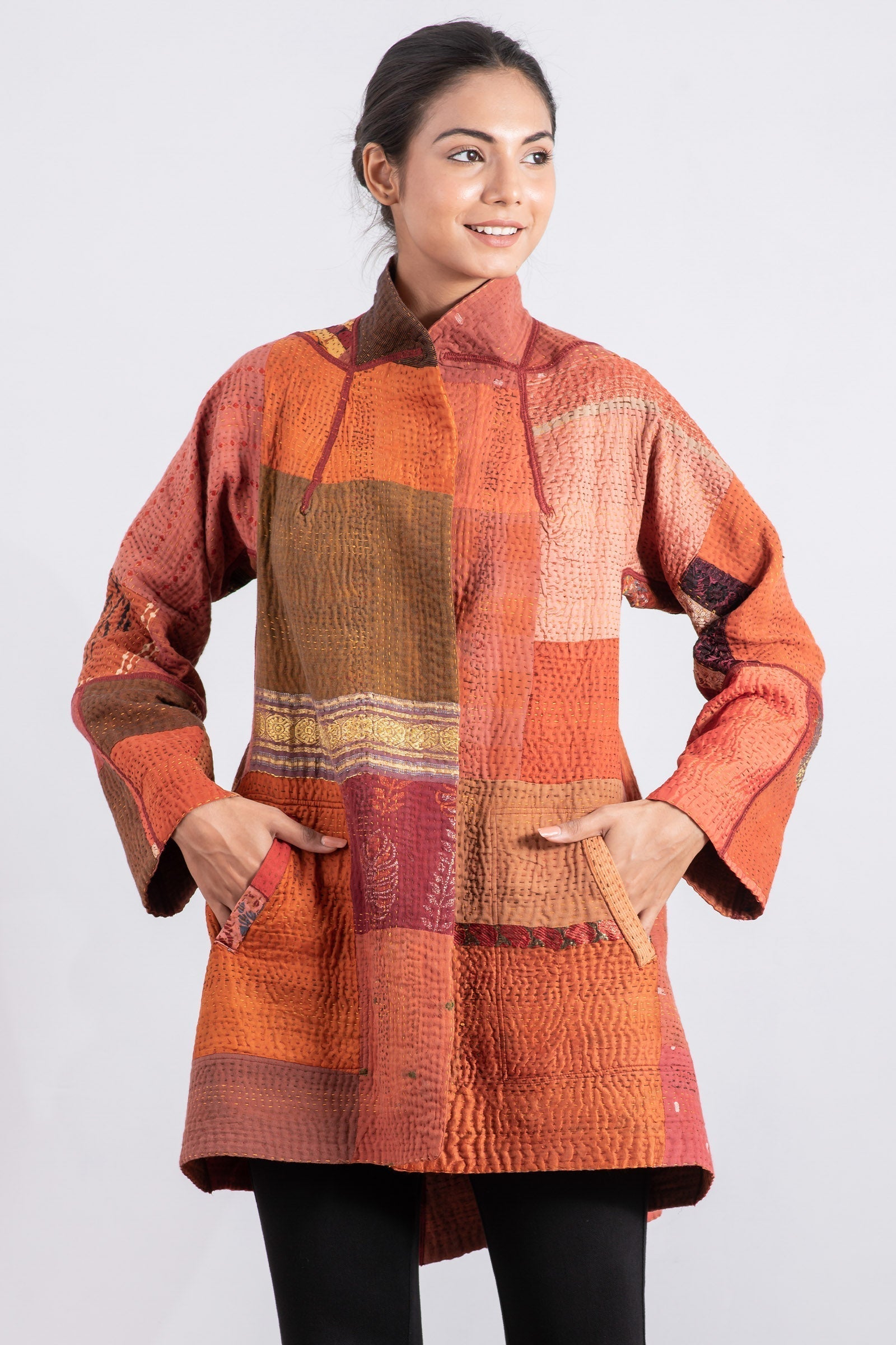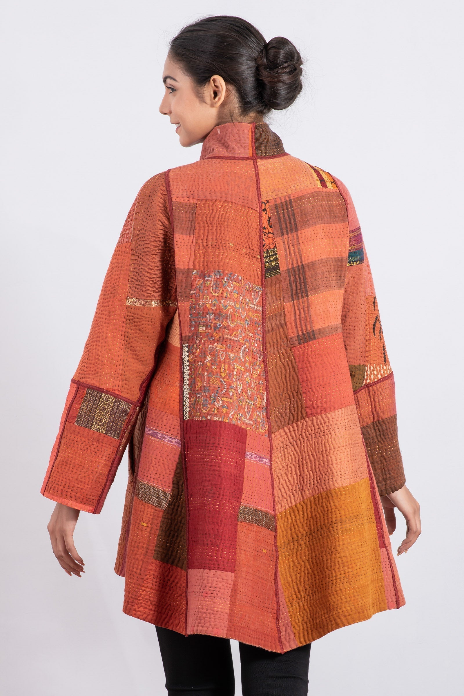COTTON SILK SW PATCH KANTHA FLARE LONG JKT - ws4021-org -