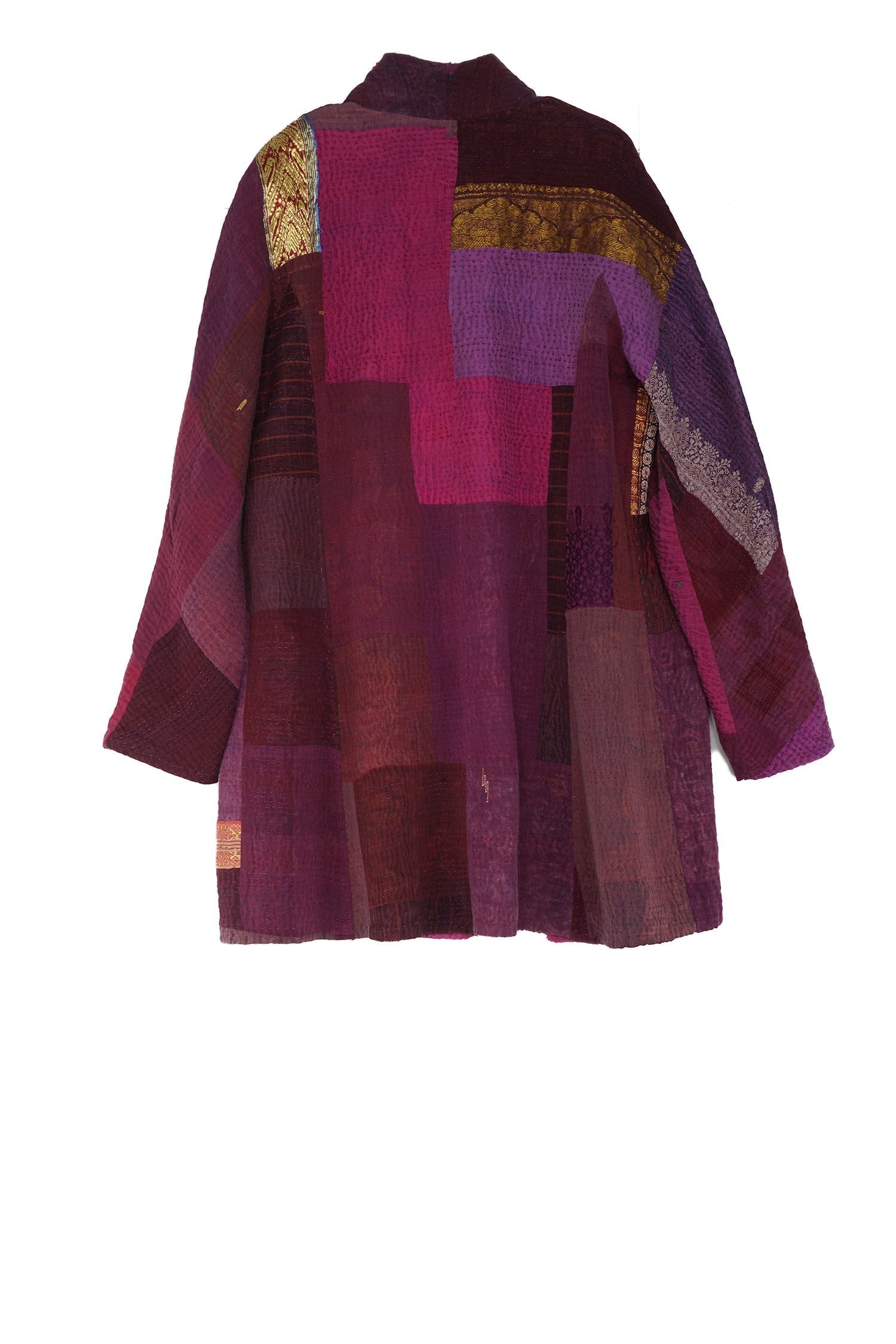 4 Layer Vintage Saris with Hand Stitches on Entire Garment - Reversible