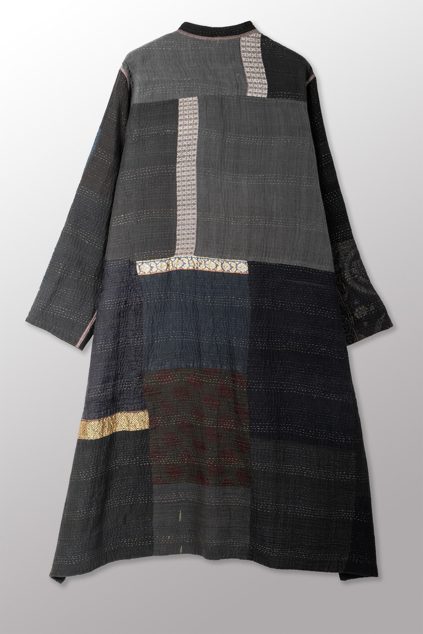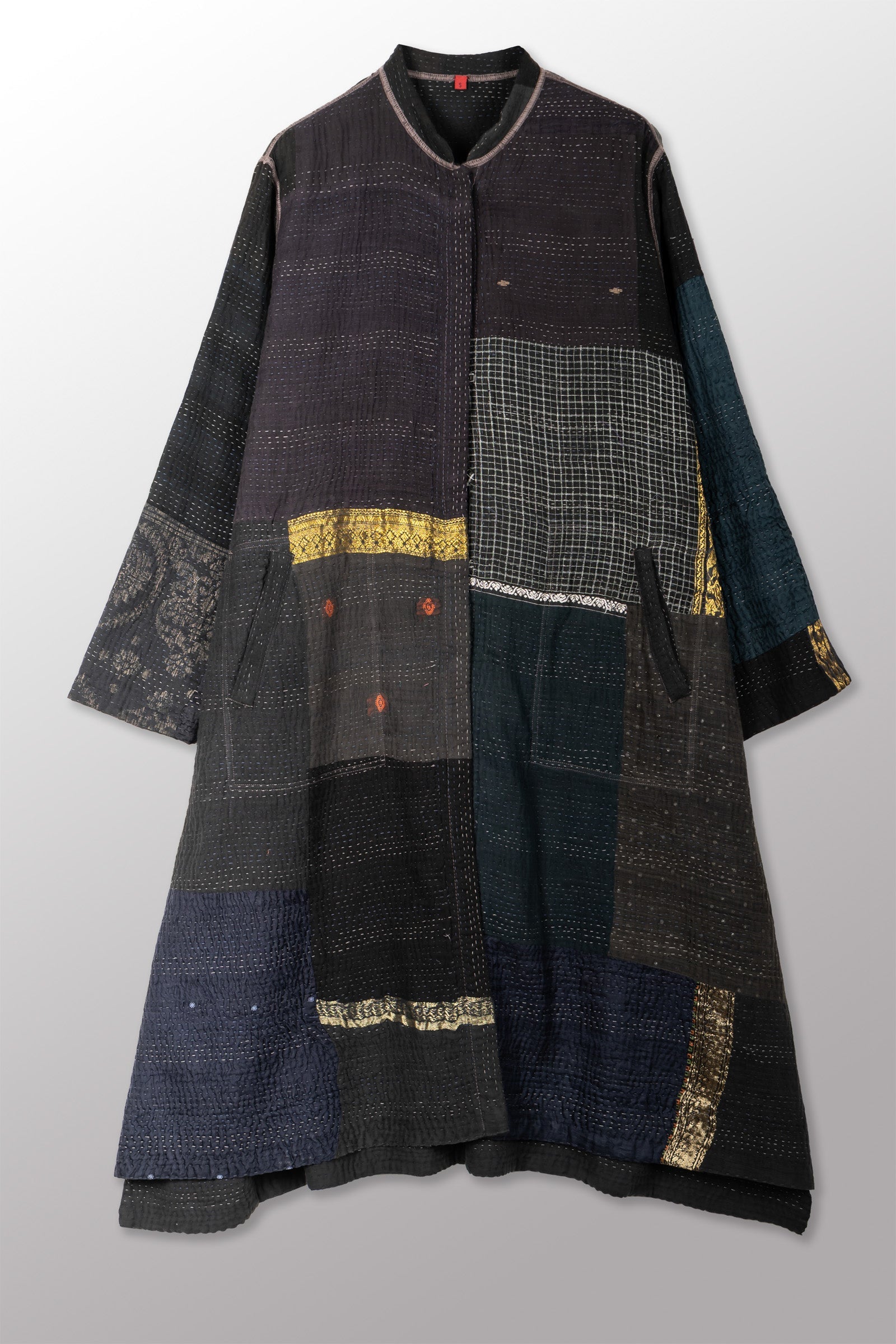 COTTON SILK SW PATCH KANTHA KAFTAN COAT - ws4343-blk -