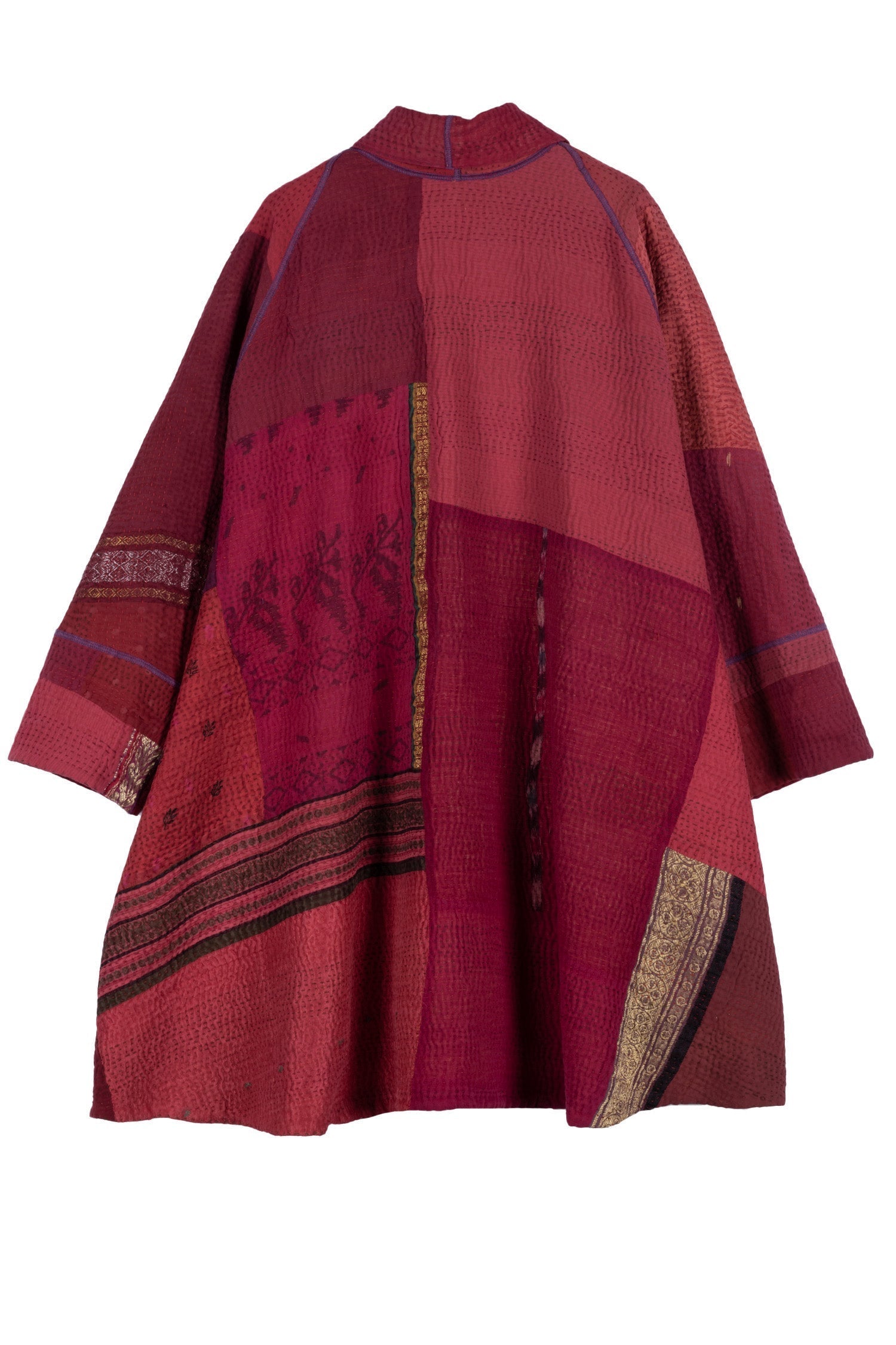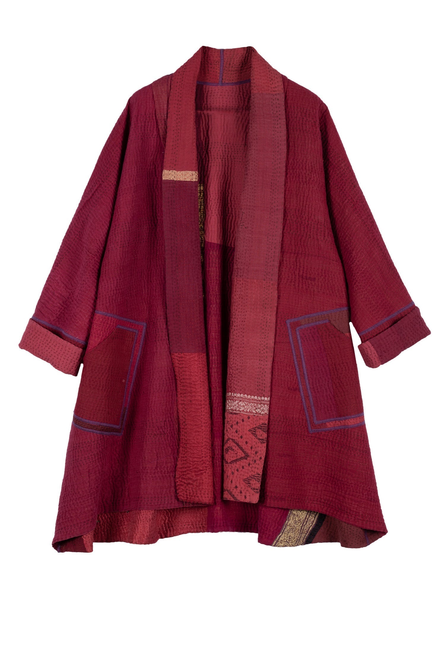 COTTON SILK SW PATCH KANTHA KIMONO LONG JKT - ws4005-red -