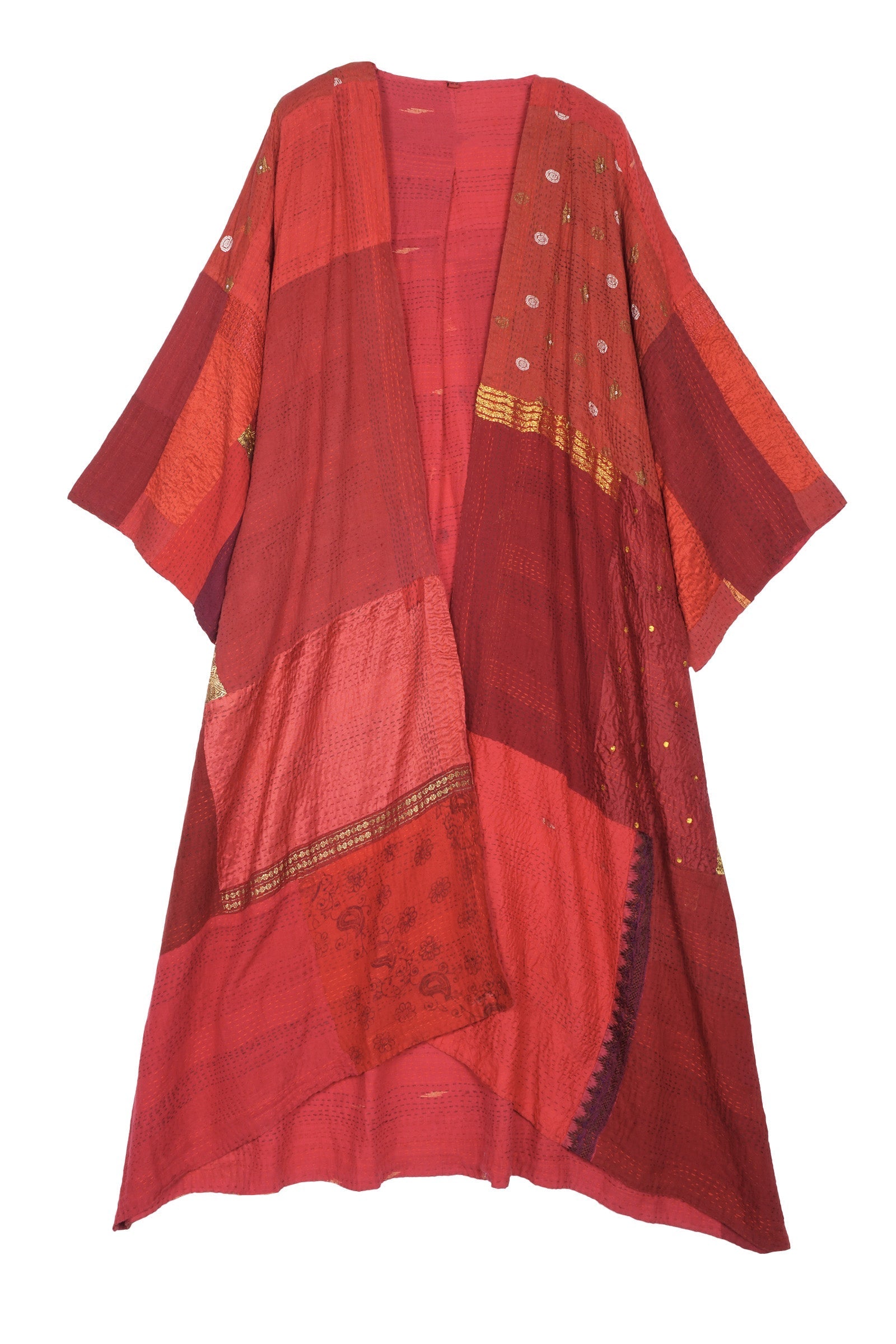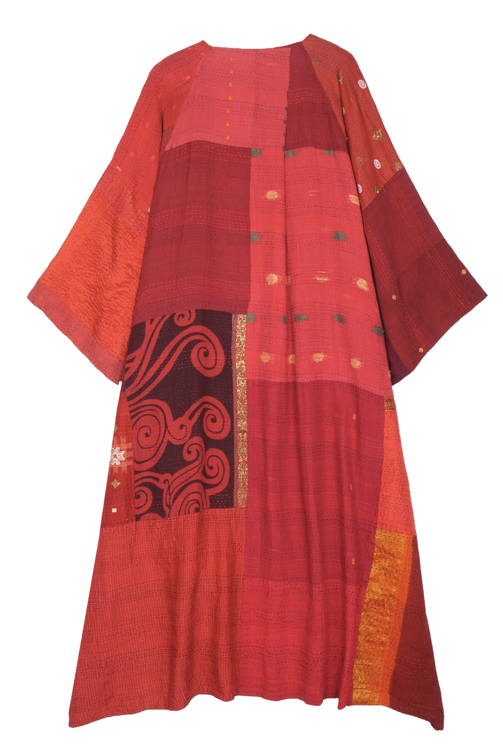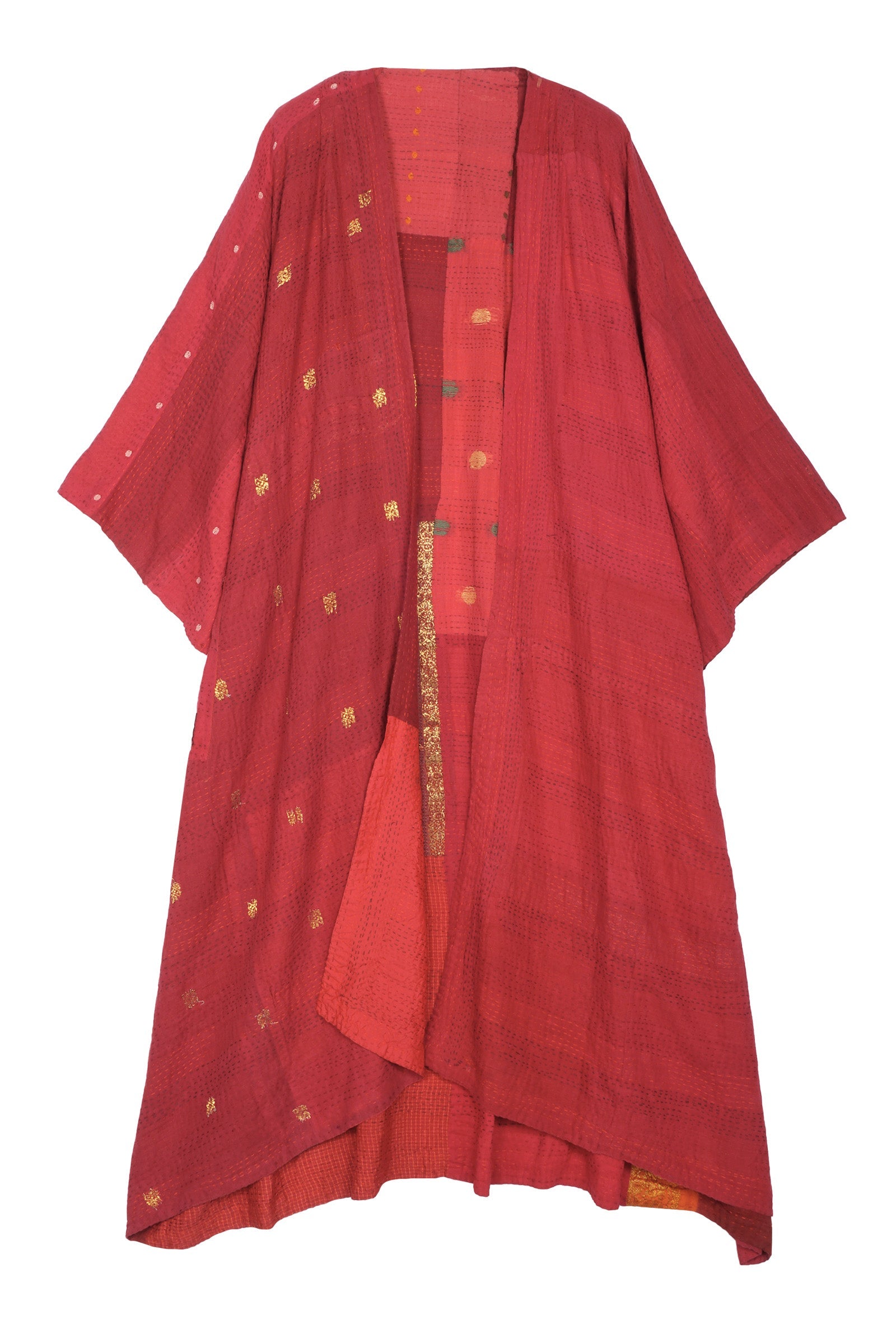 COTTON SILK SW PATCH KANTHA KIMONO MAXI - ws2318-red -