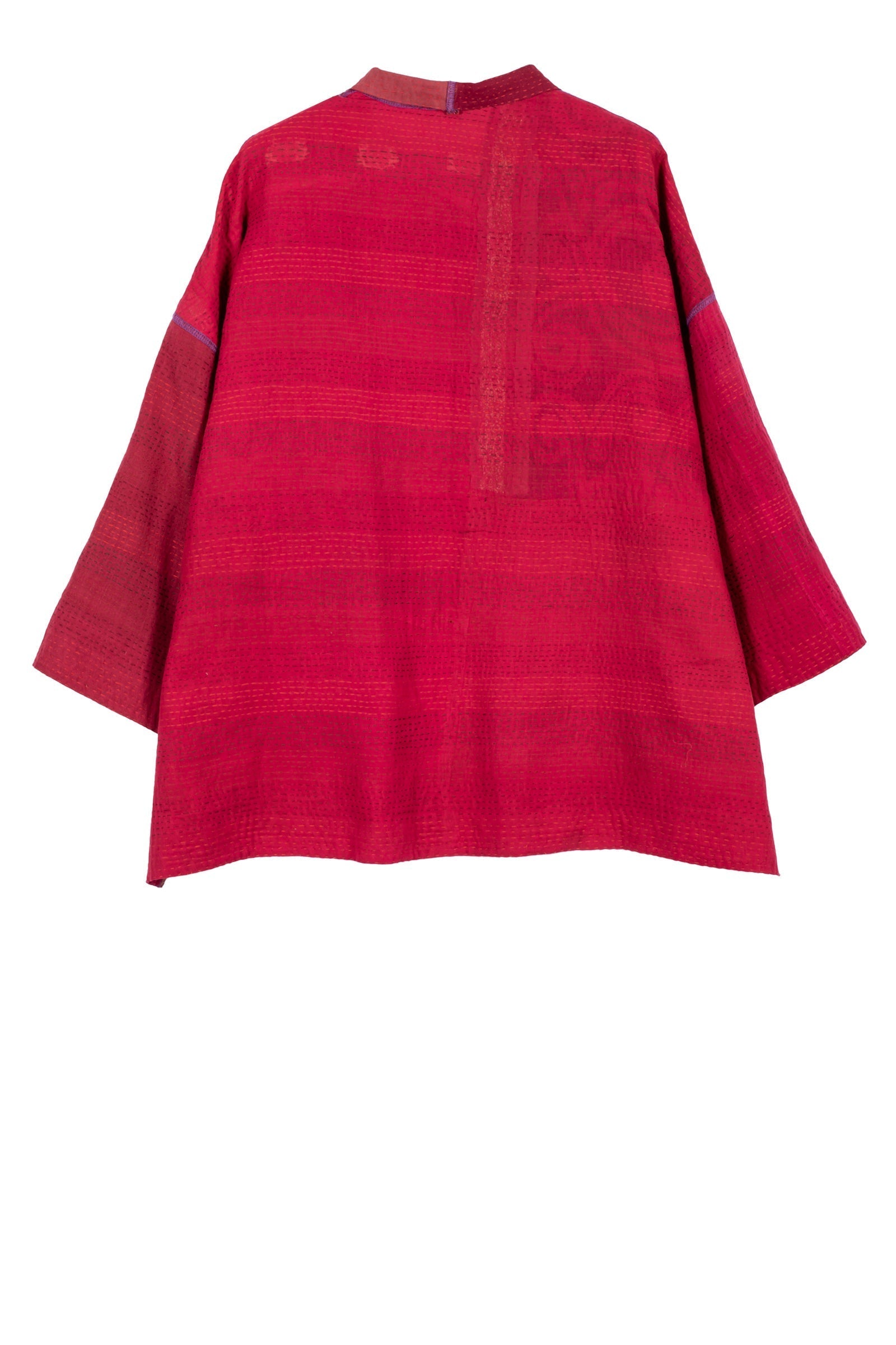 COTTON SILK SW PATCH KANTHA MINI KIMONO JACKET - ws2055-red -