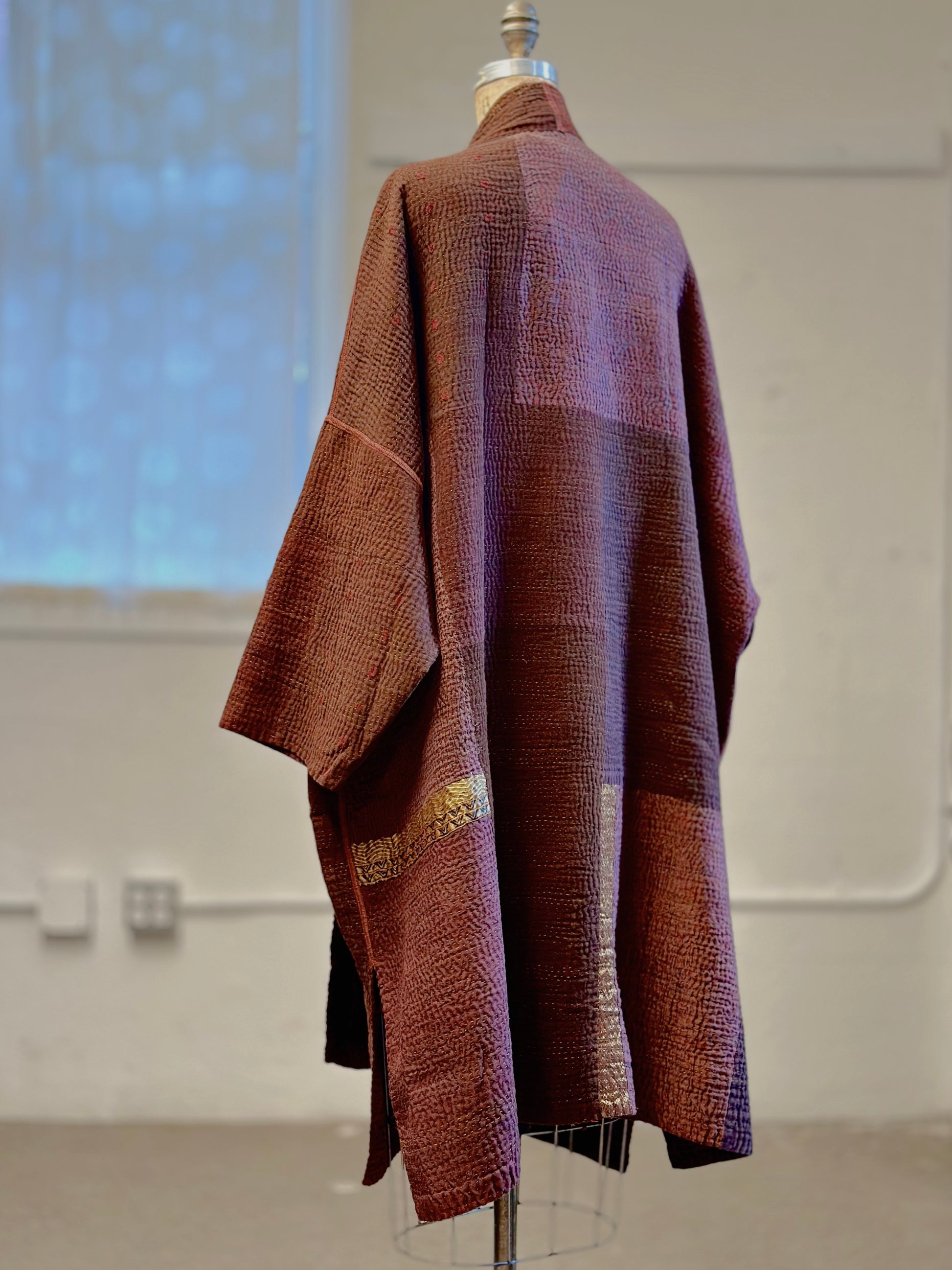 COTTON SILK SW PATCH KANTHA NEW KIMONO WRAP LONG - ws4360-brn -