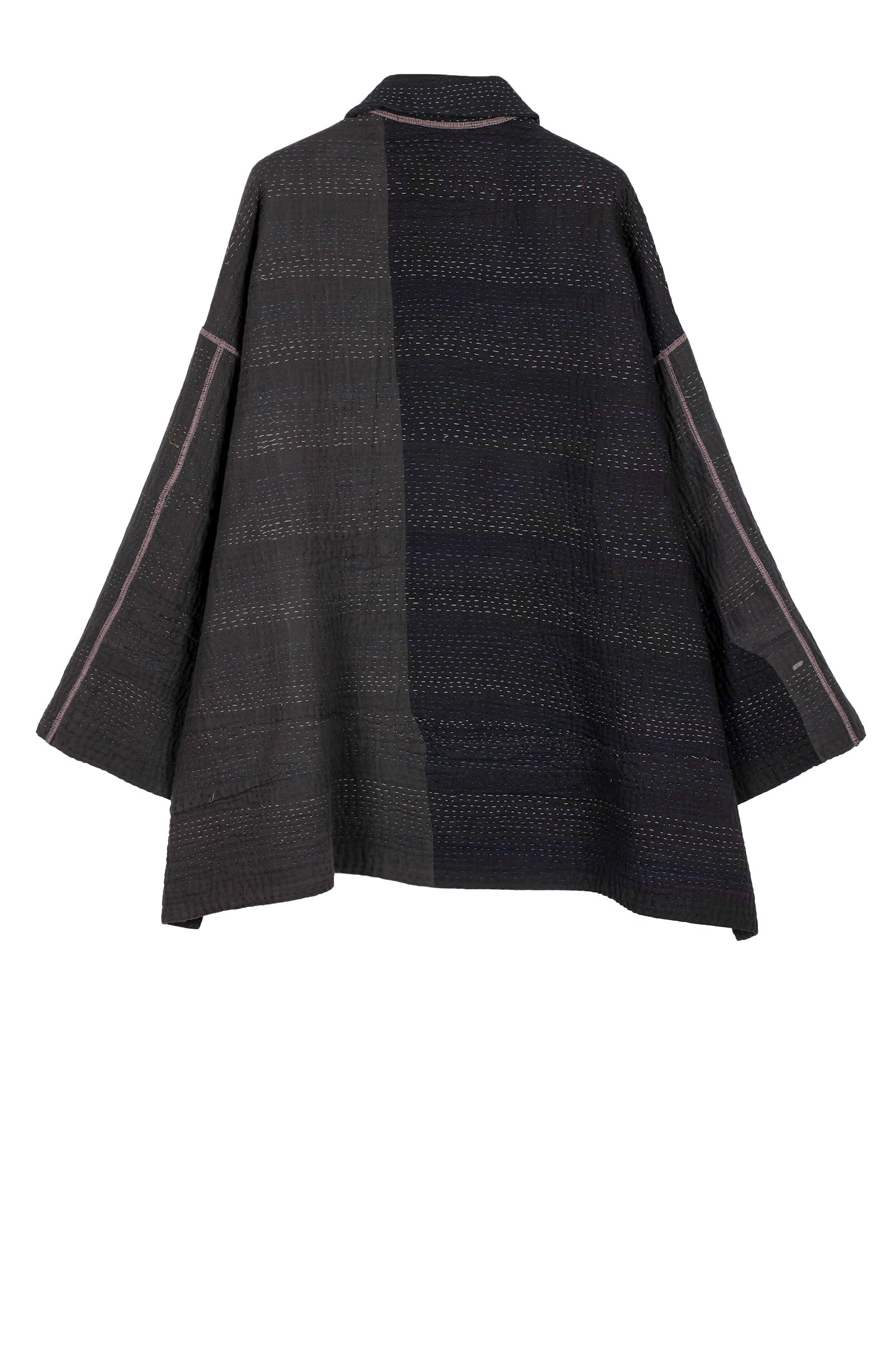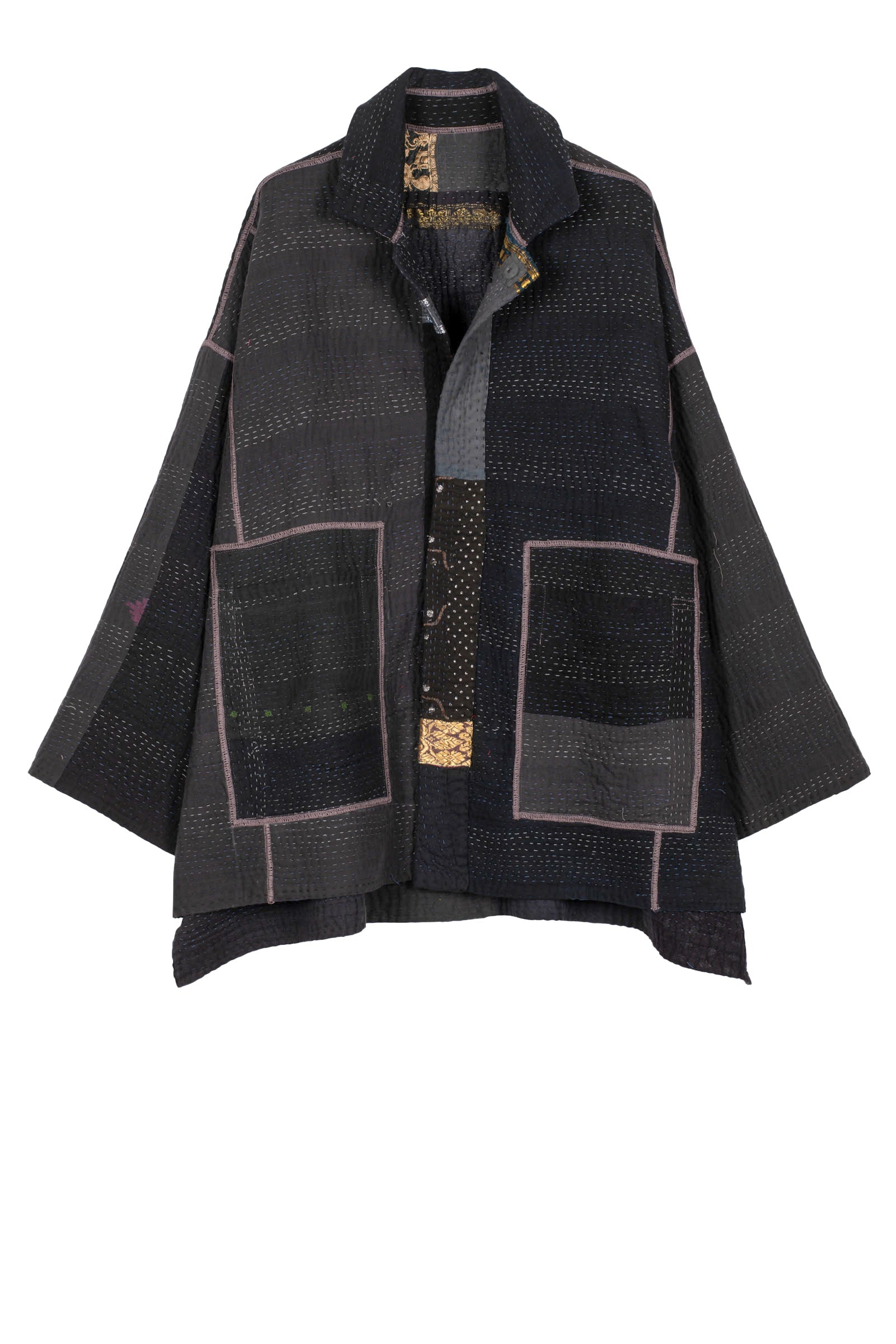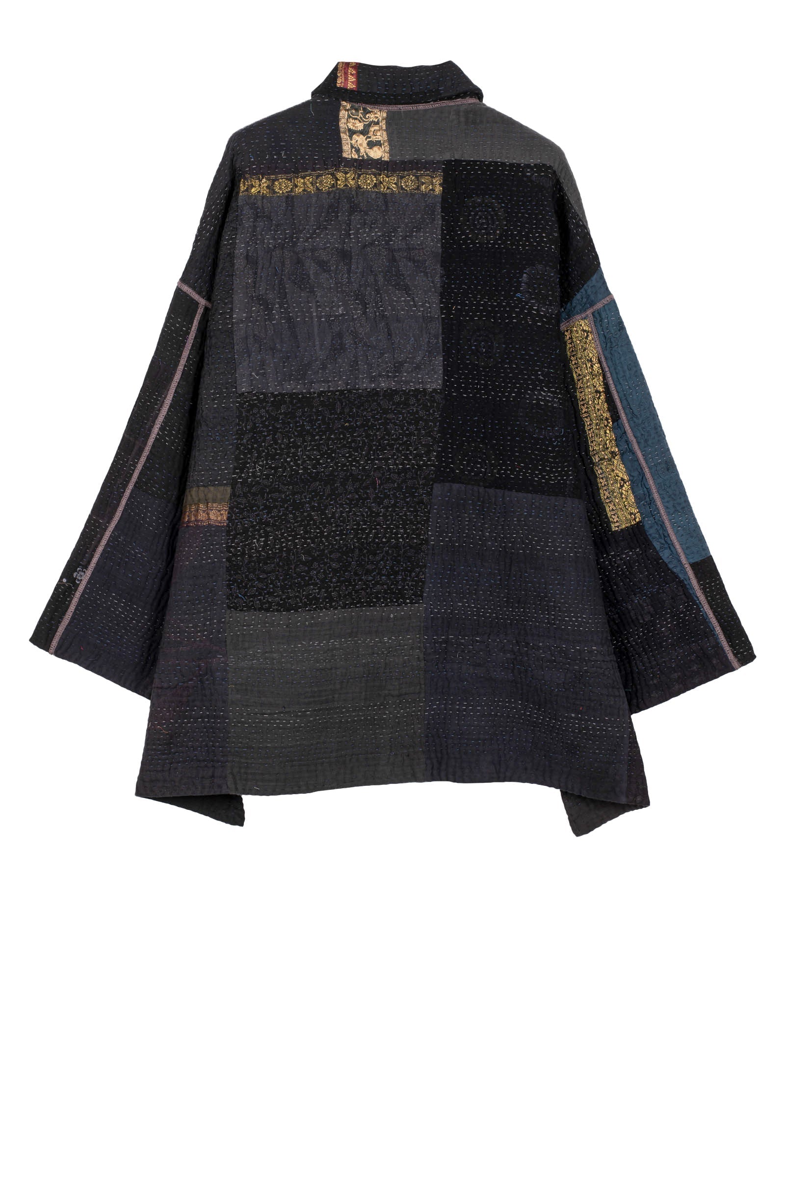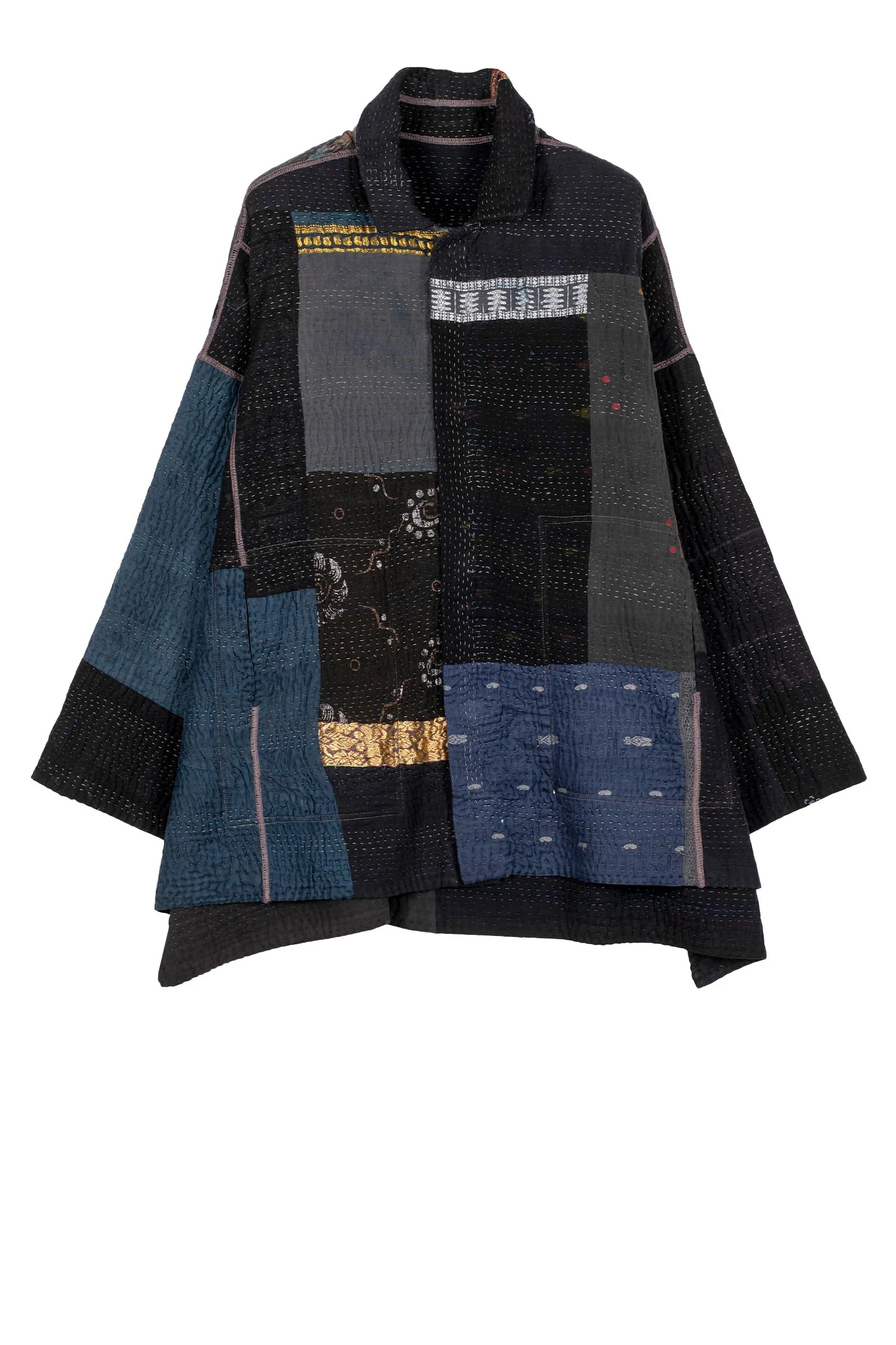 COTTON SILK SW PATCH KANTHA OVERSIZED MINI COAT - ws4332-blk -