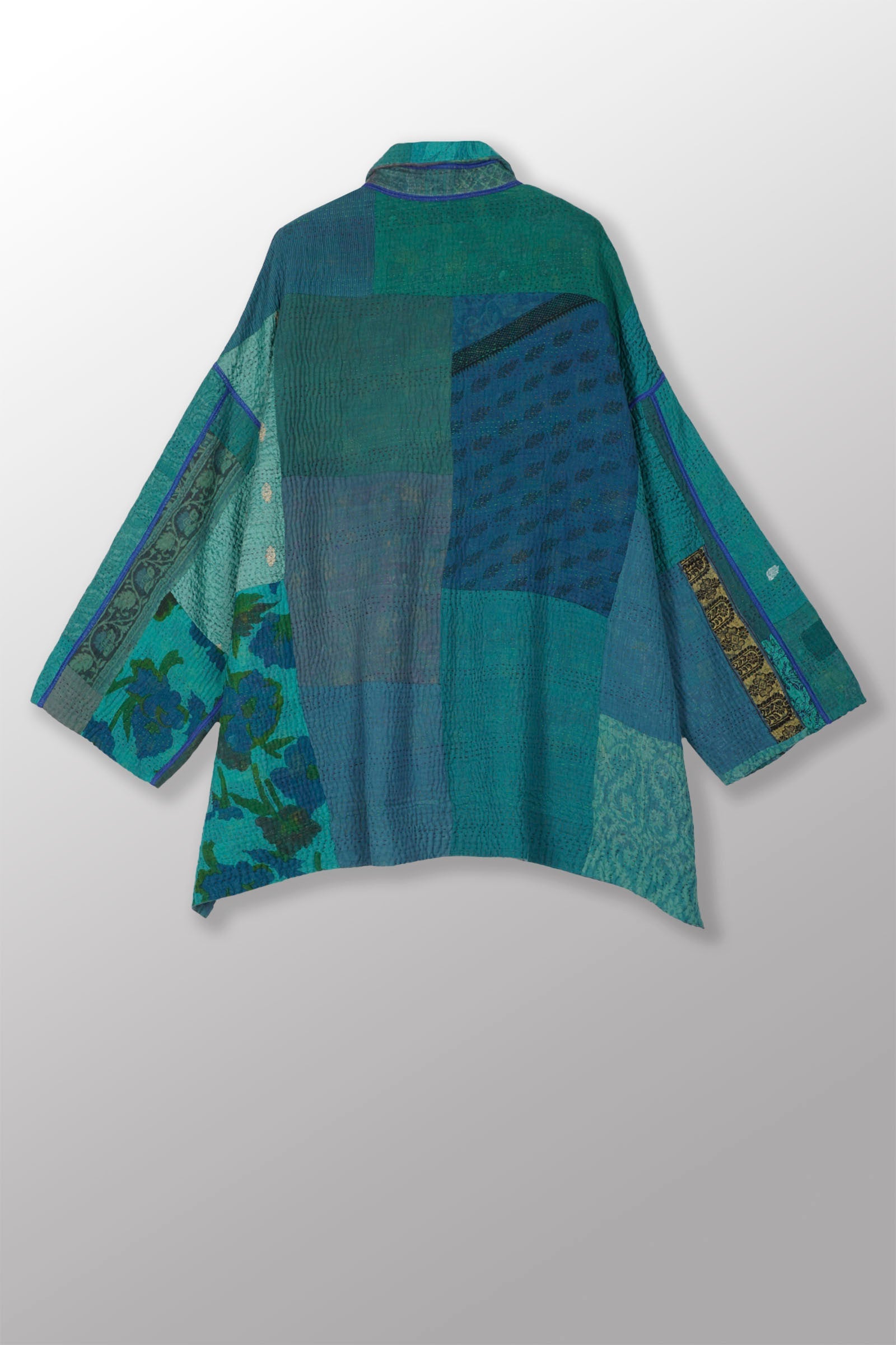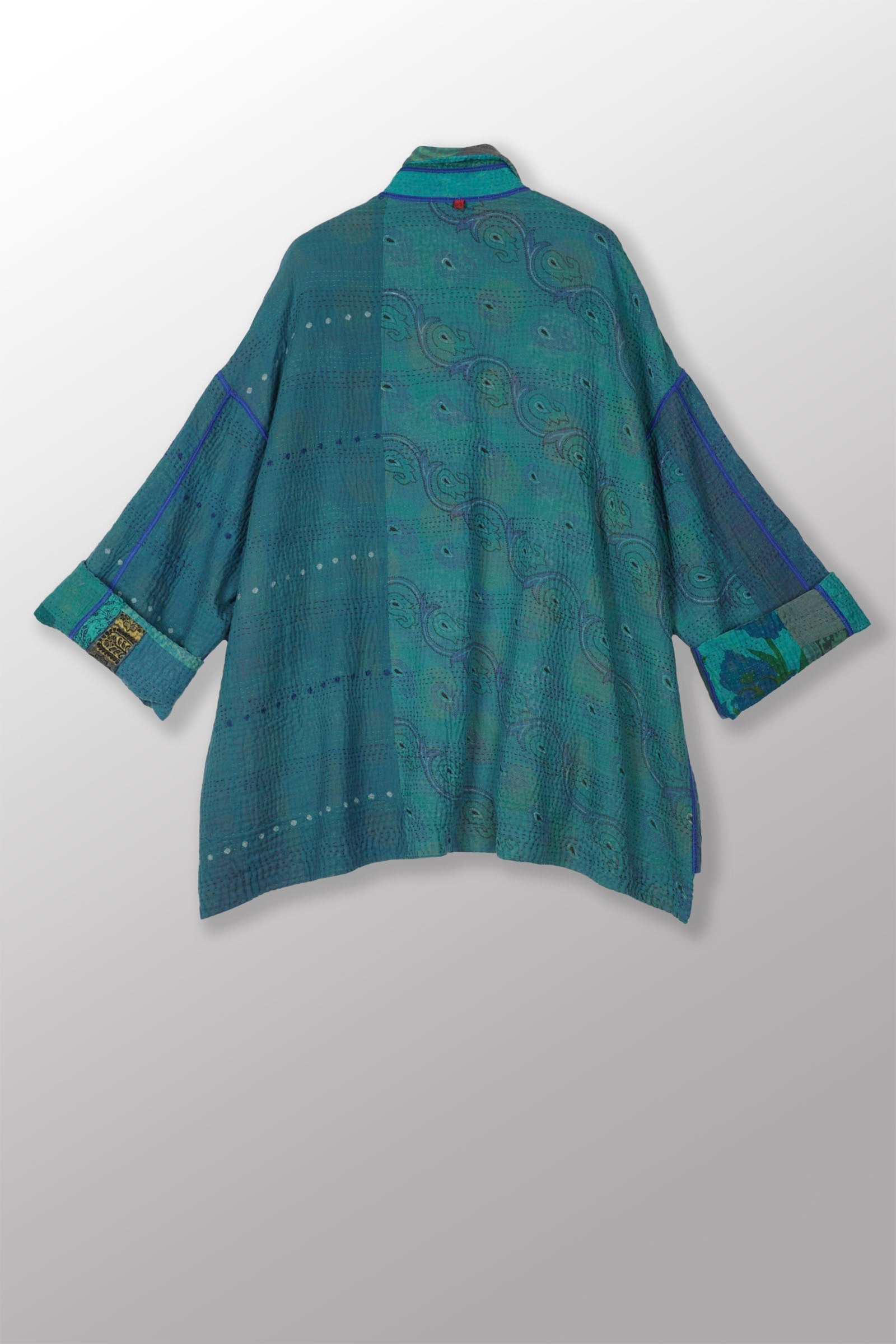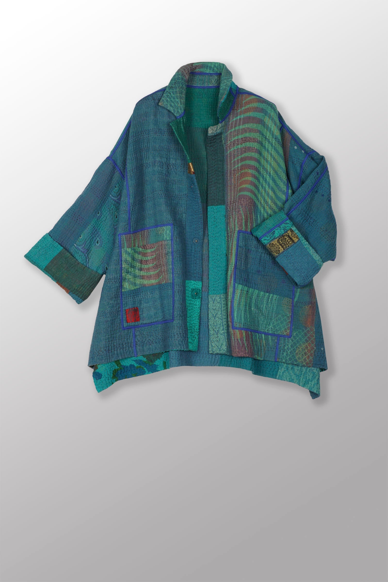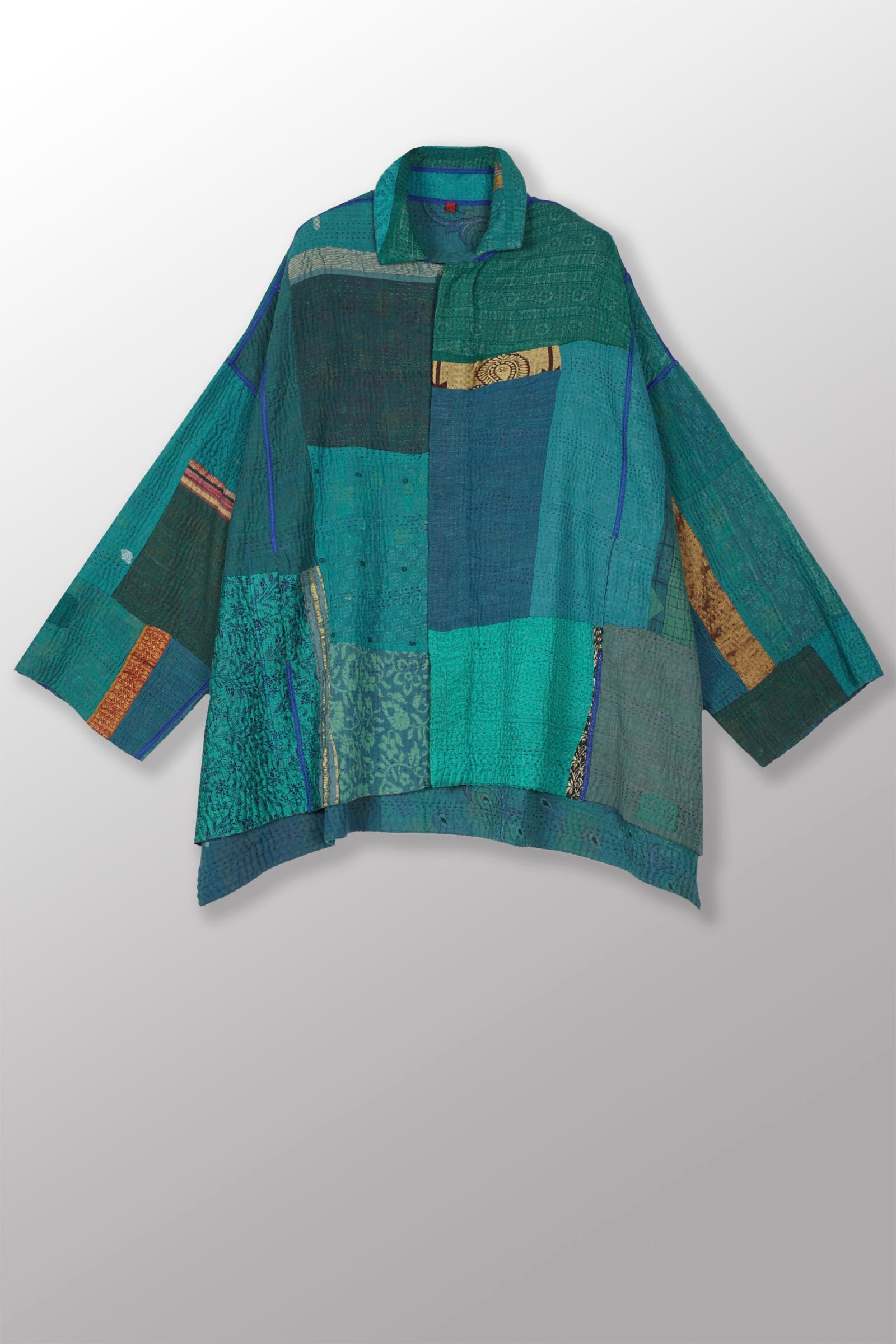COTTON SILK SW PATCH KANTHA OVERSIZED MINI COAT - ws4332-tel -