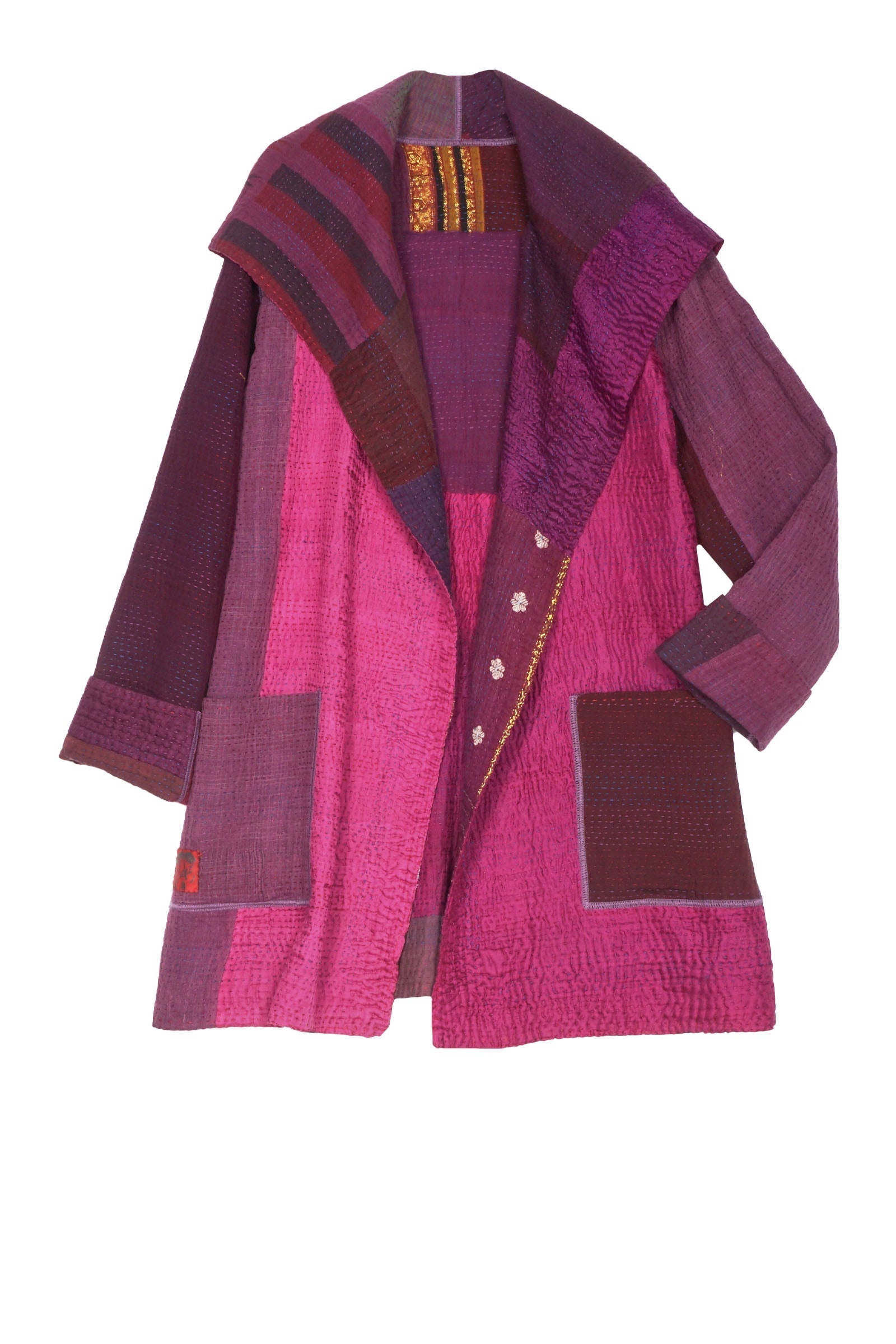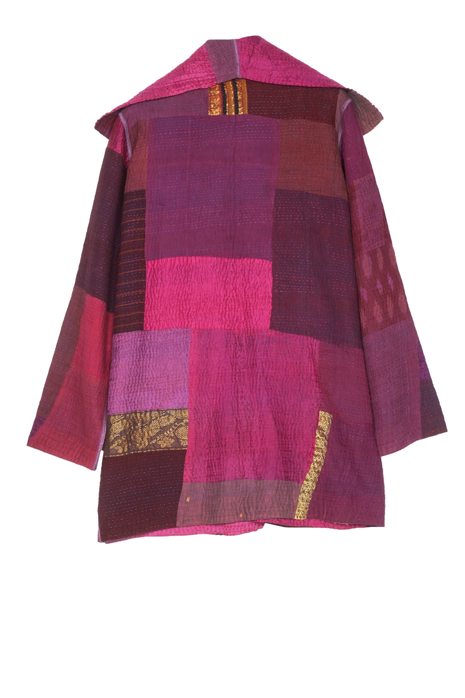 4 Layer Vintage Saris with Hand Stitches on Entire Garment - Reversible