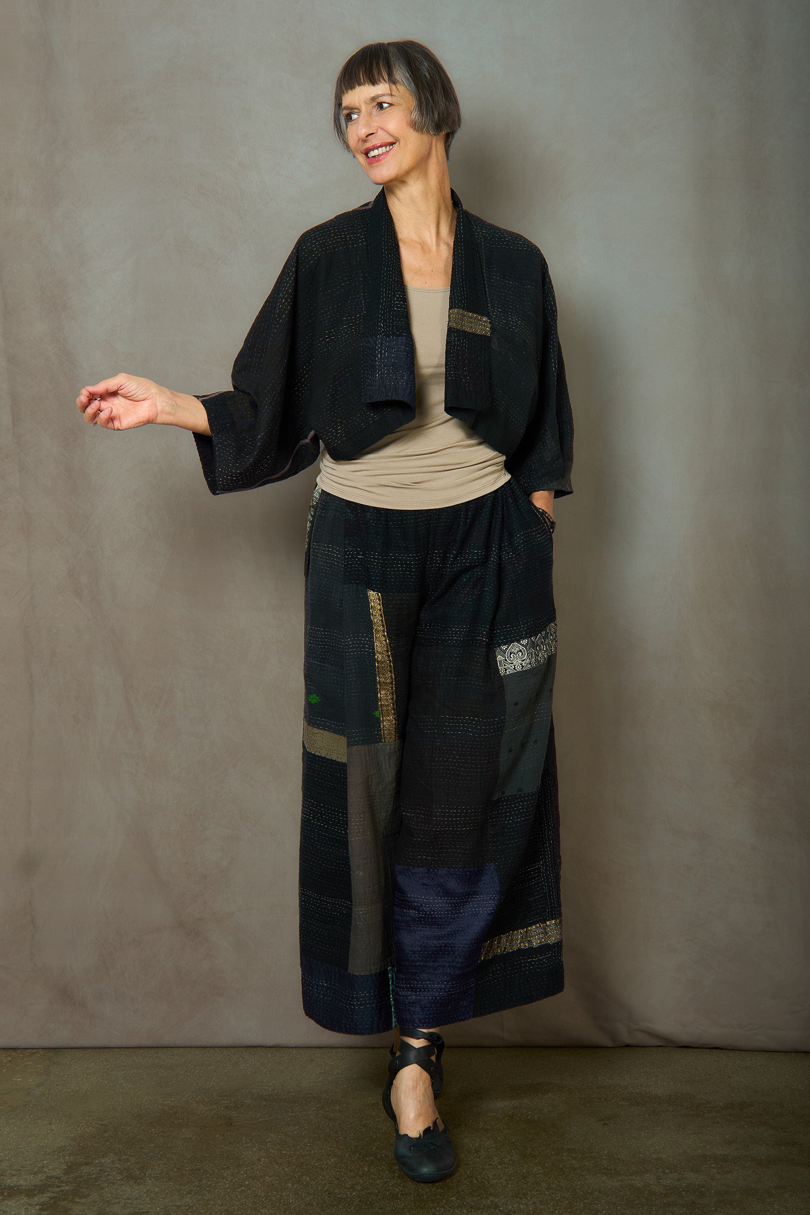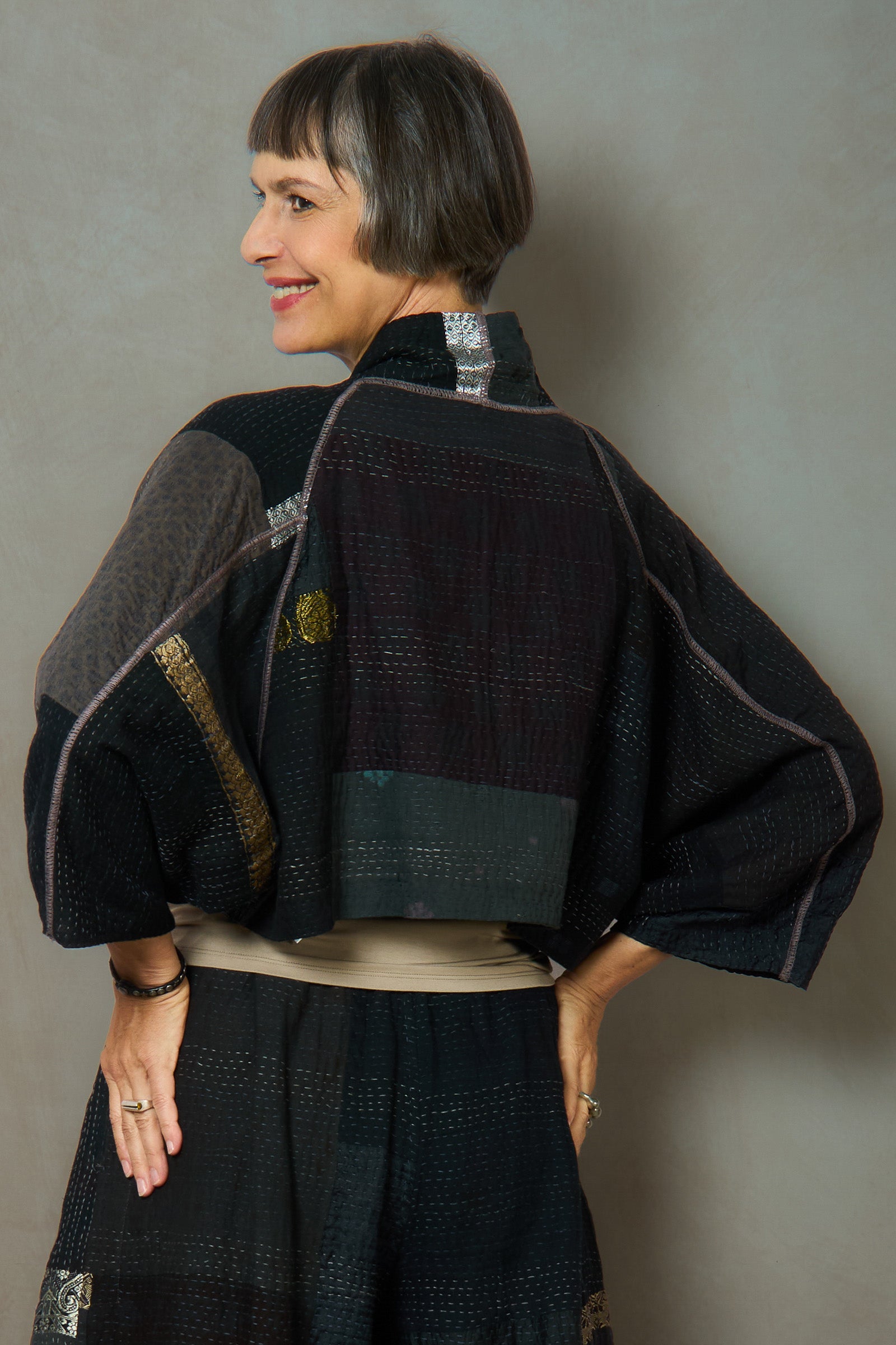 COTTON SILK SW PATCH KANTHA PUFF SLV. SHRUG - ws2062-blk -