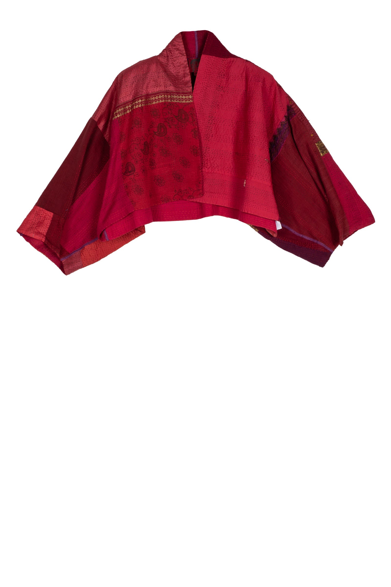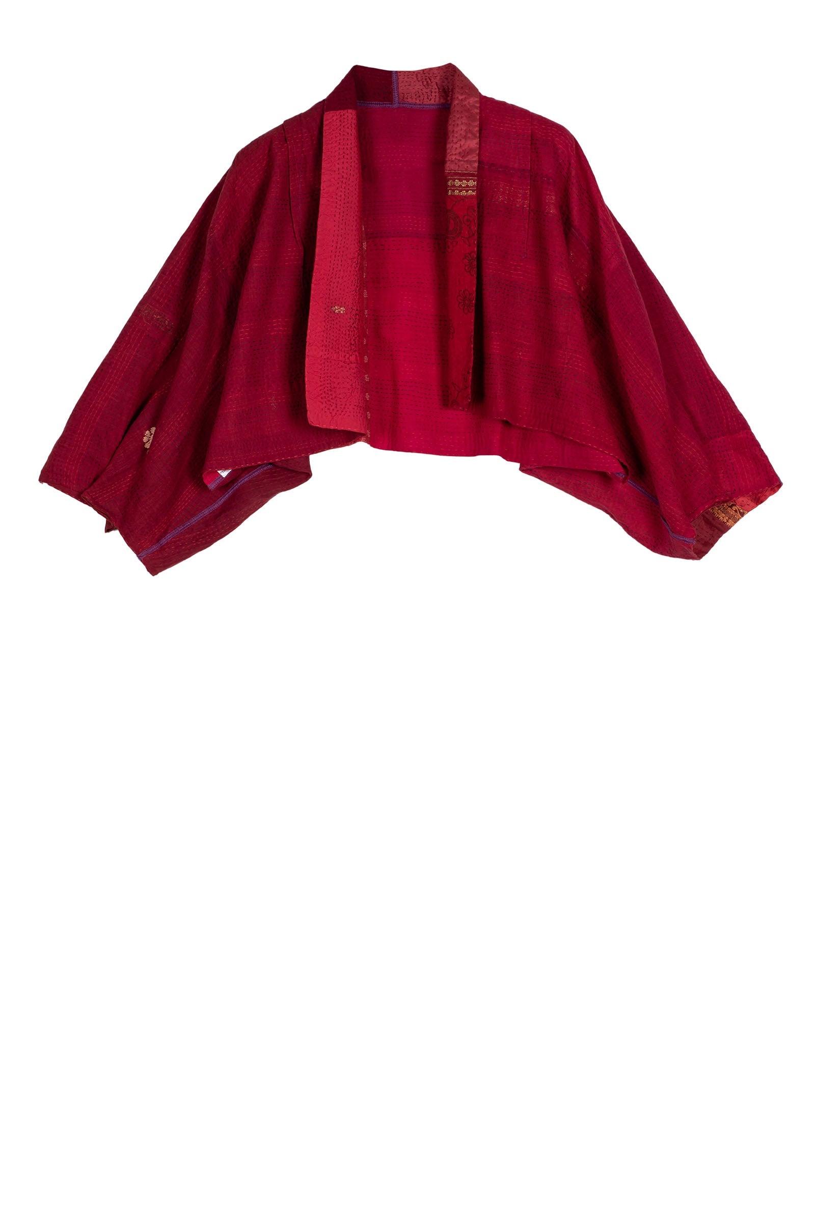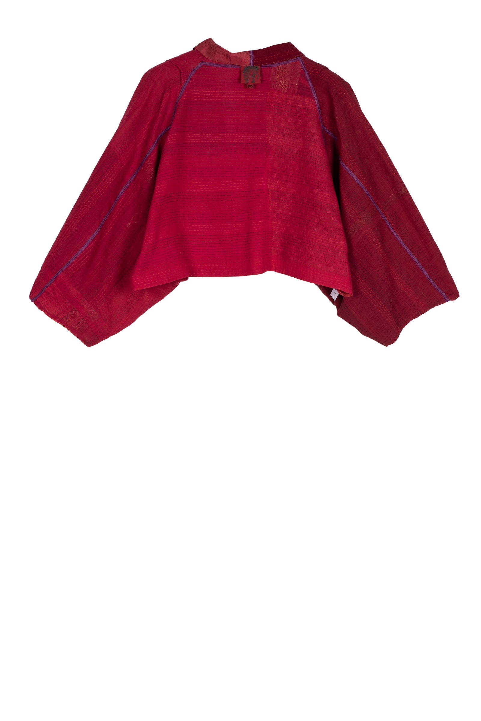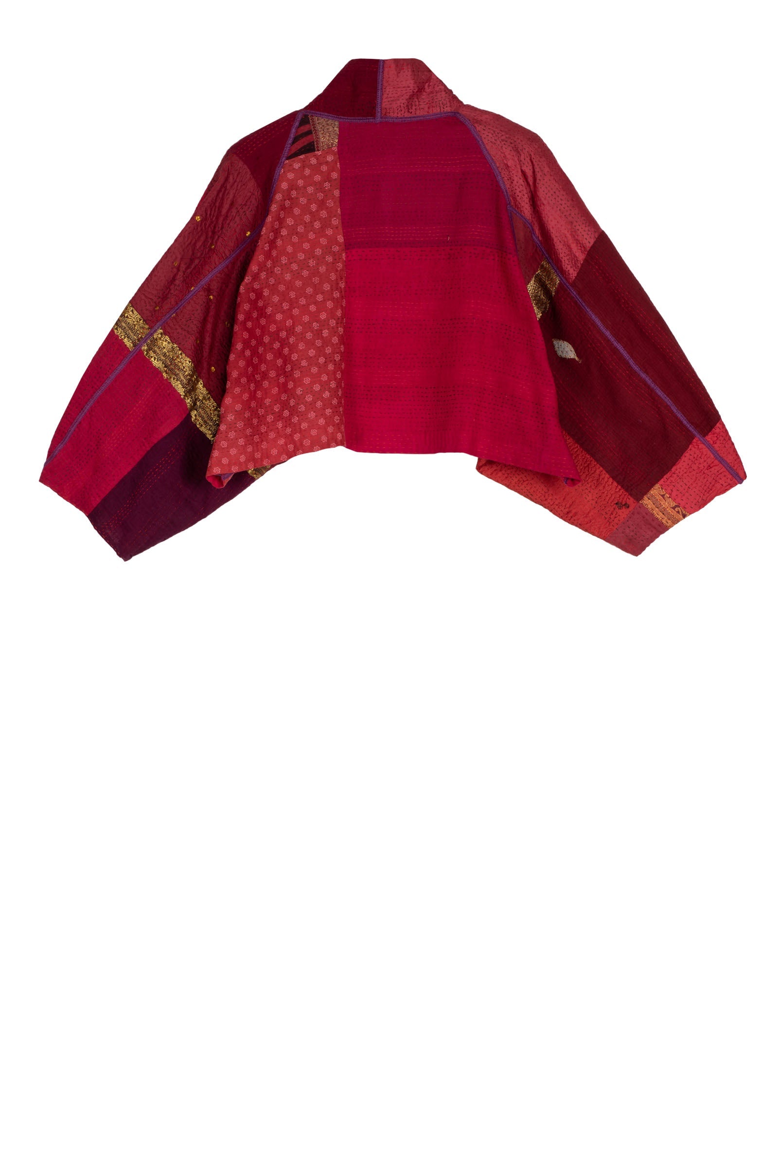 COTTON SILK SW PATCH KANTHA PUFF SLV. SHRUG - ws2062-red -