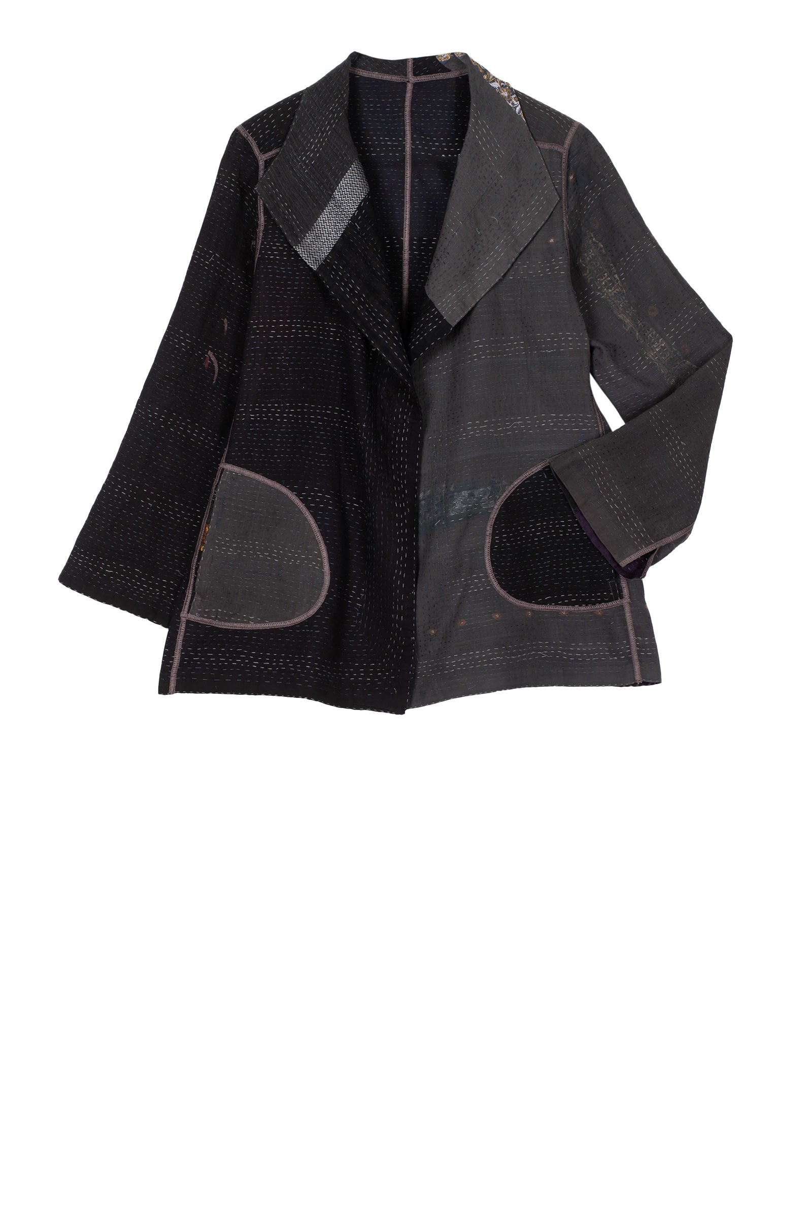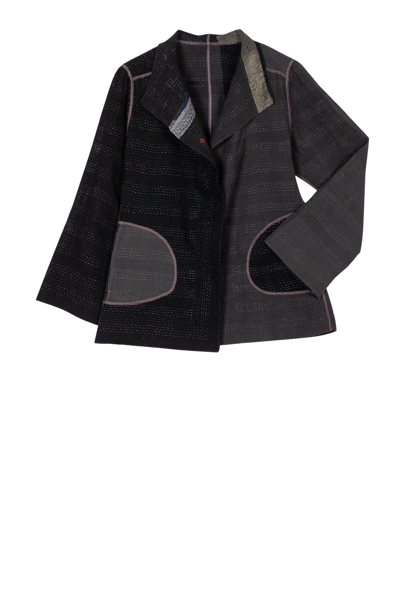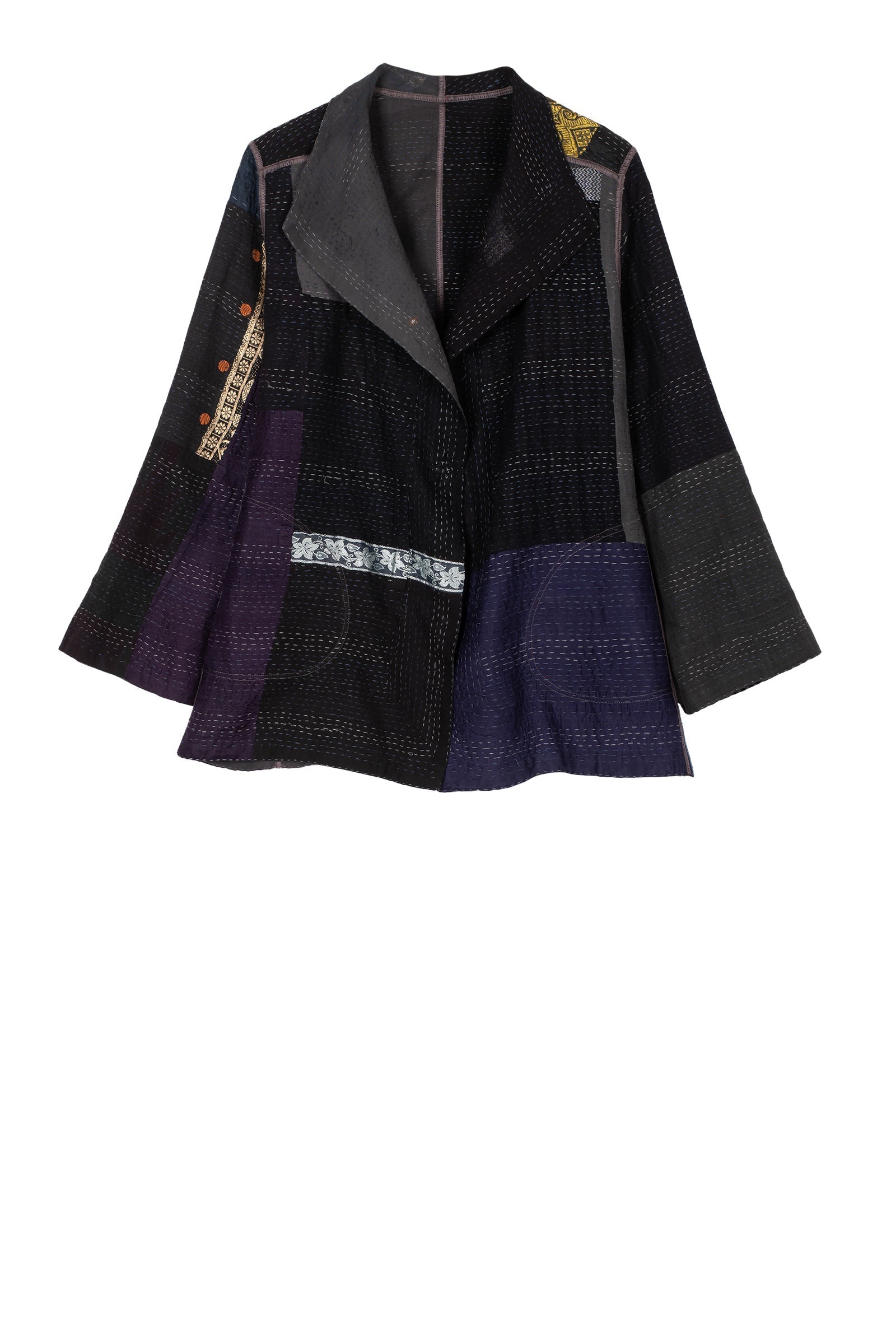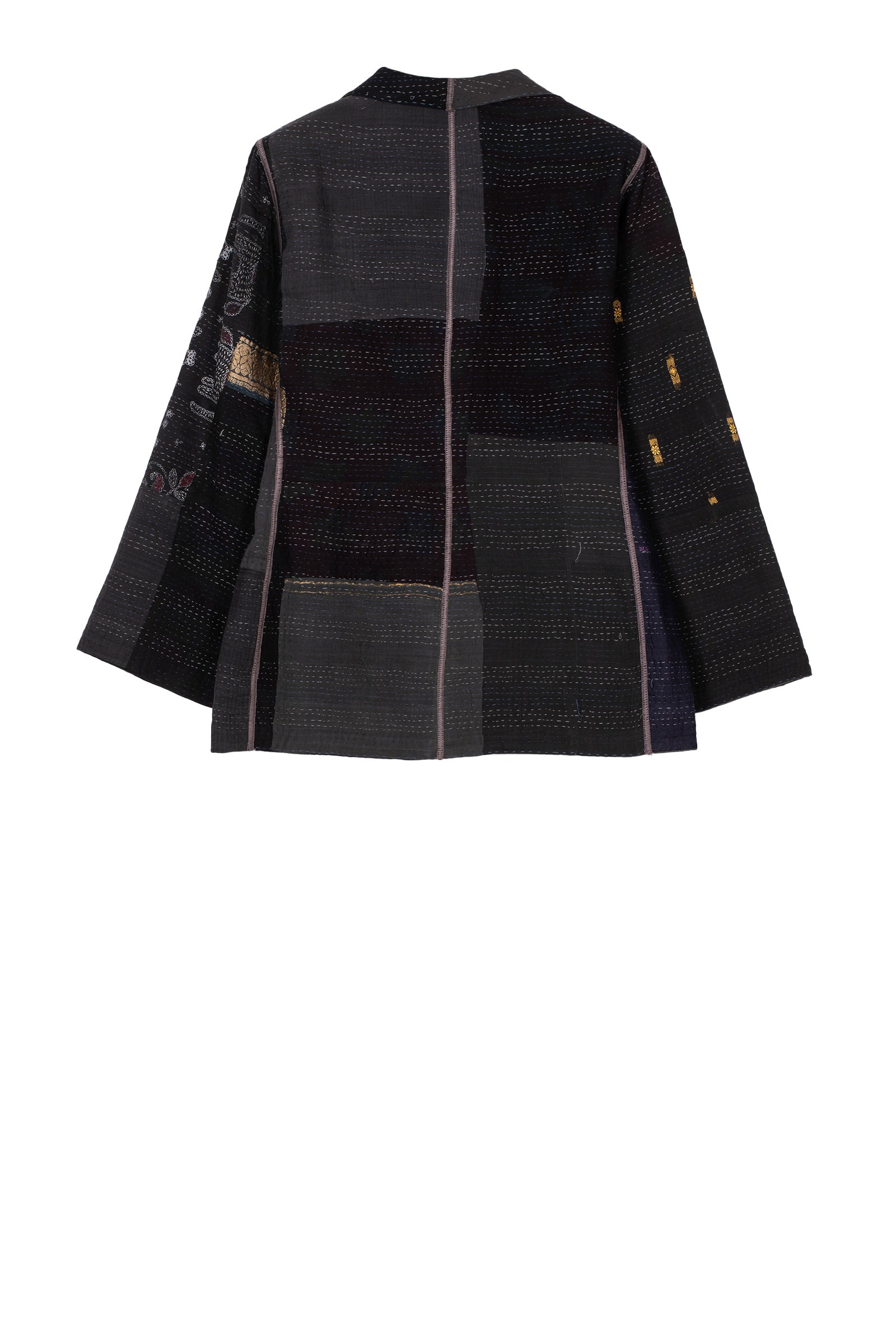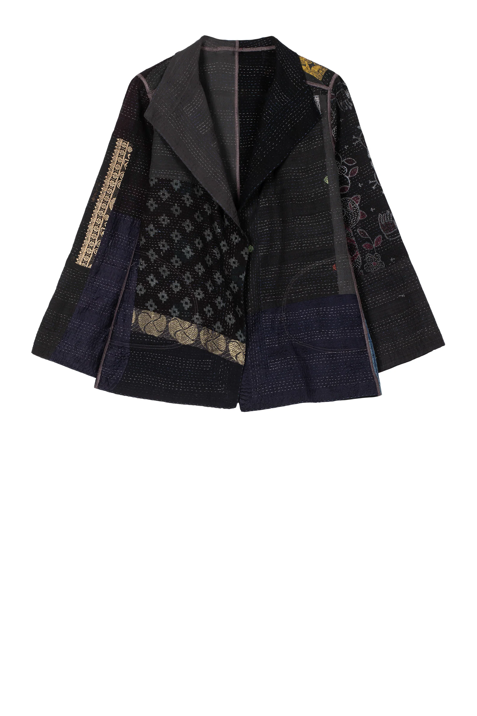 COTTON SILK SW PATCH KANTHA SHORT JKT - ws2007-blk -
