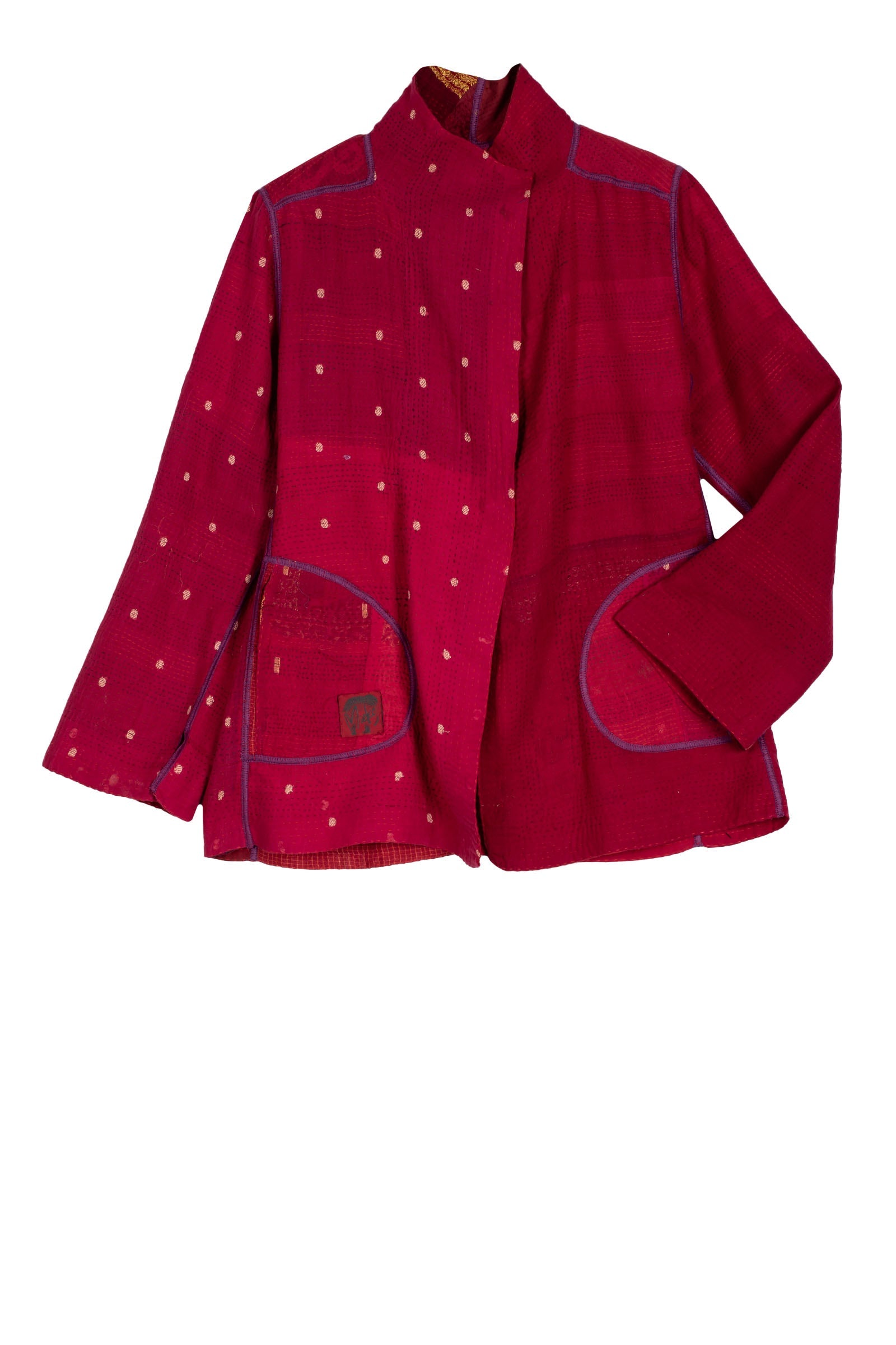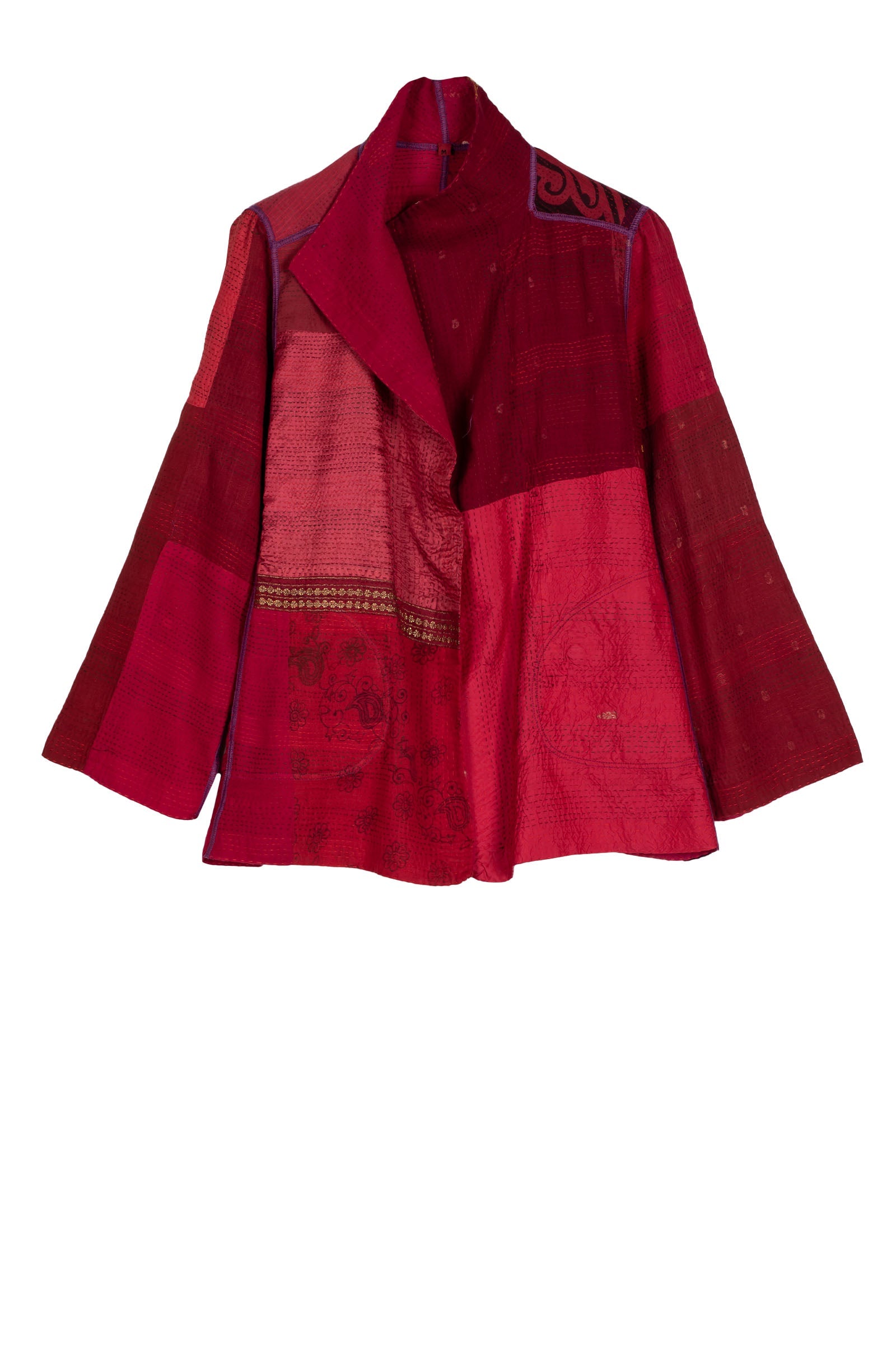 COTTON SILK SW PATCH KANTHA SHORT JKT - ws2007-red -