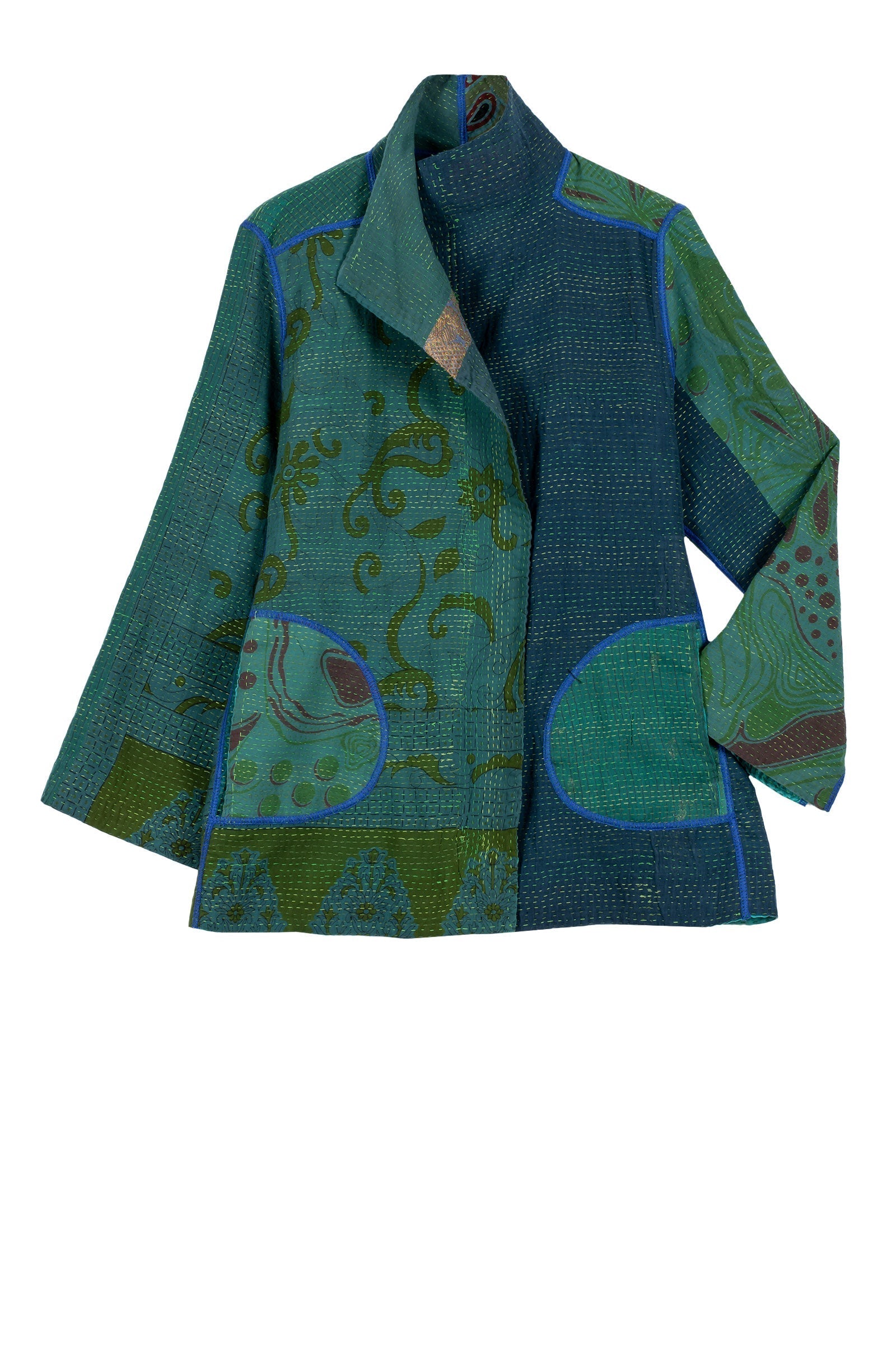 COTTON SILK SW PATCH KANTHA SHORT JKT - ws2007-tel -