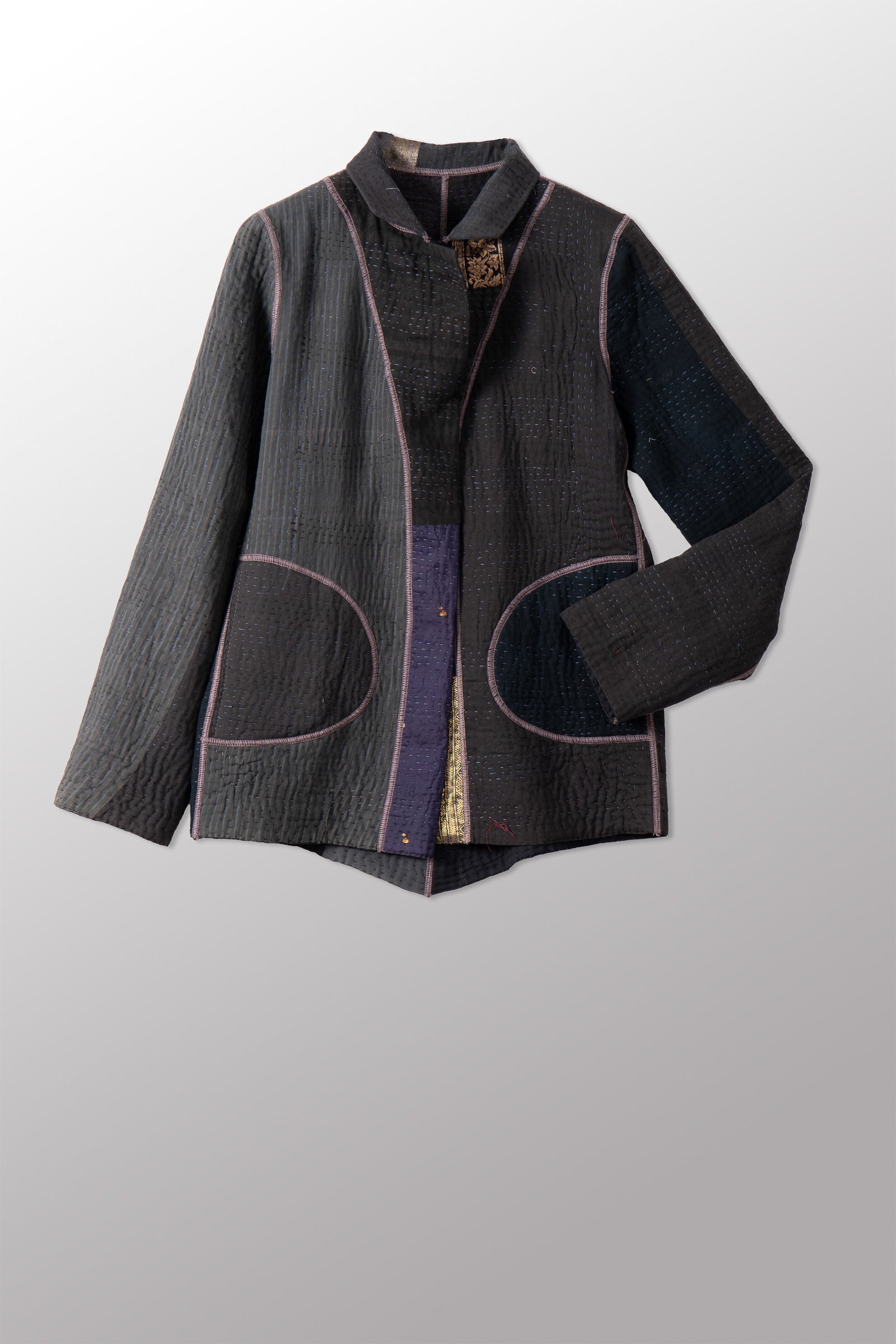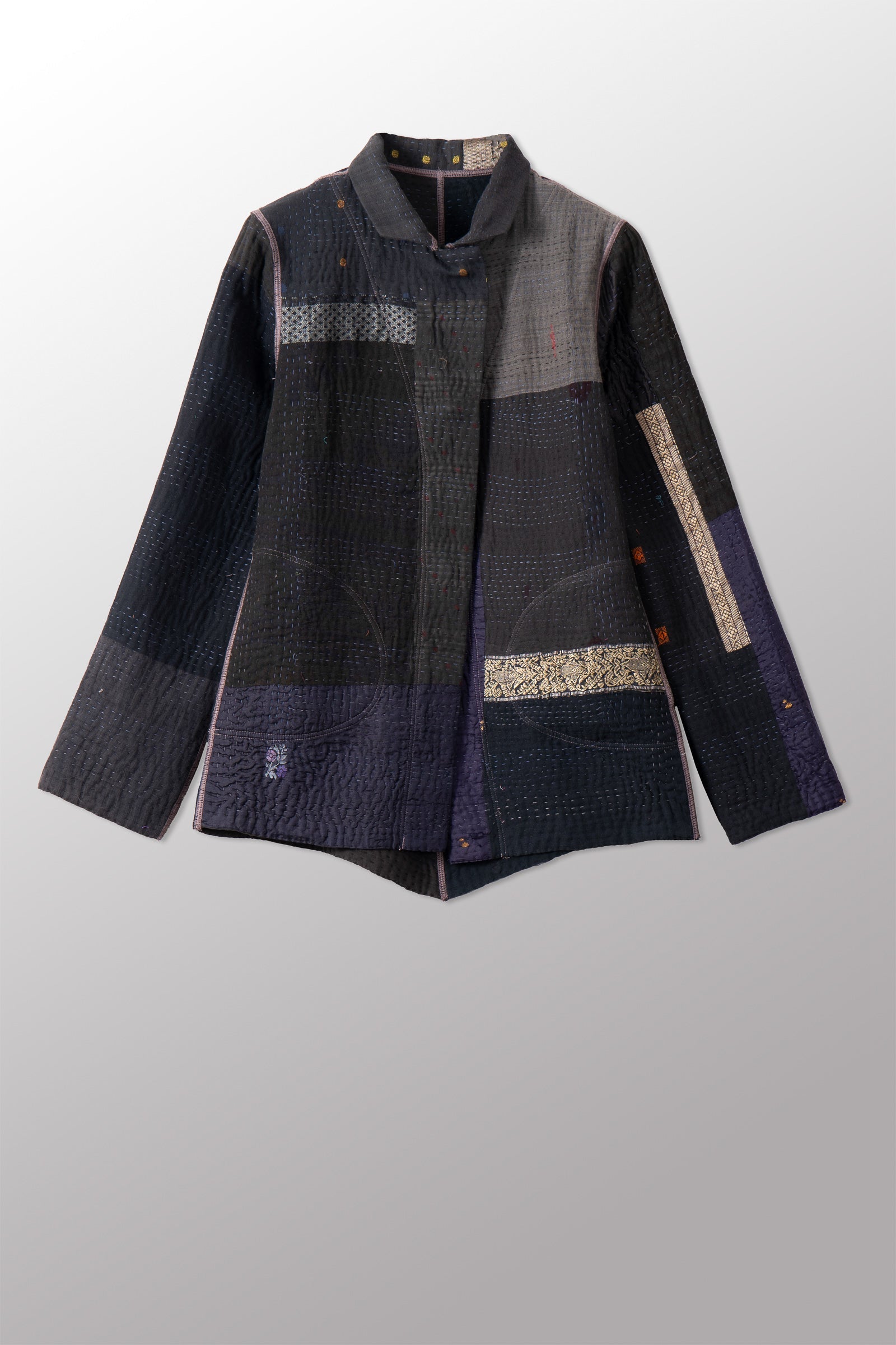 COTTON SILK SW PATCH KANTHA SIMPLE JKT - ws4022-blk -