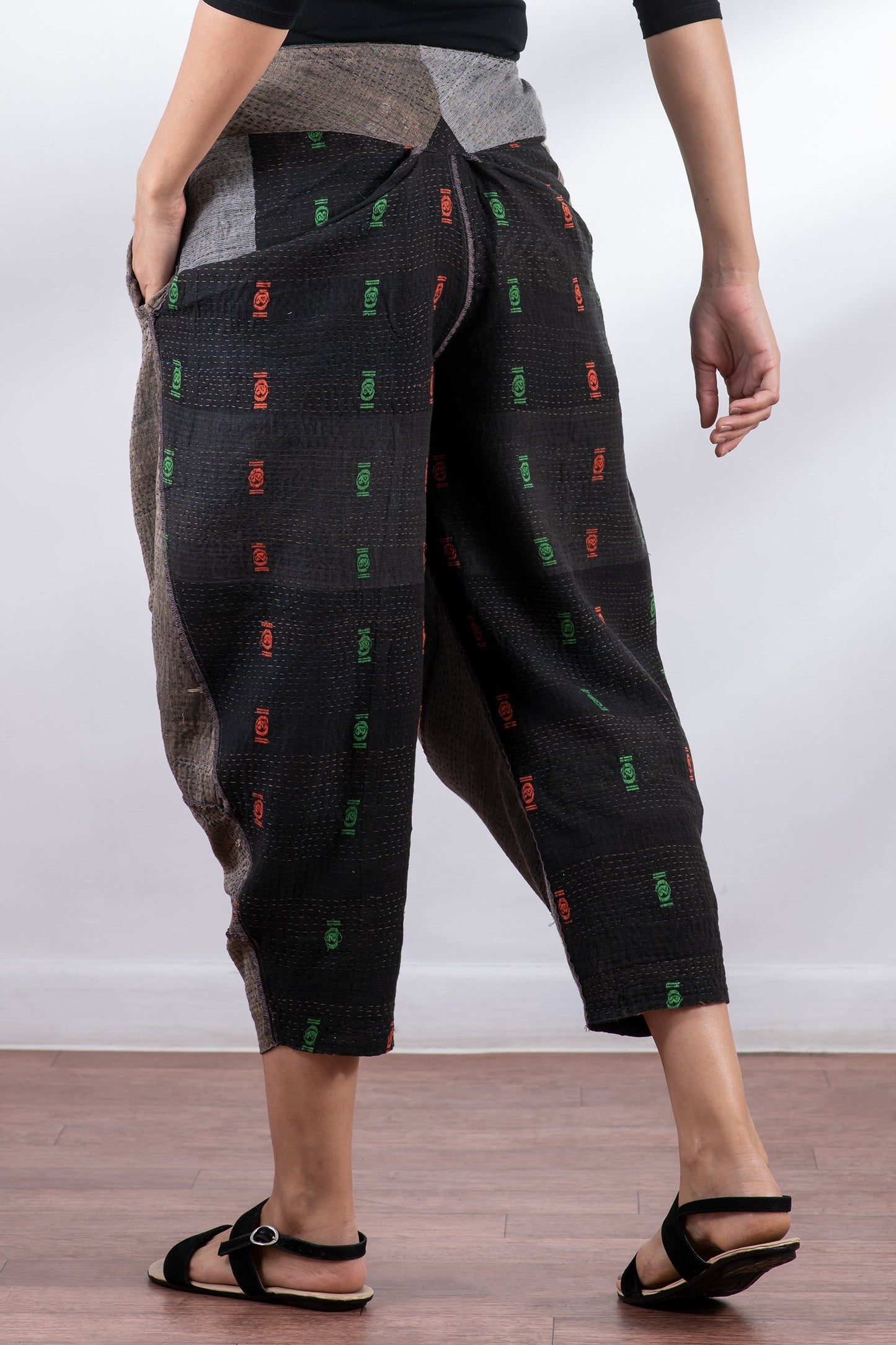 COTTON SILK SW PATCH KANTHA YAMAHA PANTS - ws2632-gry -