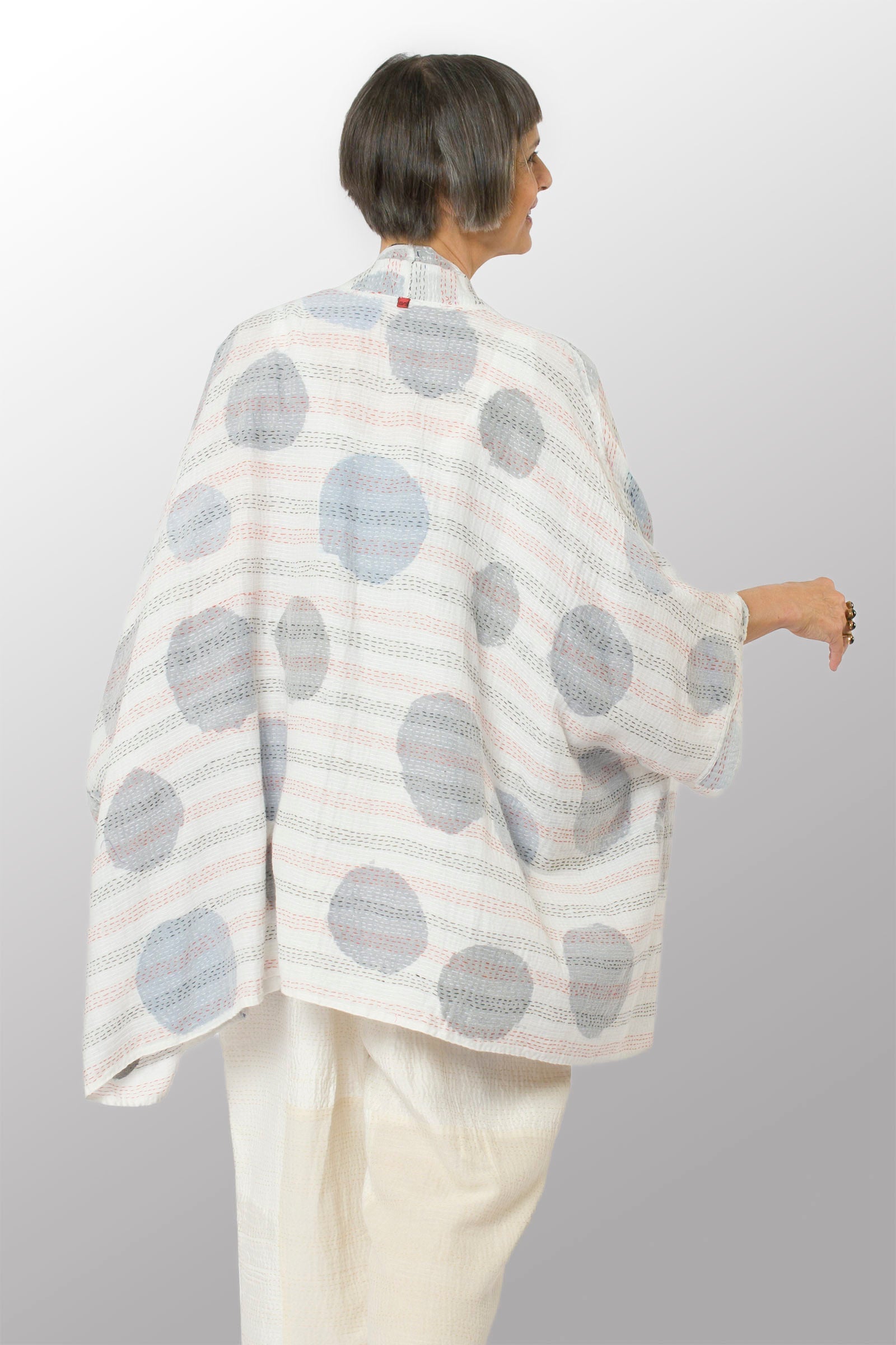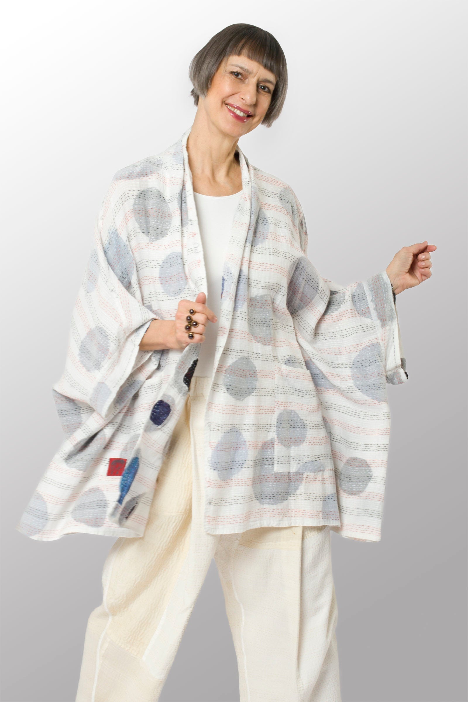 CUT OUT KANTHA DOUBLE COLLAR PONCHO - ck2323-wht -