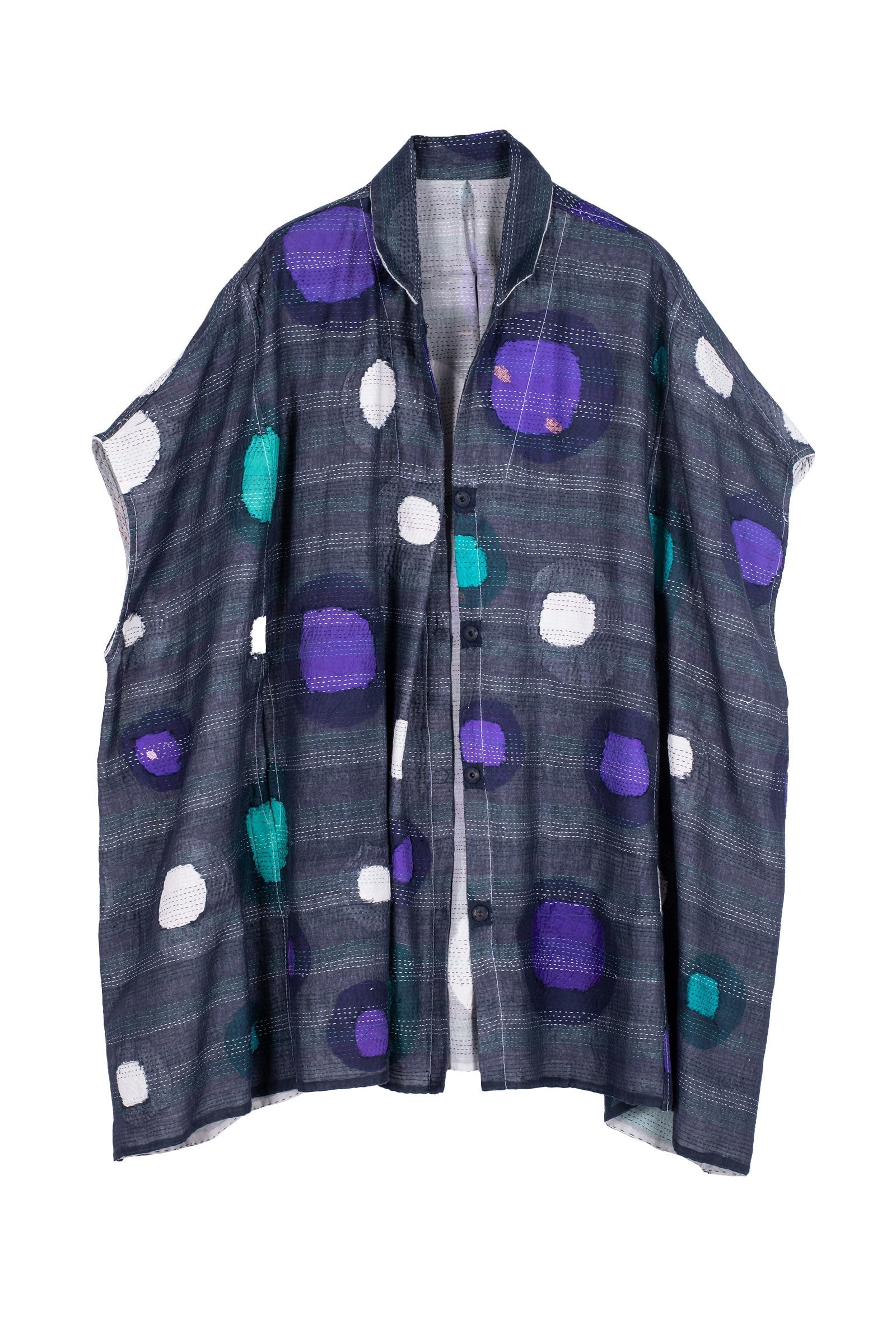 CUT OUT KANTHA SHIRT PONCHO - ck2545-blu -