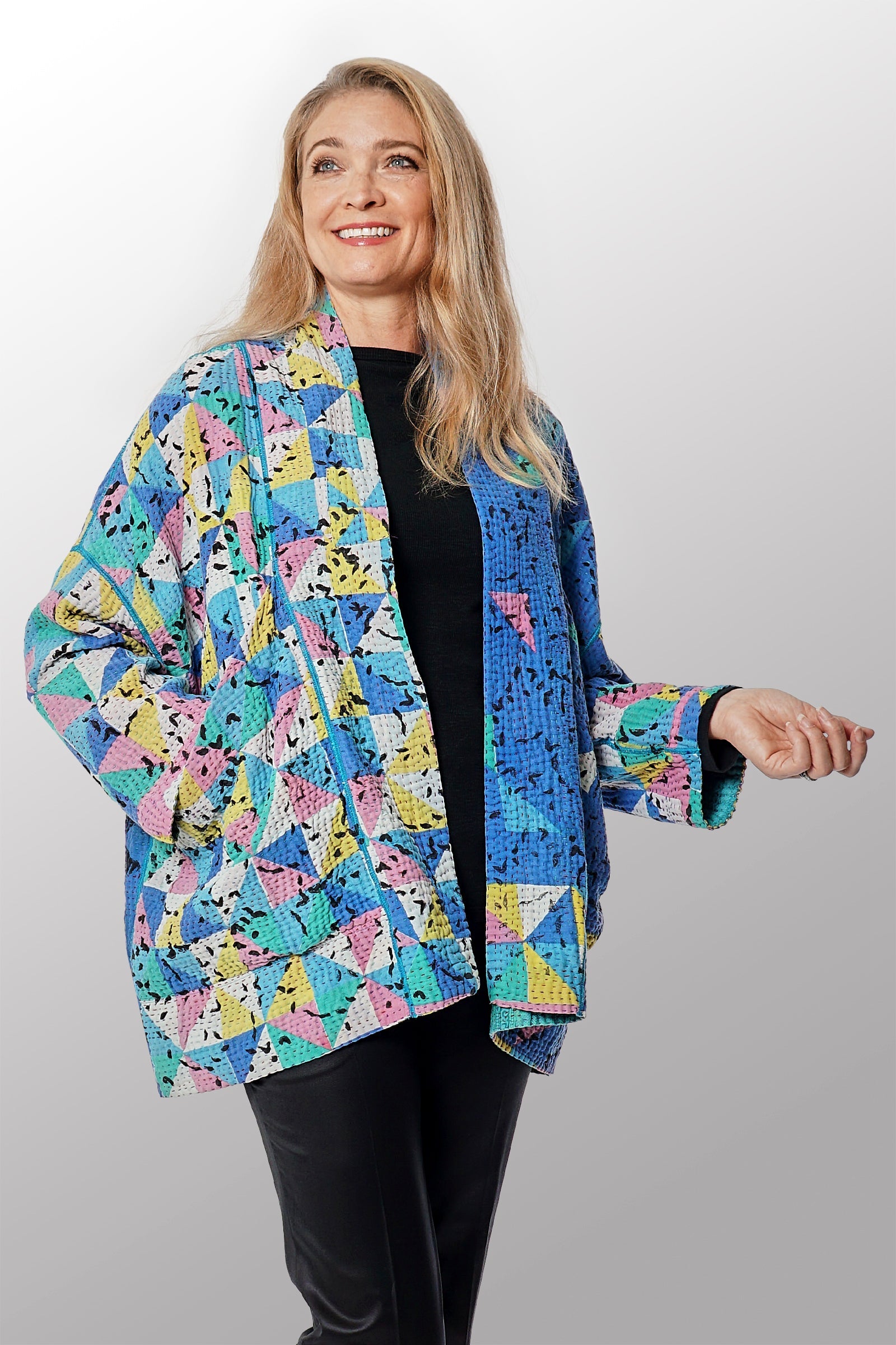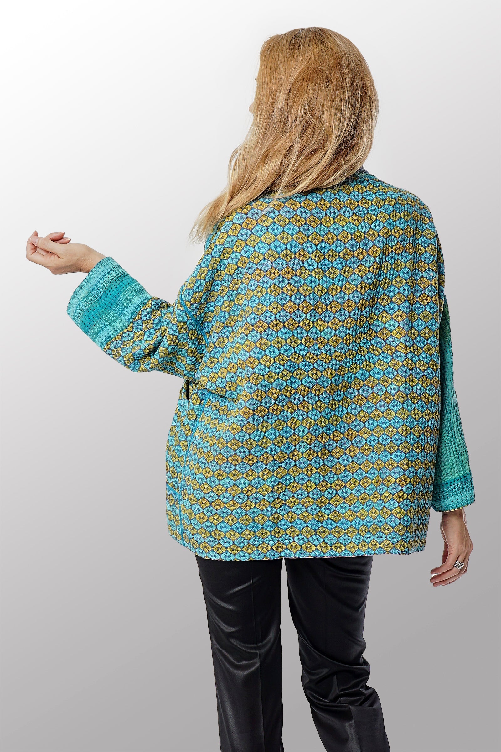 4 Layer Vintage Saris with Hand Stitches on Entire Garment - Reversible