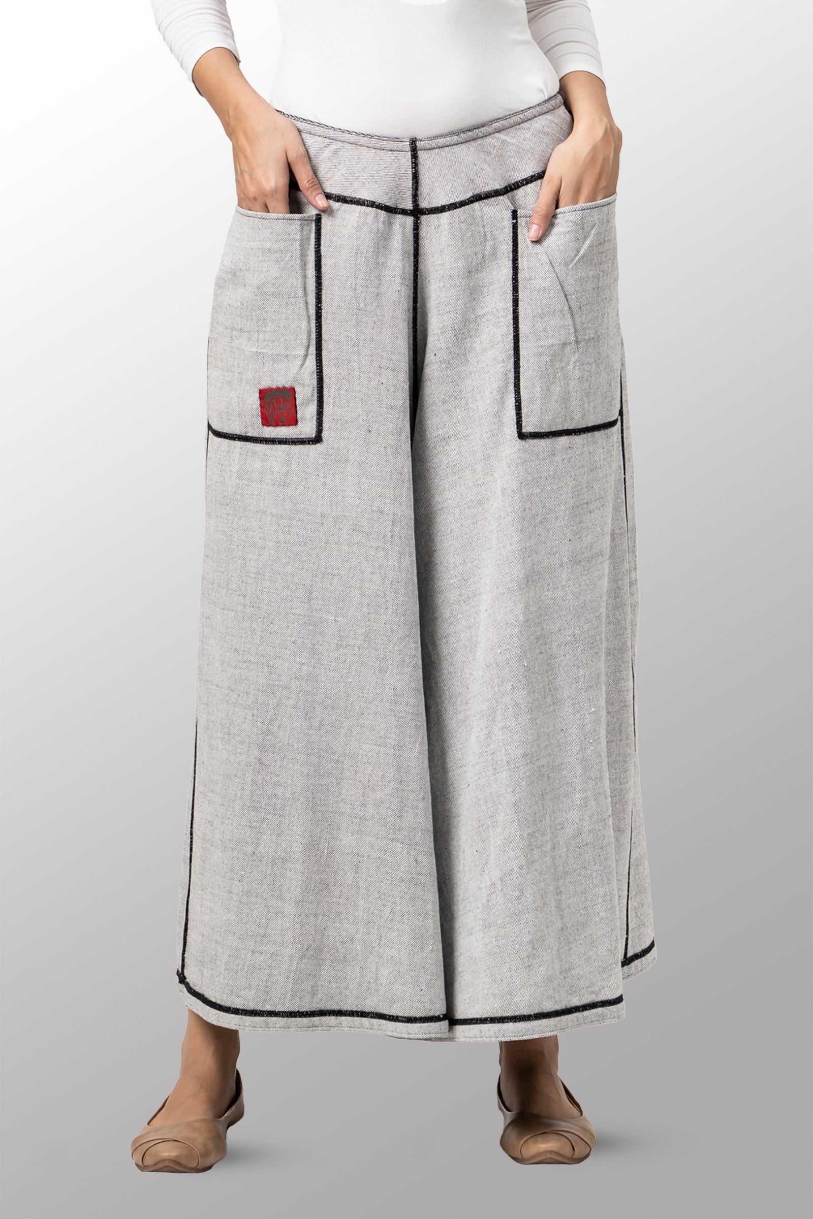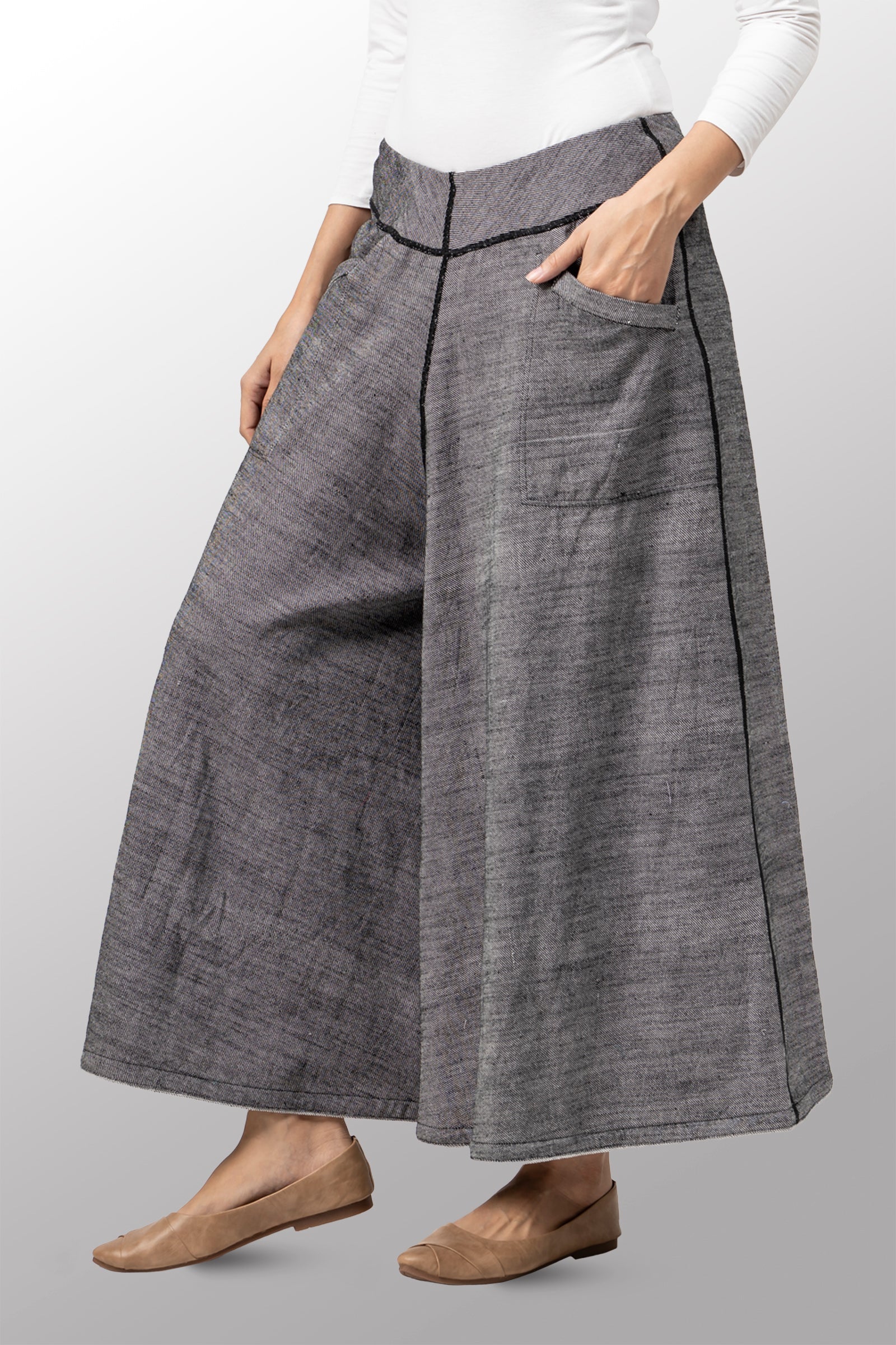 DENIM WIDE LEG PANTS - dn1623-gry -