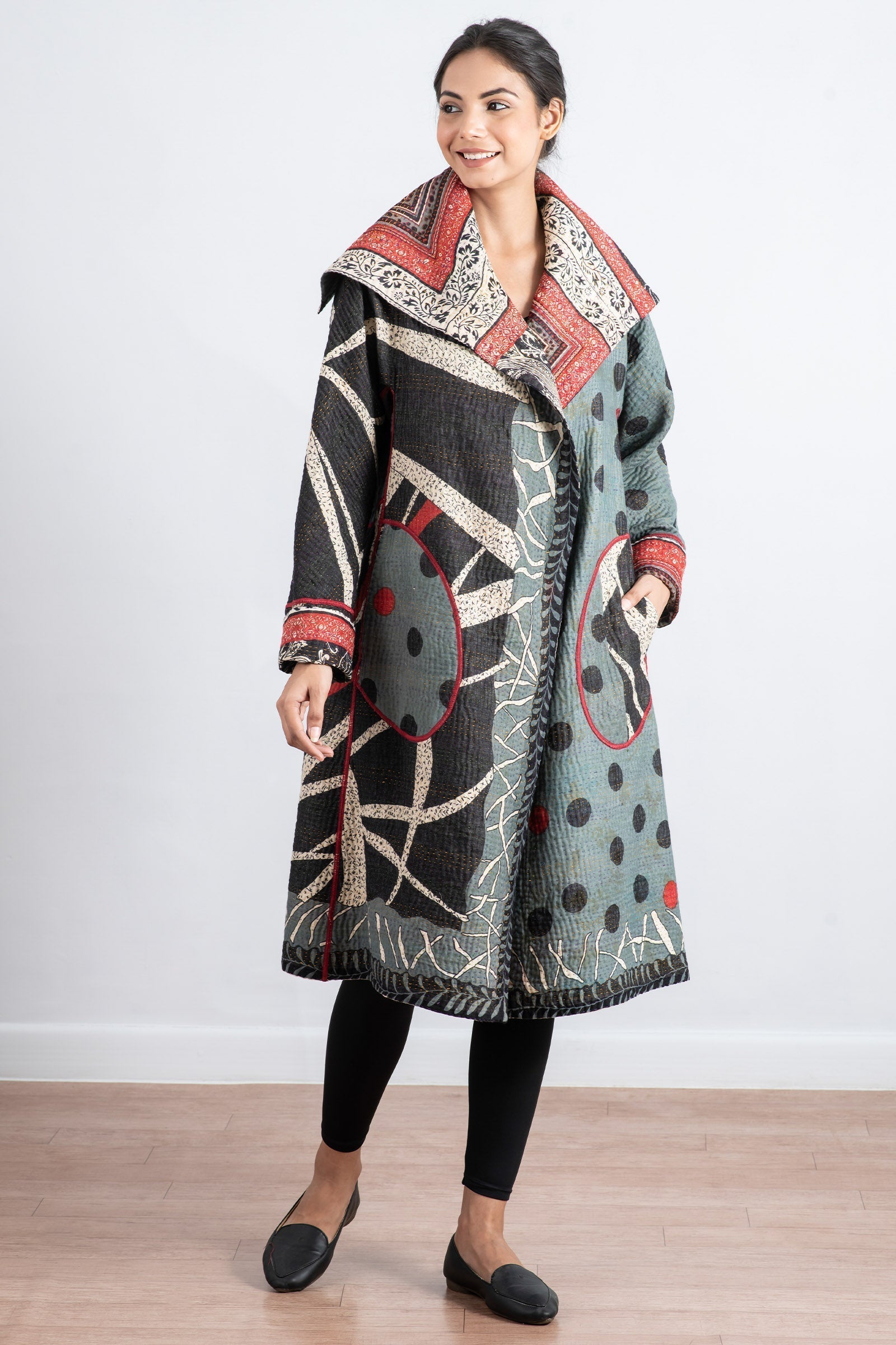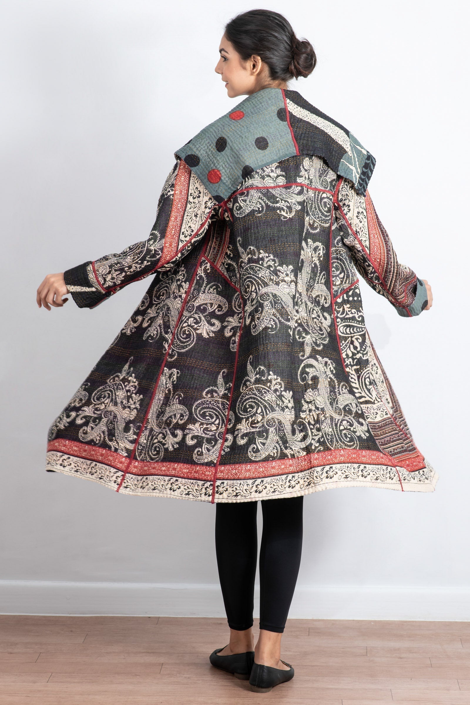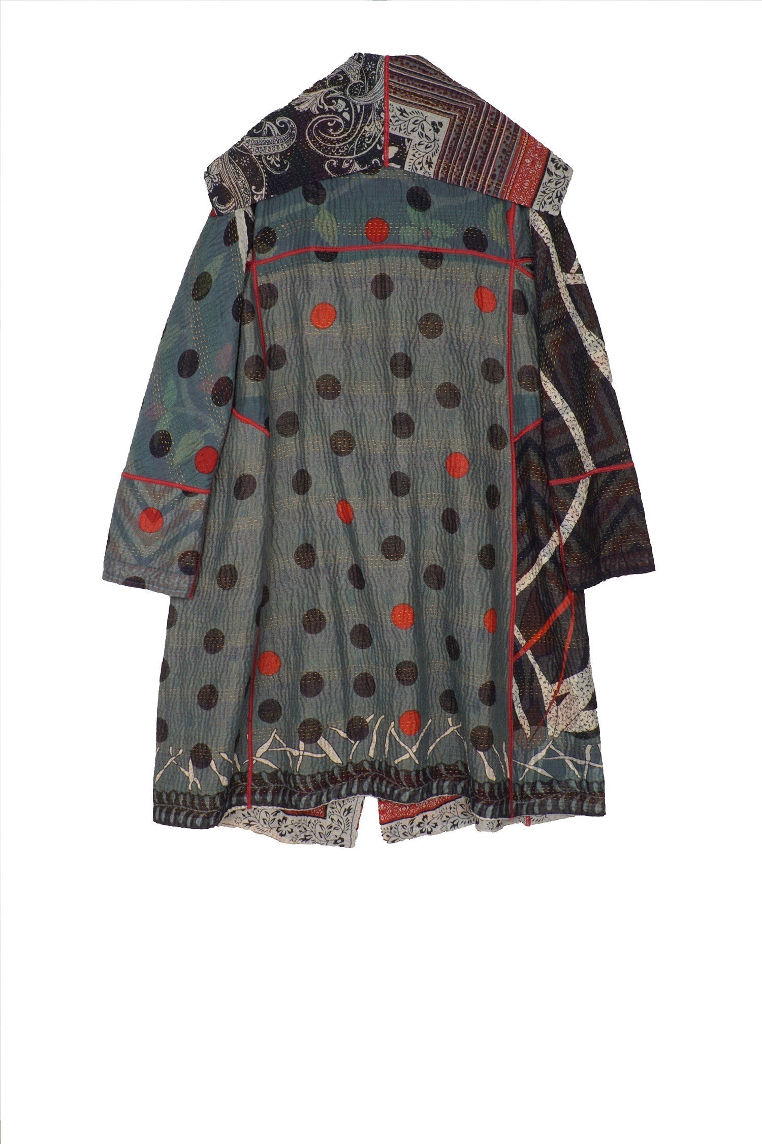 DOT & PAISLEY KANTHA A-LINE COAT - dp4309-nvy -