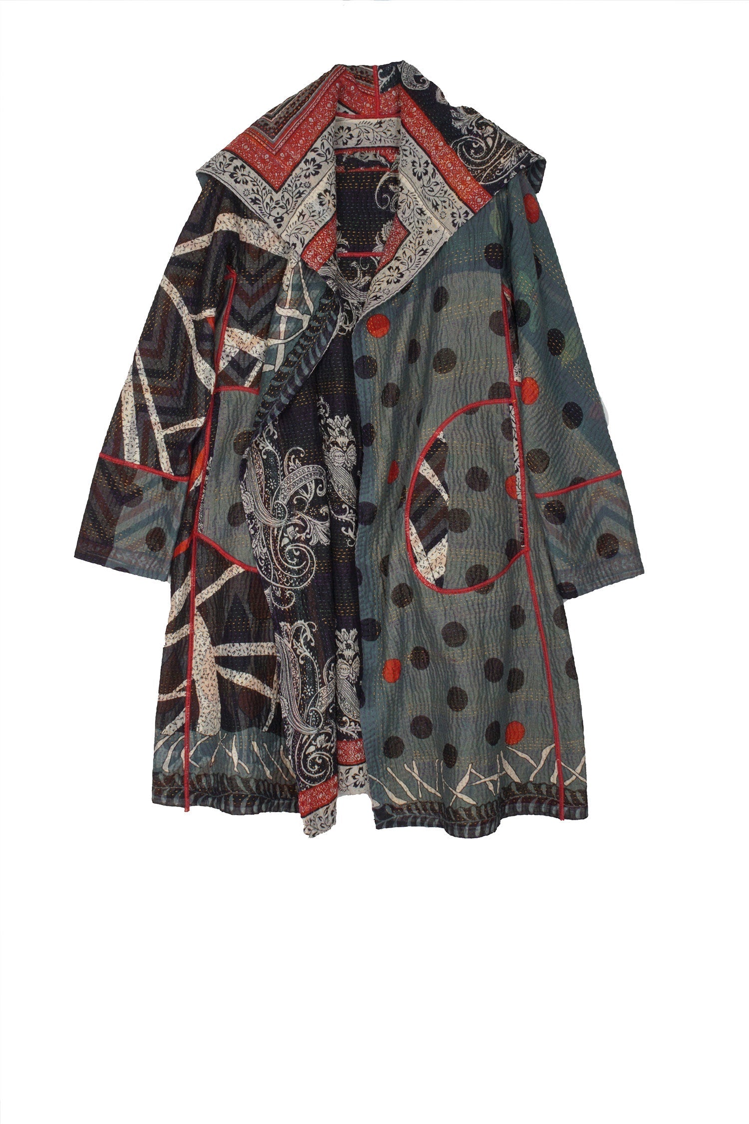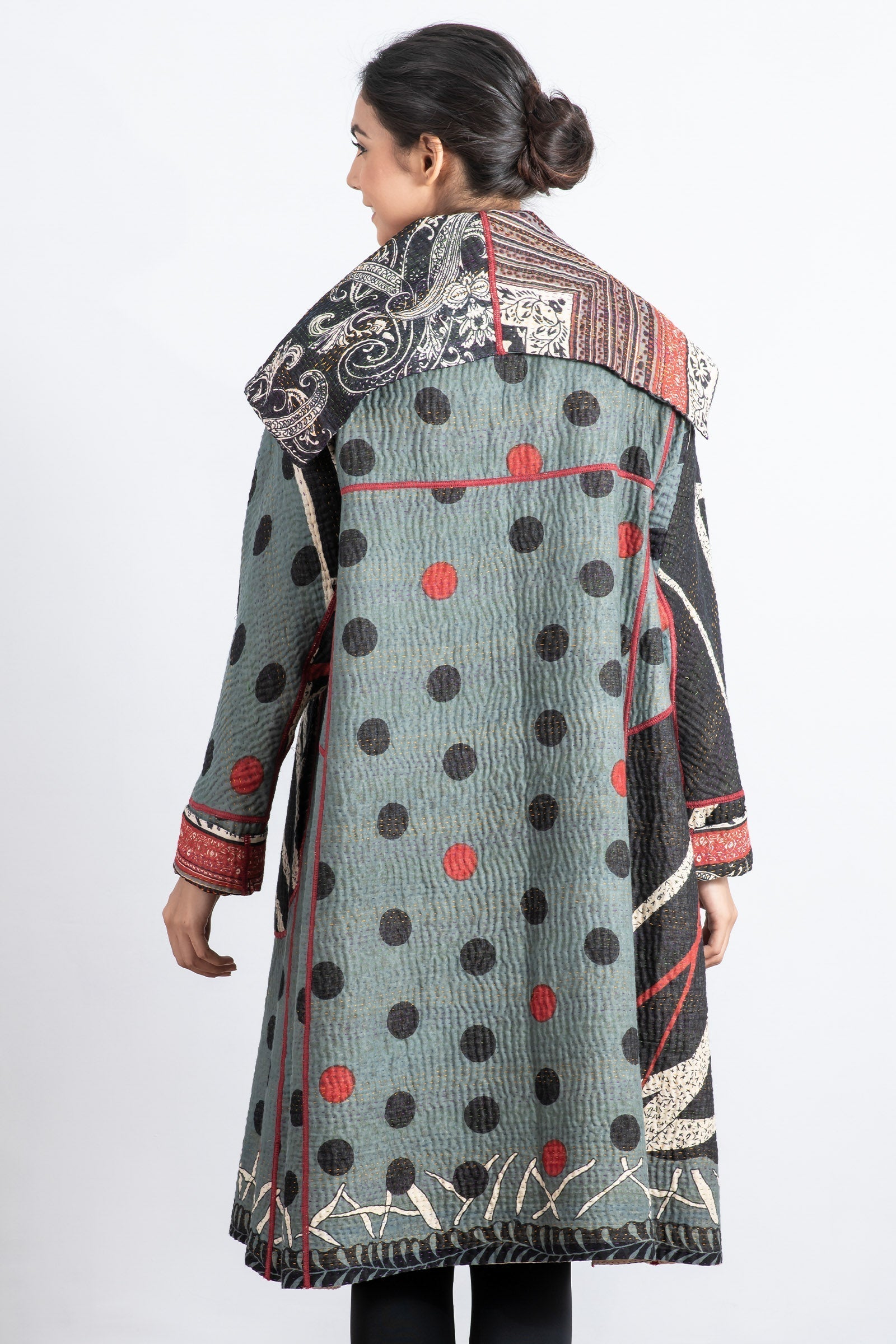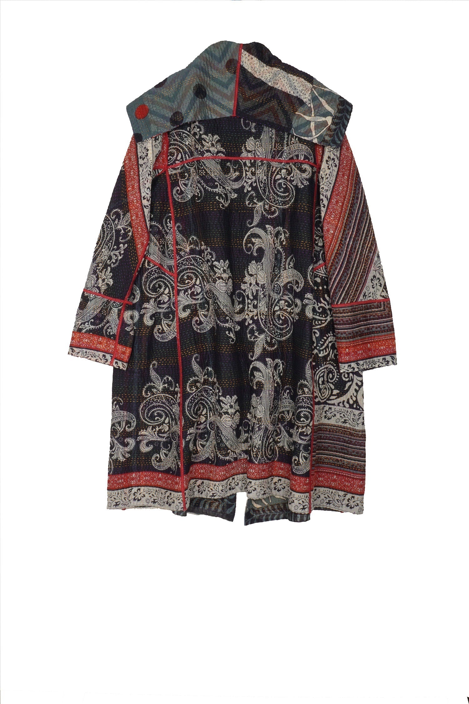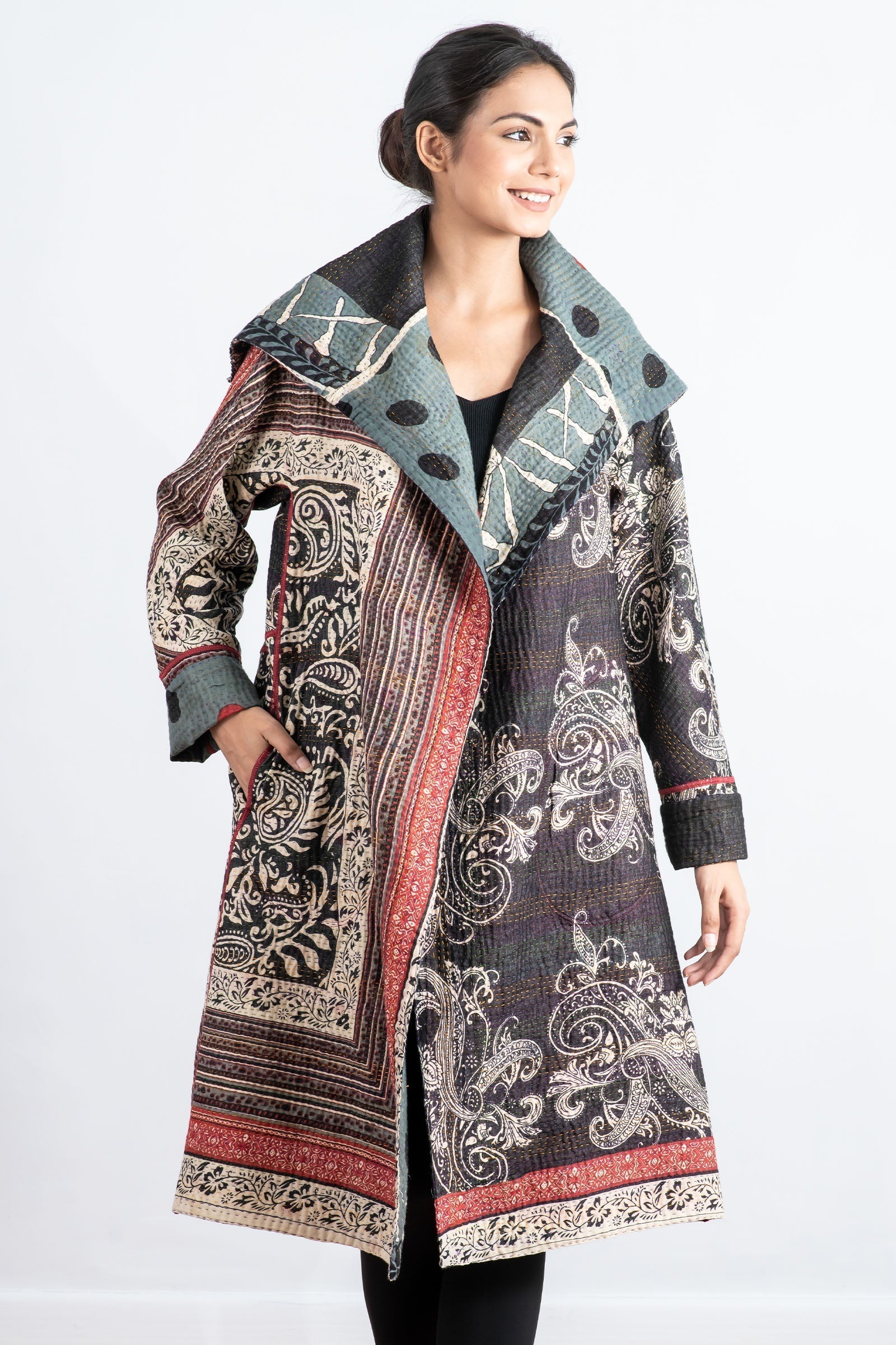 DOT & PAISLEY KANTHA A-LINE COAT - dp4309-nvy -