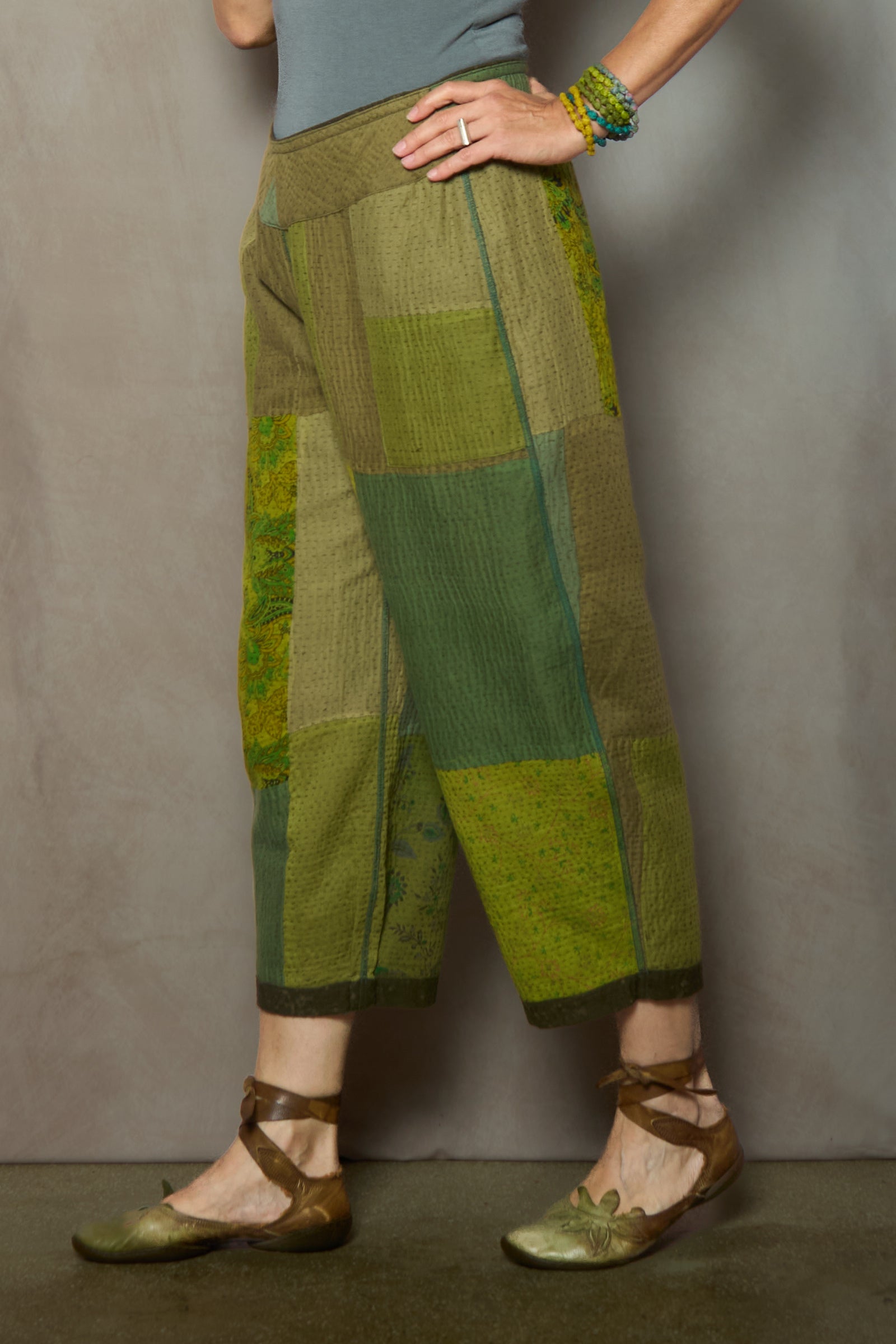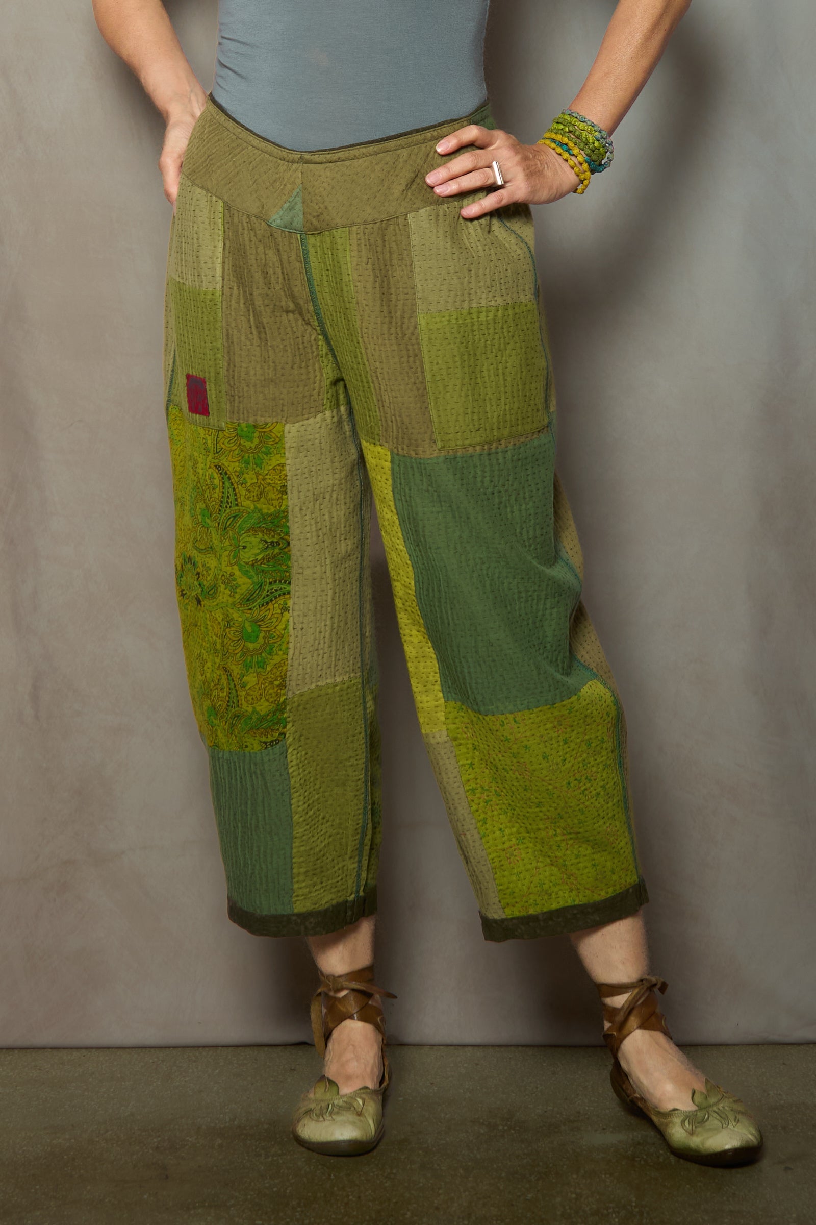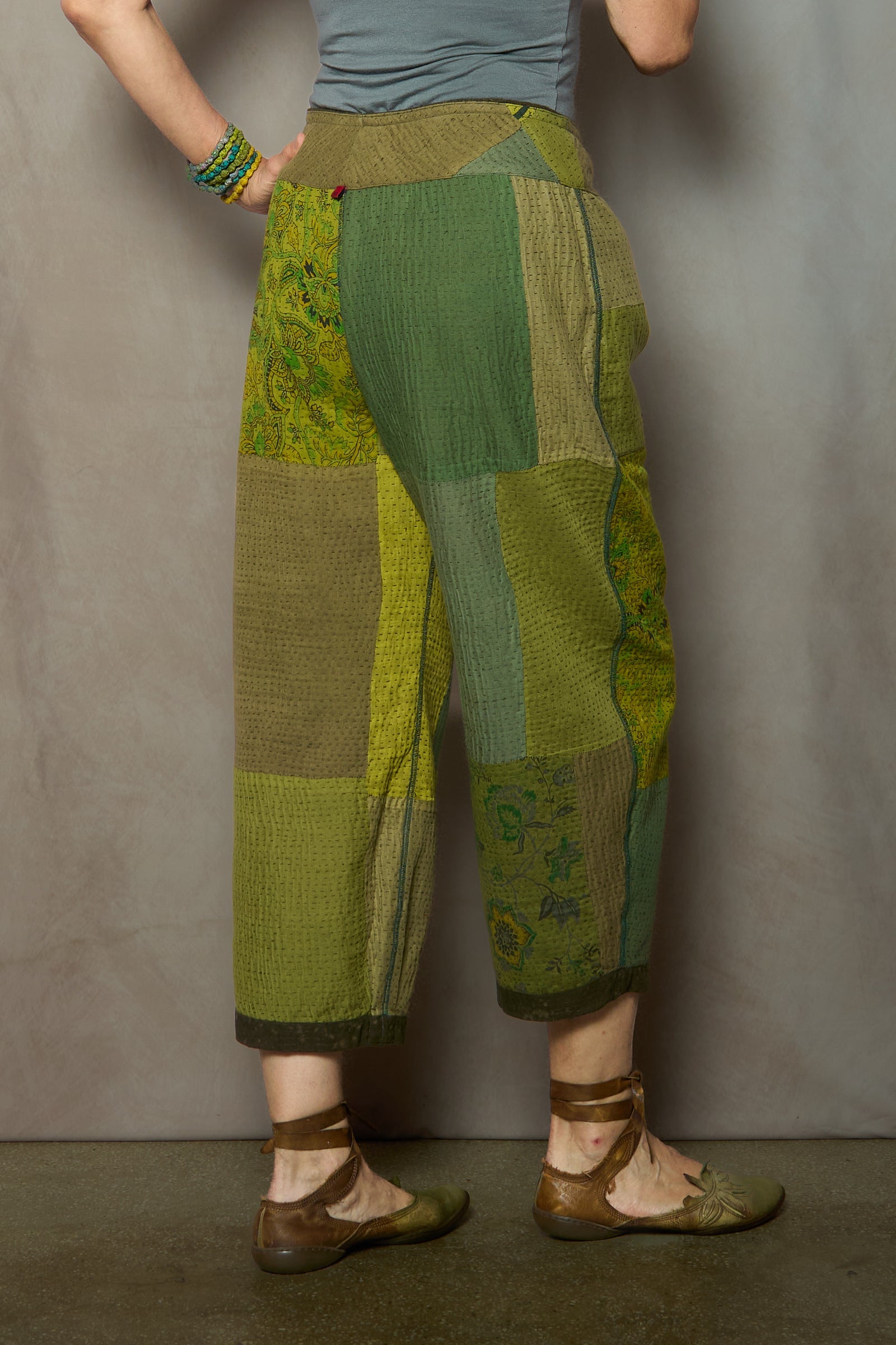 DUCK SUN DYE WITH PATCH KANTHA NEW LANTERN PANTS - us2651-grn -