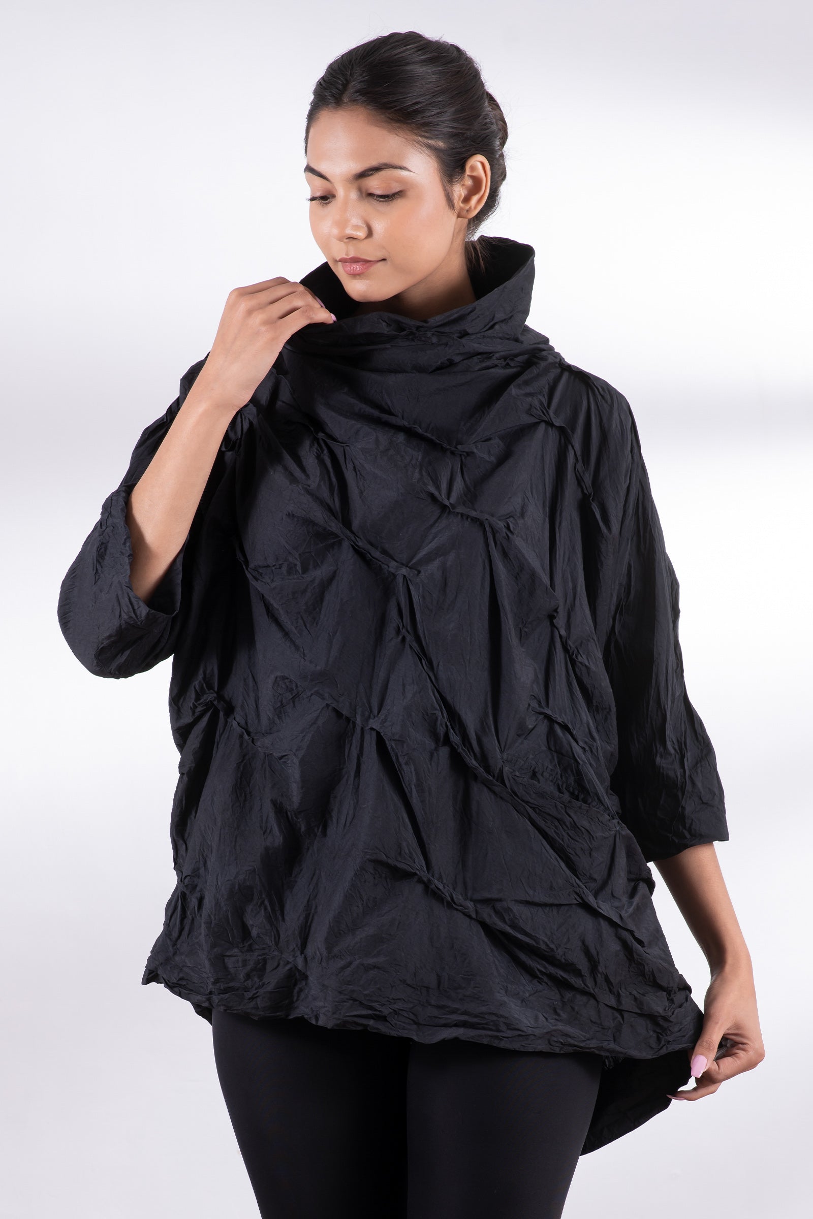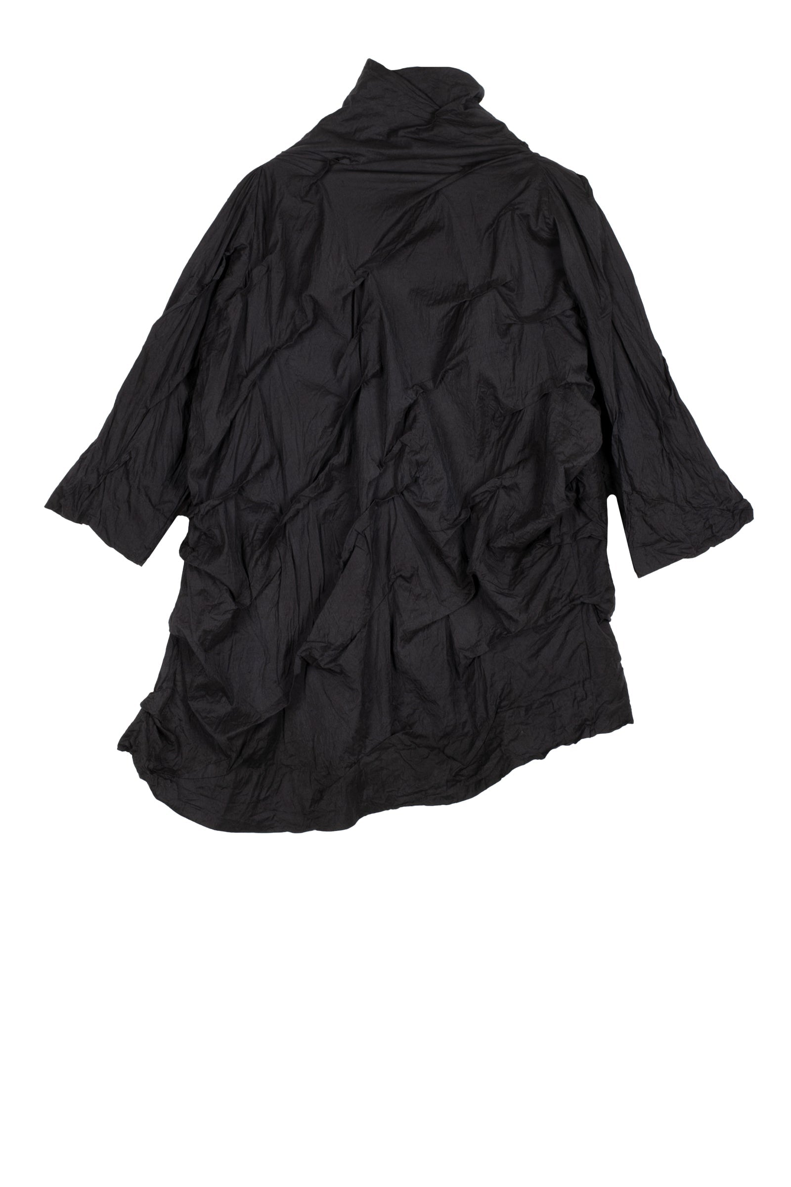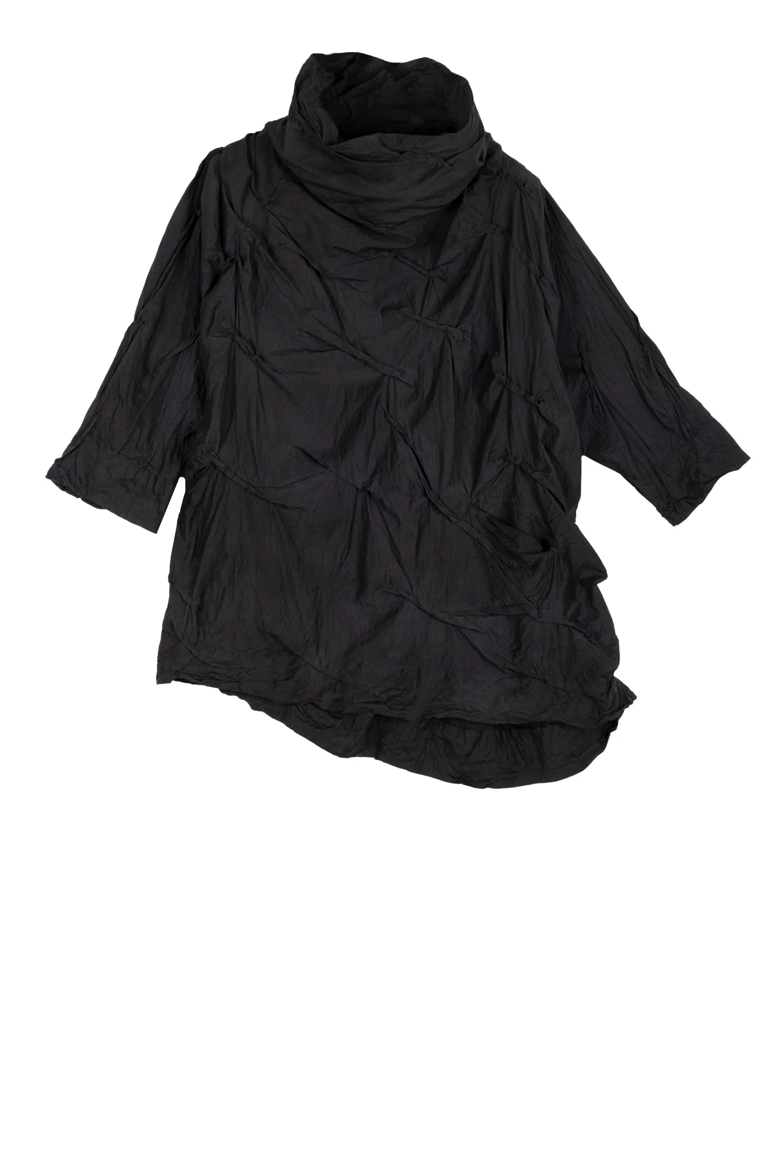 DYED COTTON SILK HEAVY VOILE WAVY TUCK PULLOVER - dh1552-blk -