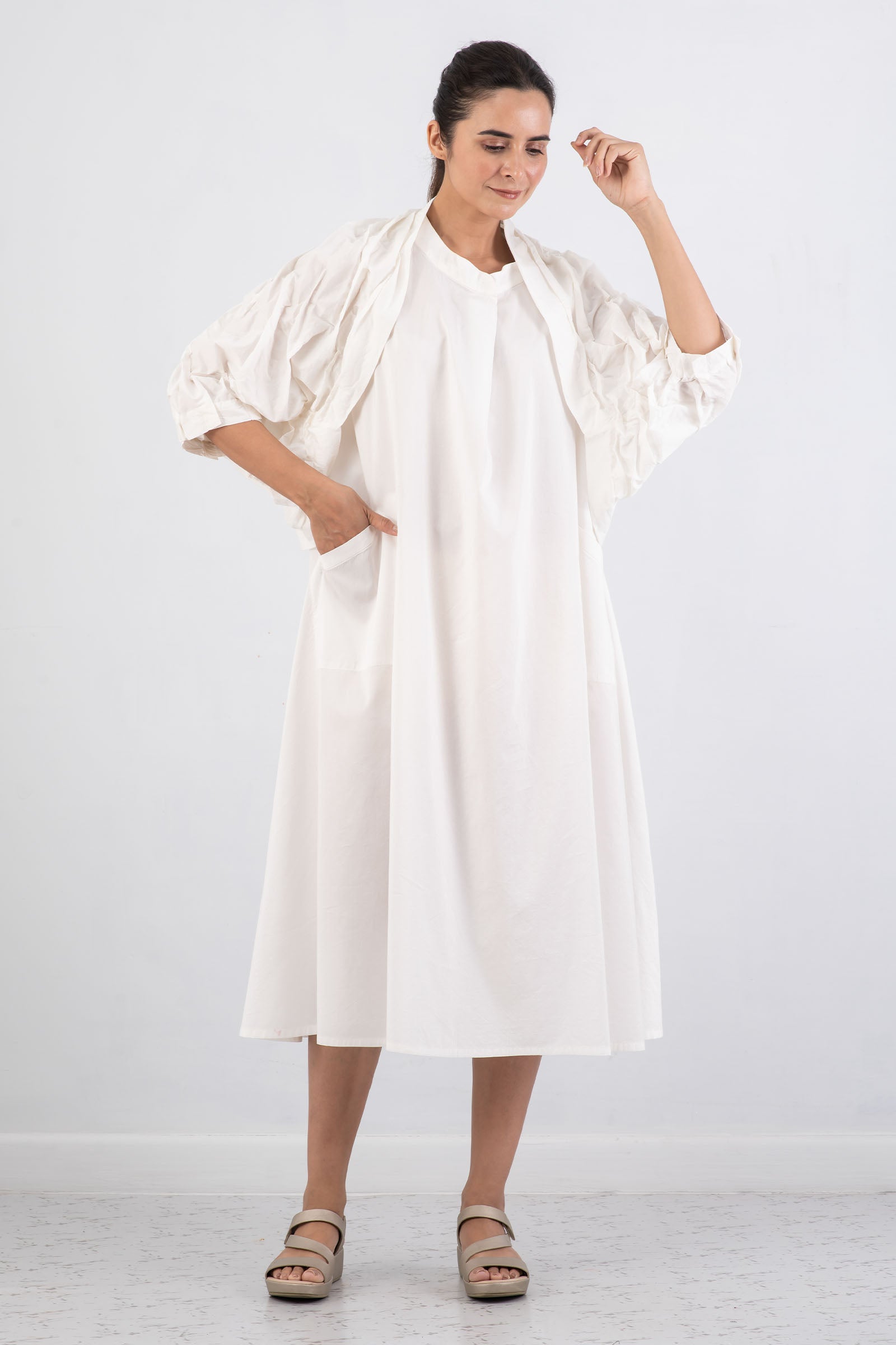 DYED COTTON SILK HEAVY VOILE WAVY TUCK SHRUG - dh1067-wht -