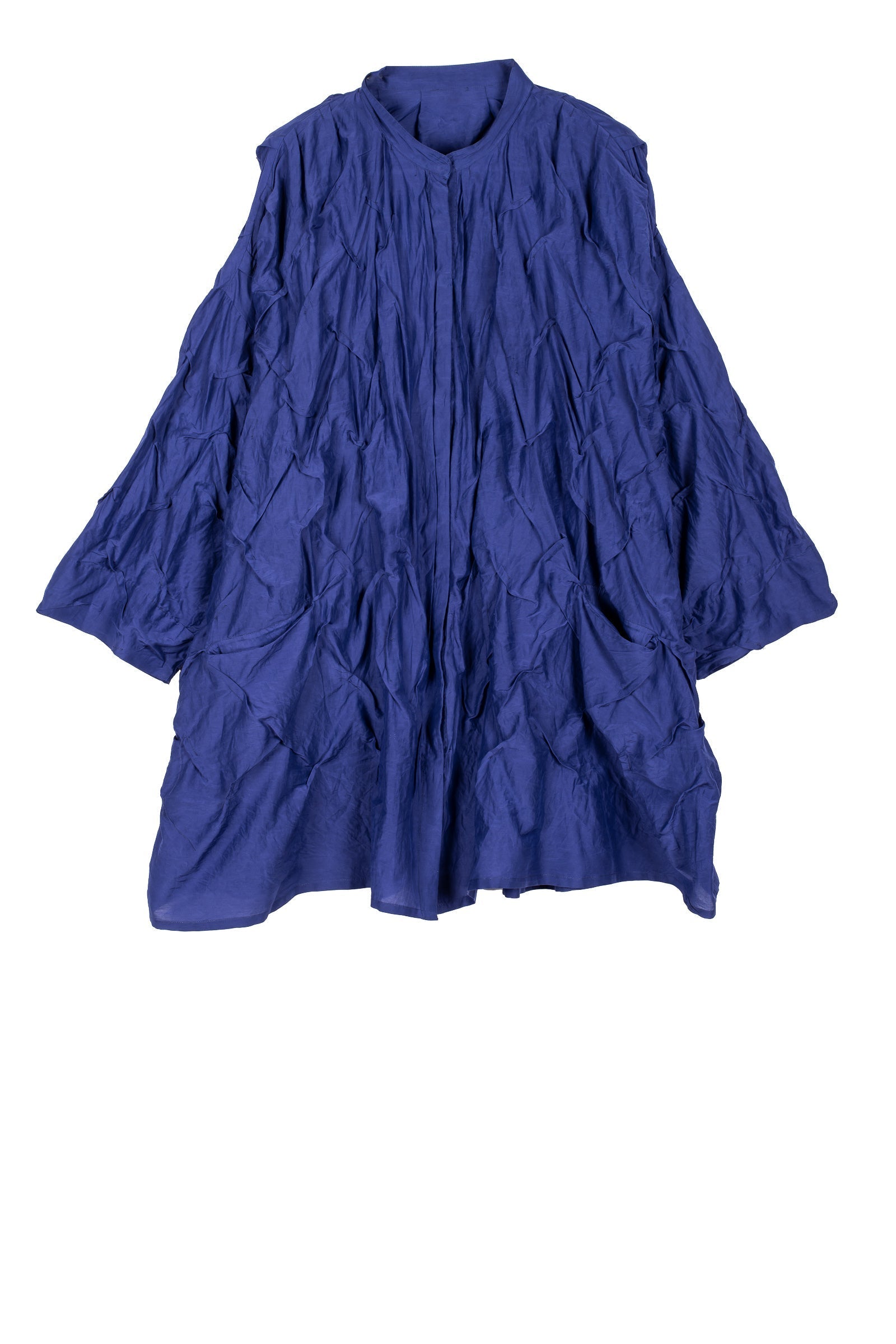 DYED COTTON SILK VOILE WAVY TUCK OVERSIZED SHIRT - dc1555-blu -
