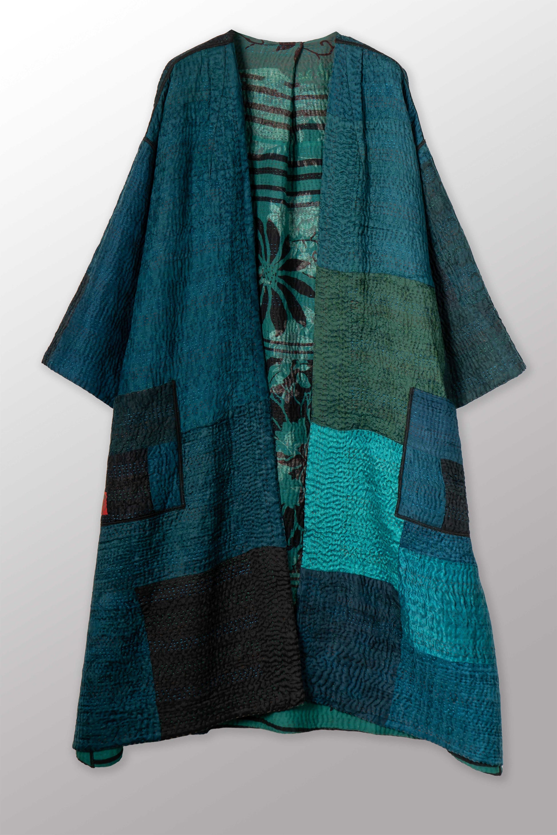 4 Layer Vintage Saris with Hand Stitches on Entire Garment - Reversible