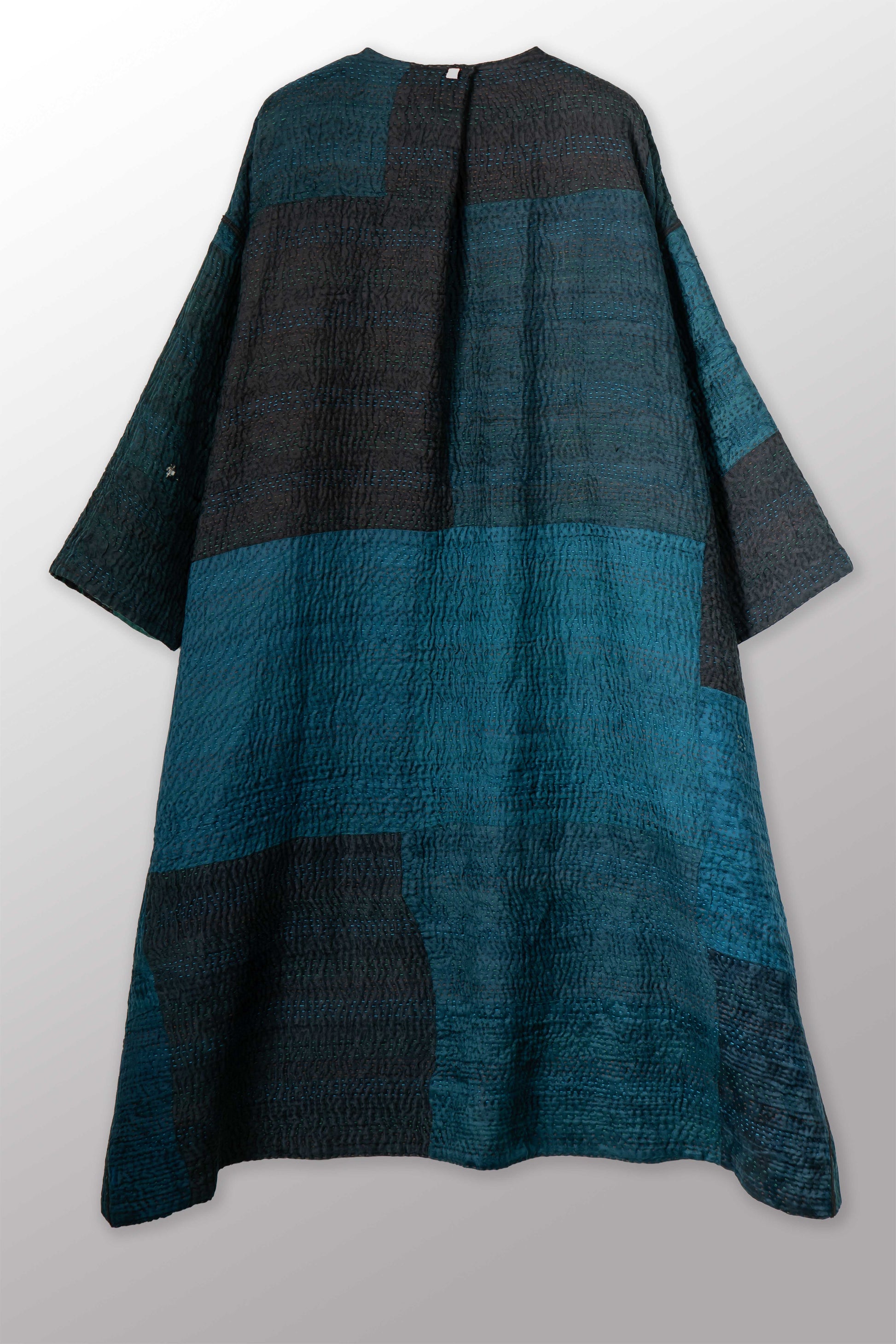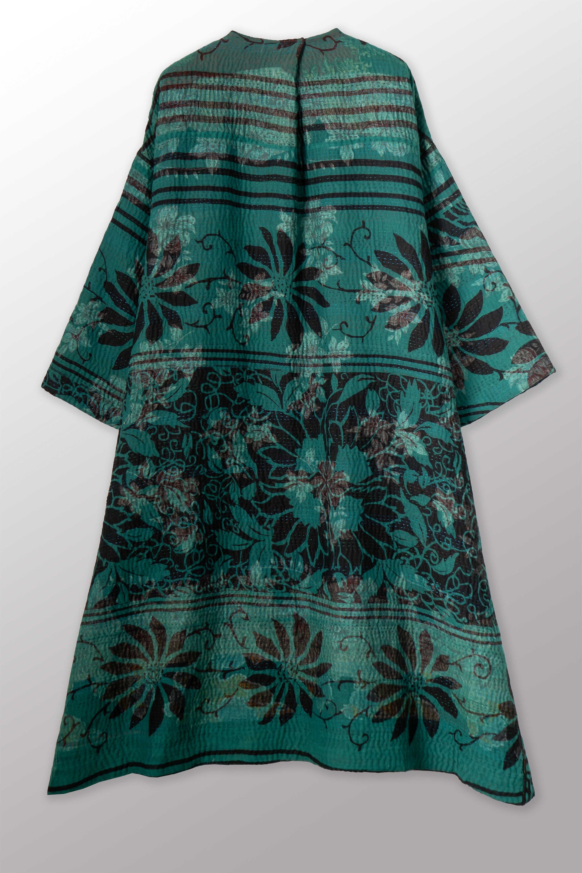 EMERALD GREEN KANTHA LONG DUSTER - eg4328-tel -