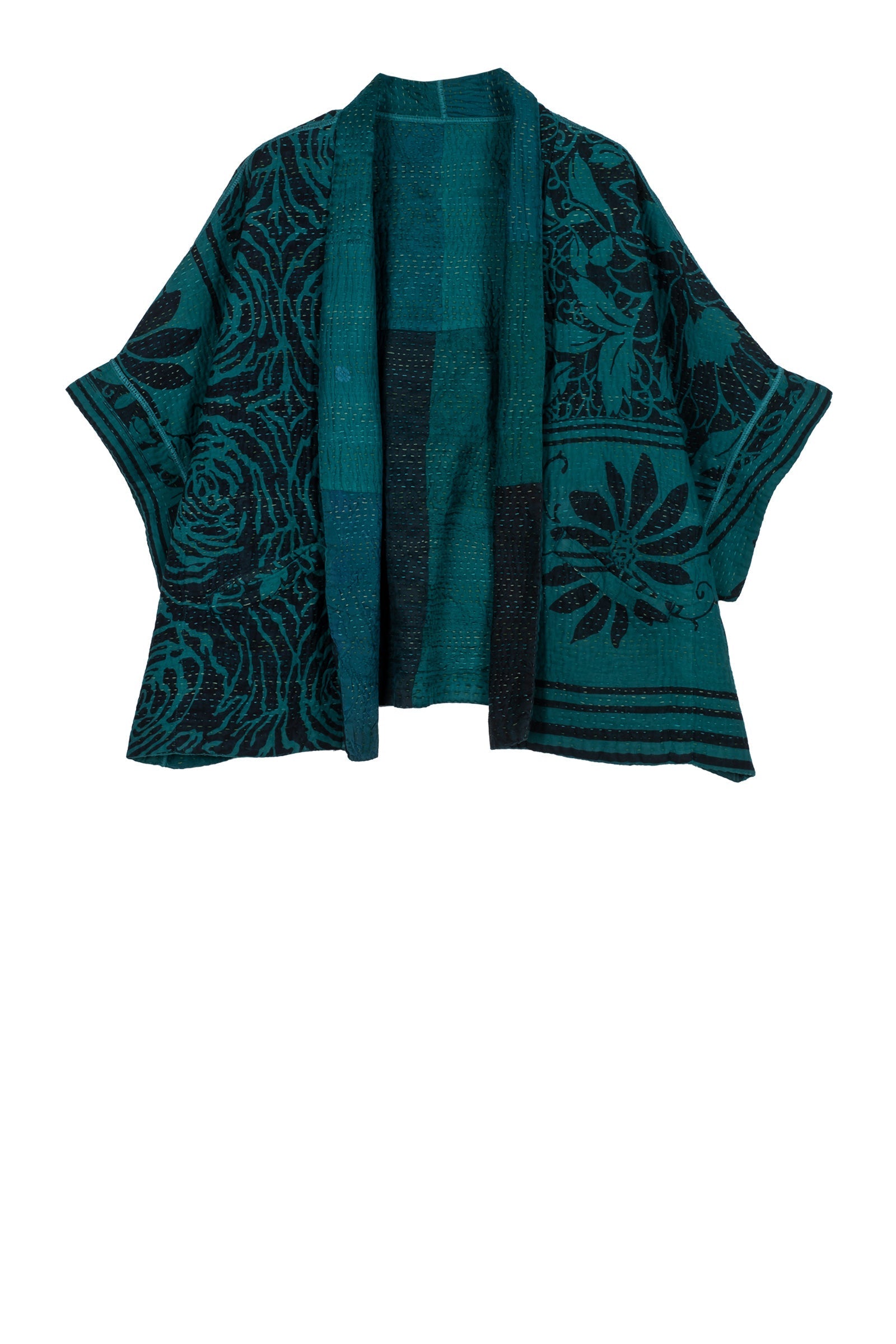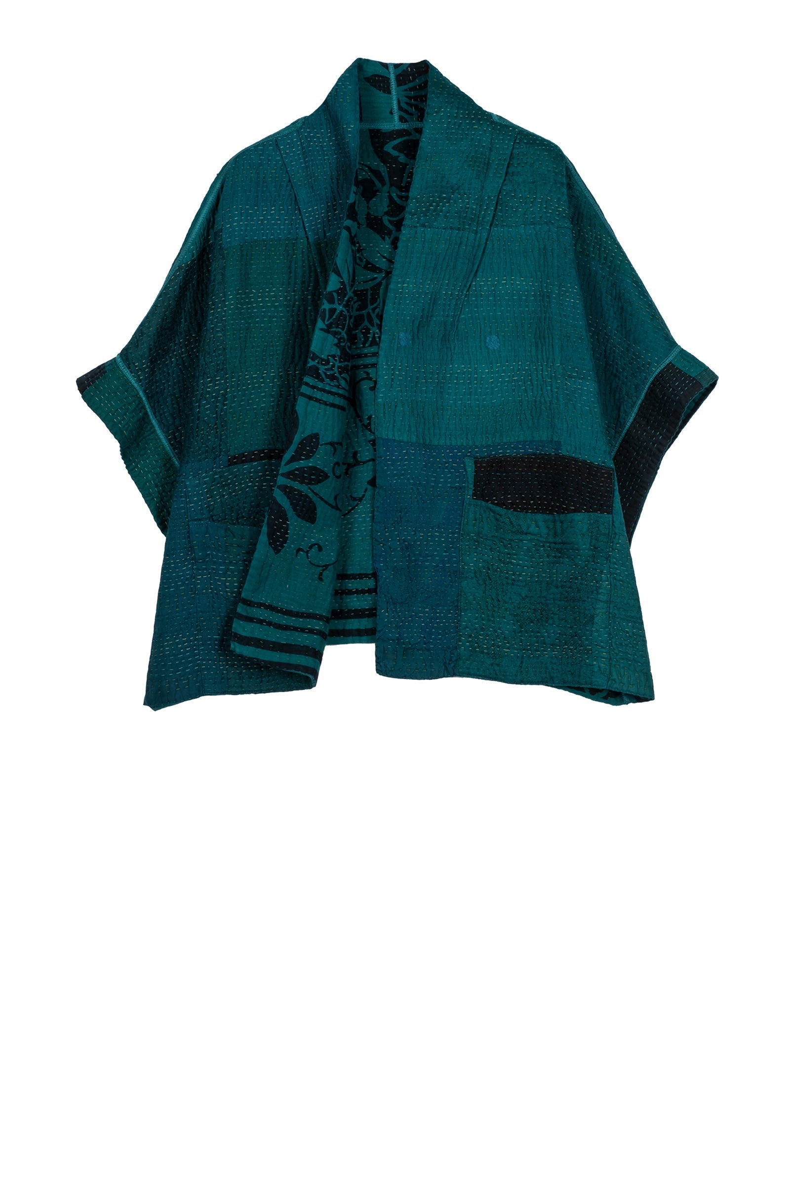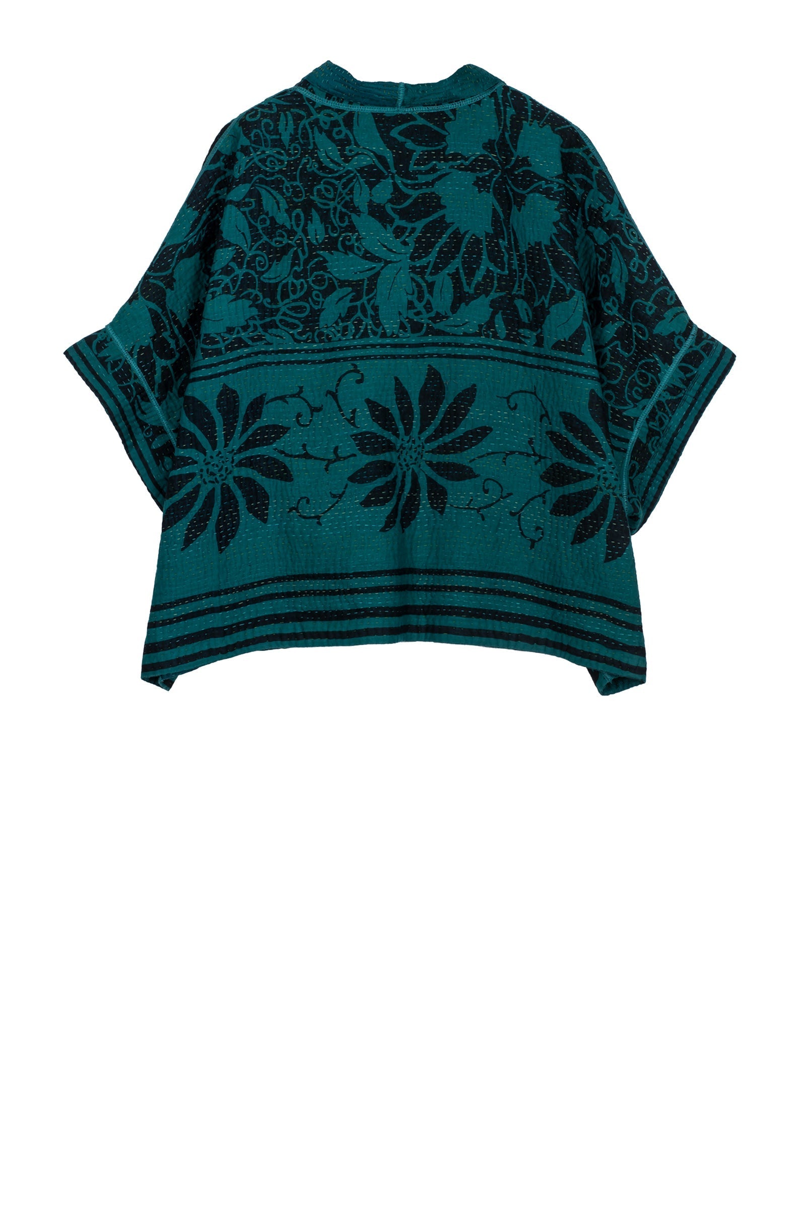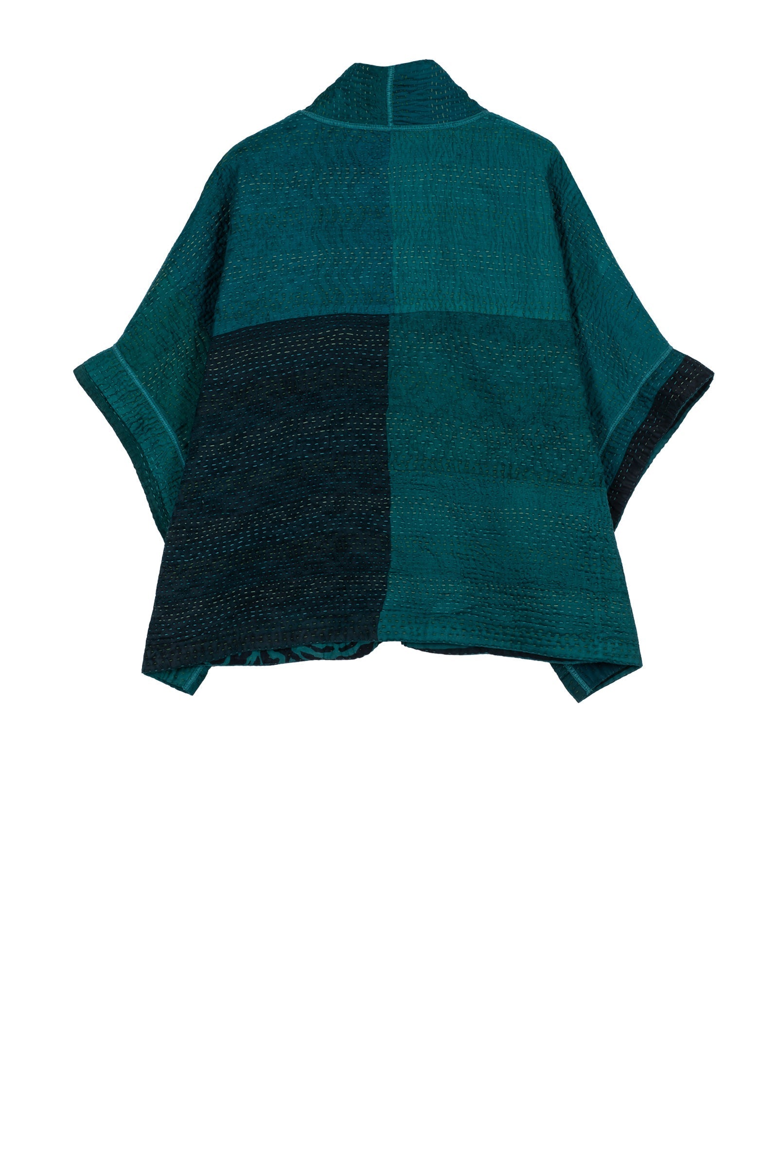 EMERALD GREEN KANTHA MINI PONCHO - eg4060-tel -