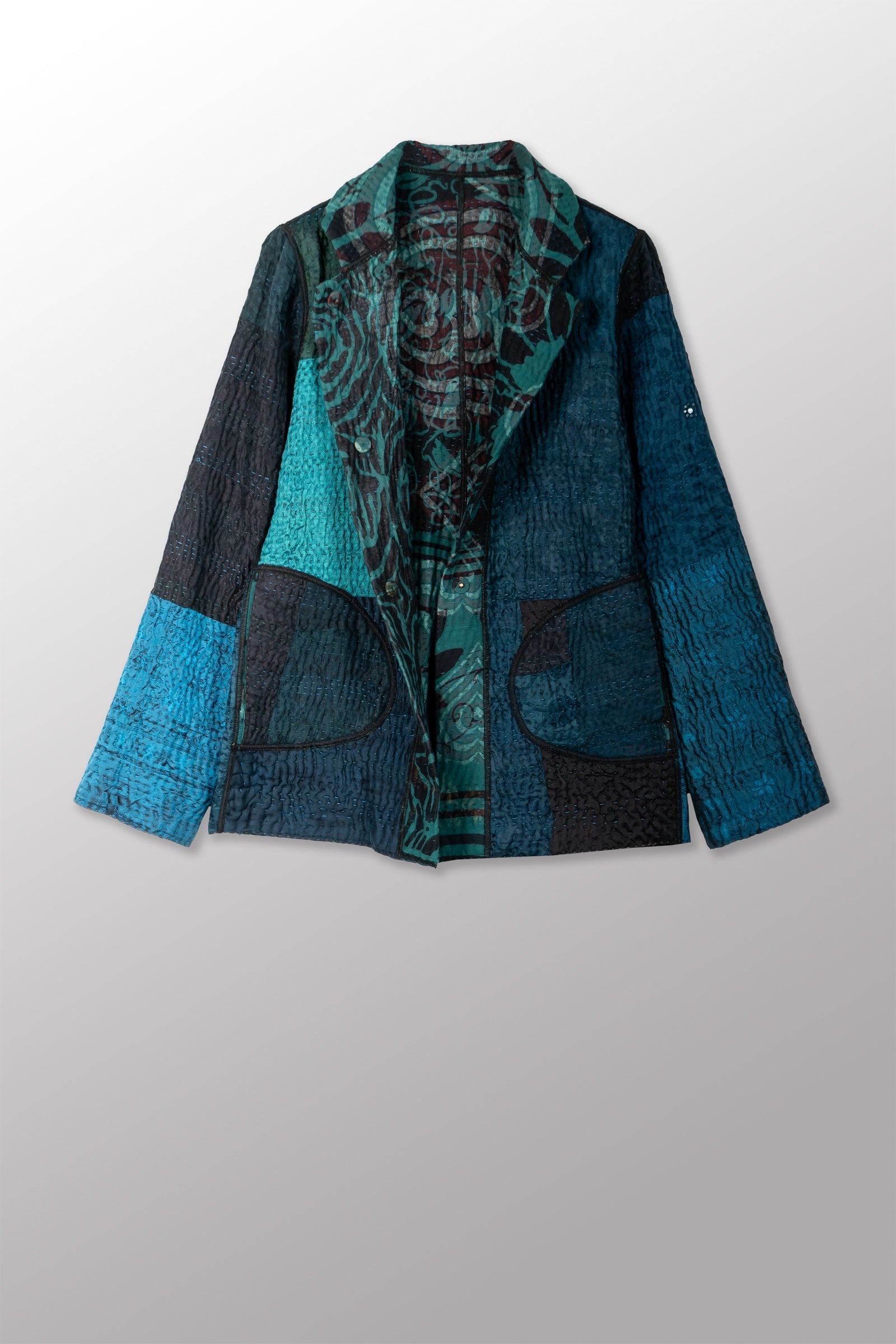 EMERALD GREEN KANTHA SIMPLE JACKET - eg4022-tel -