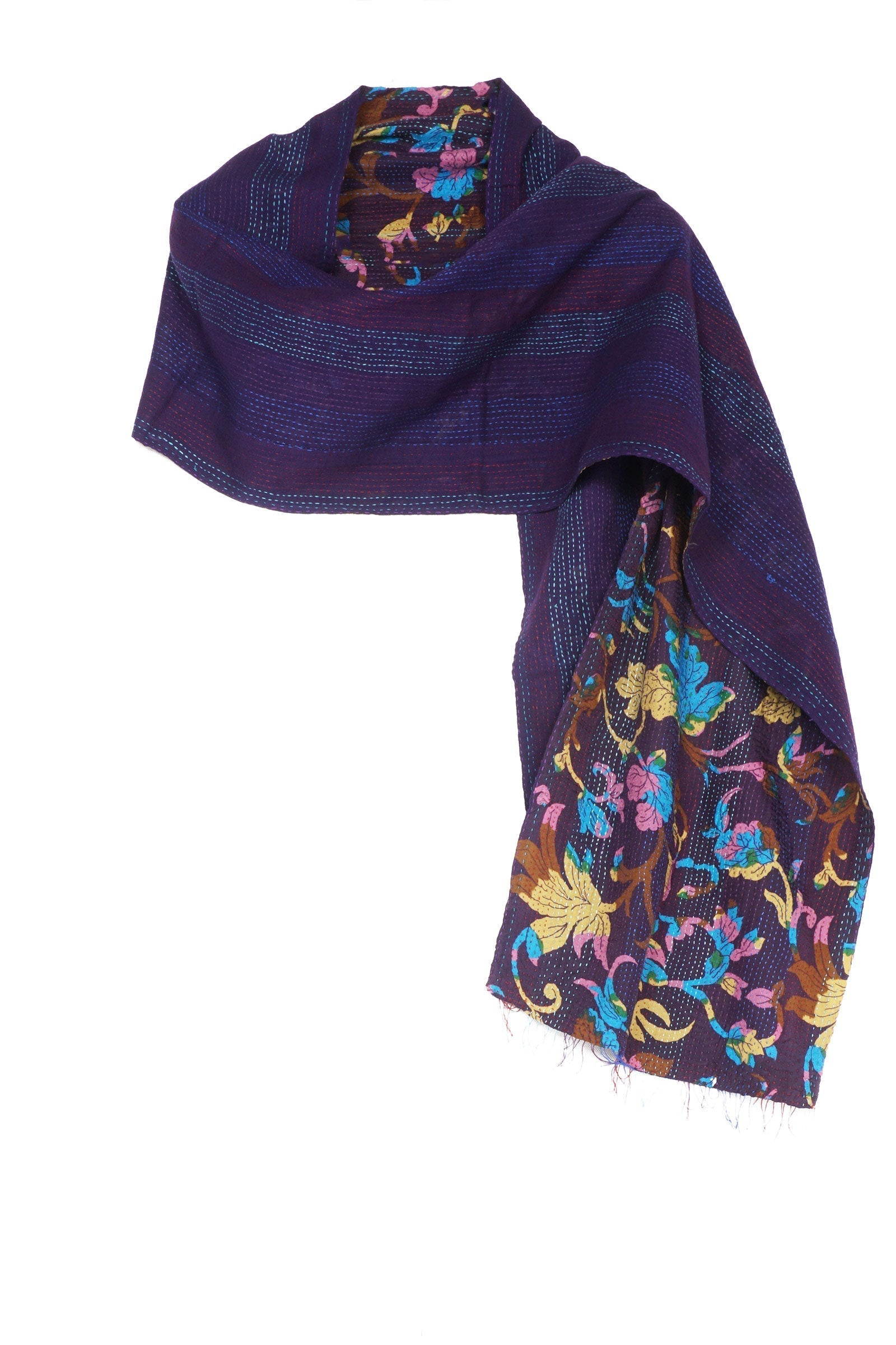 FLORAL SILK PRINT KANTHA SCARF SMALL - fs2800-nvy -