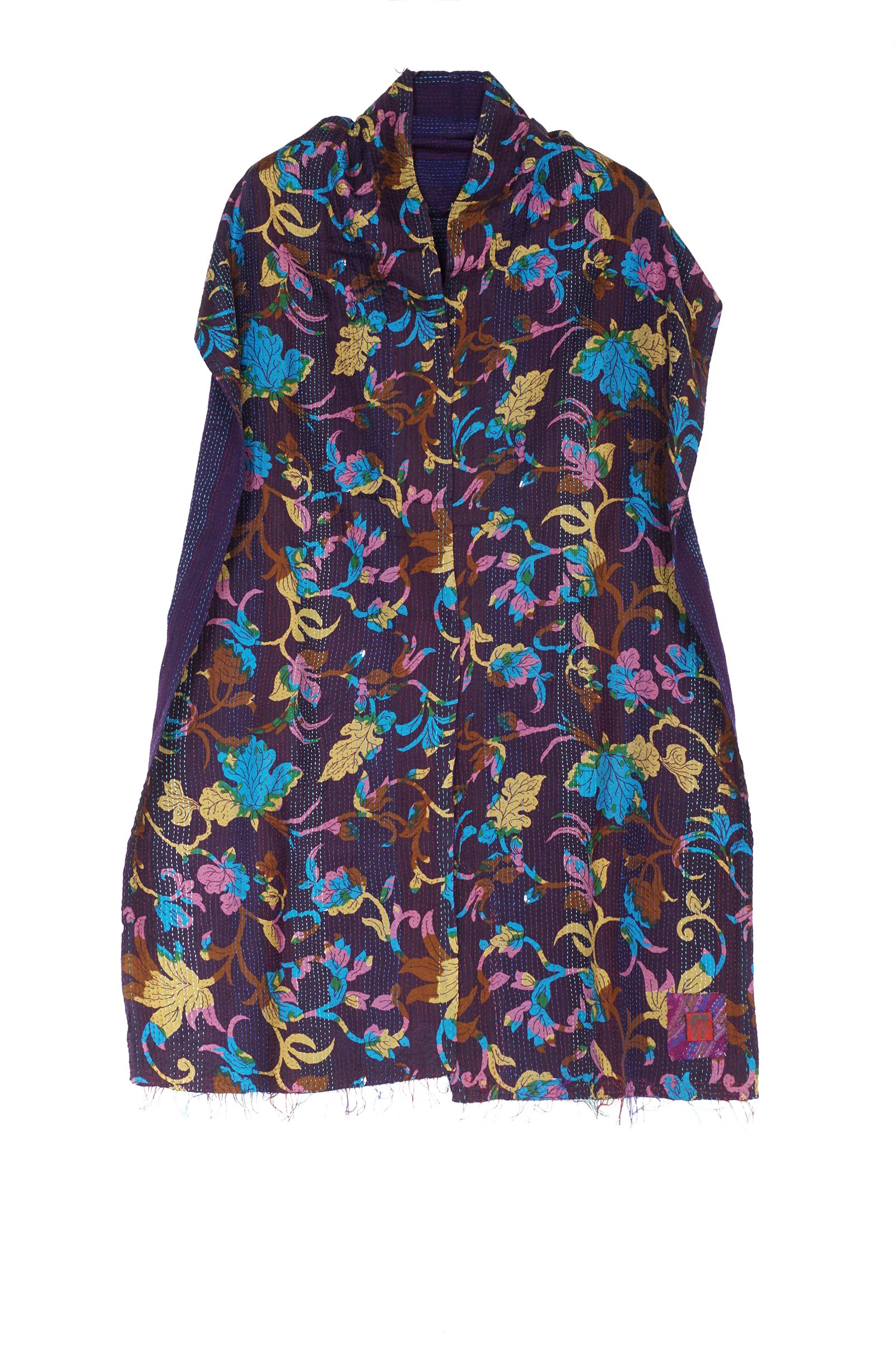 2 Layer Vintage Saris with Hand Stitches on Entire Garment - Reversible