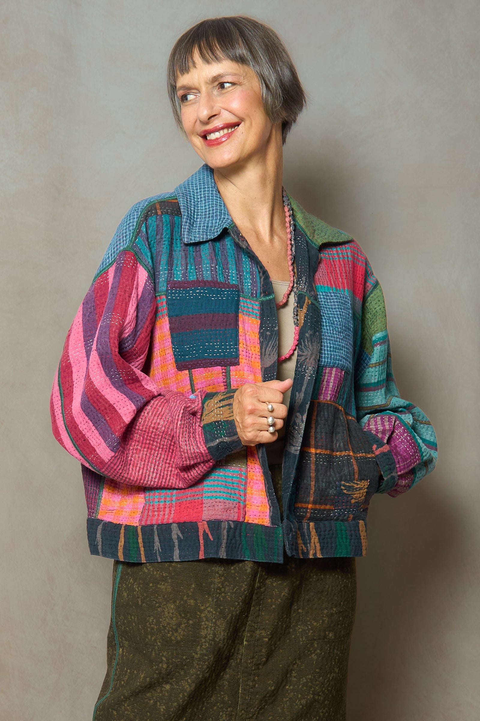 4 Layer Vintage Saris with Hand Stitches on Entire Garment