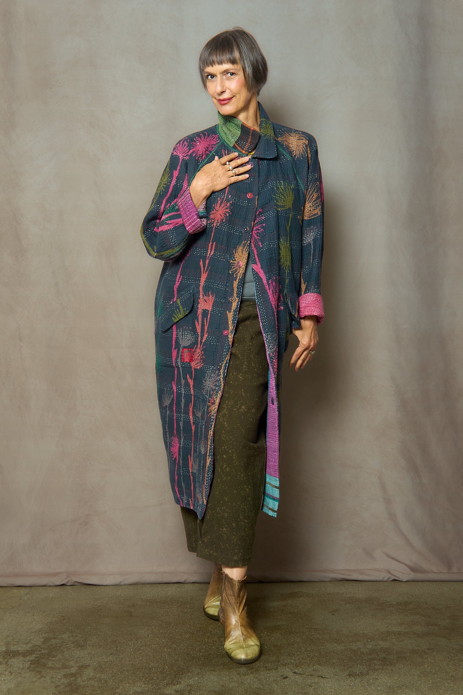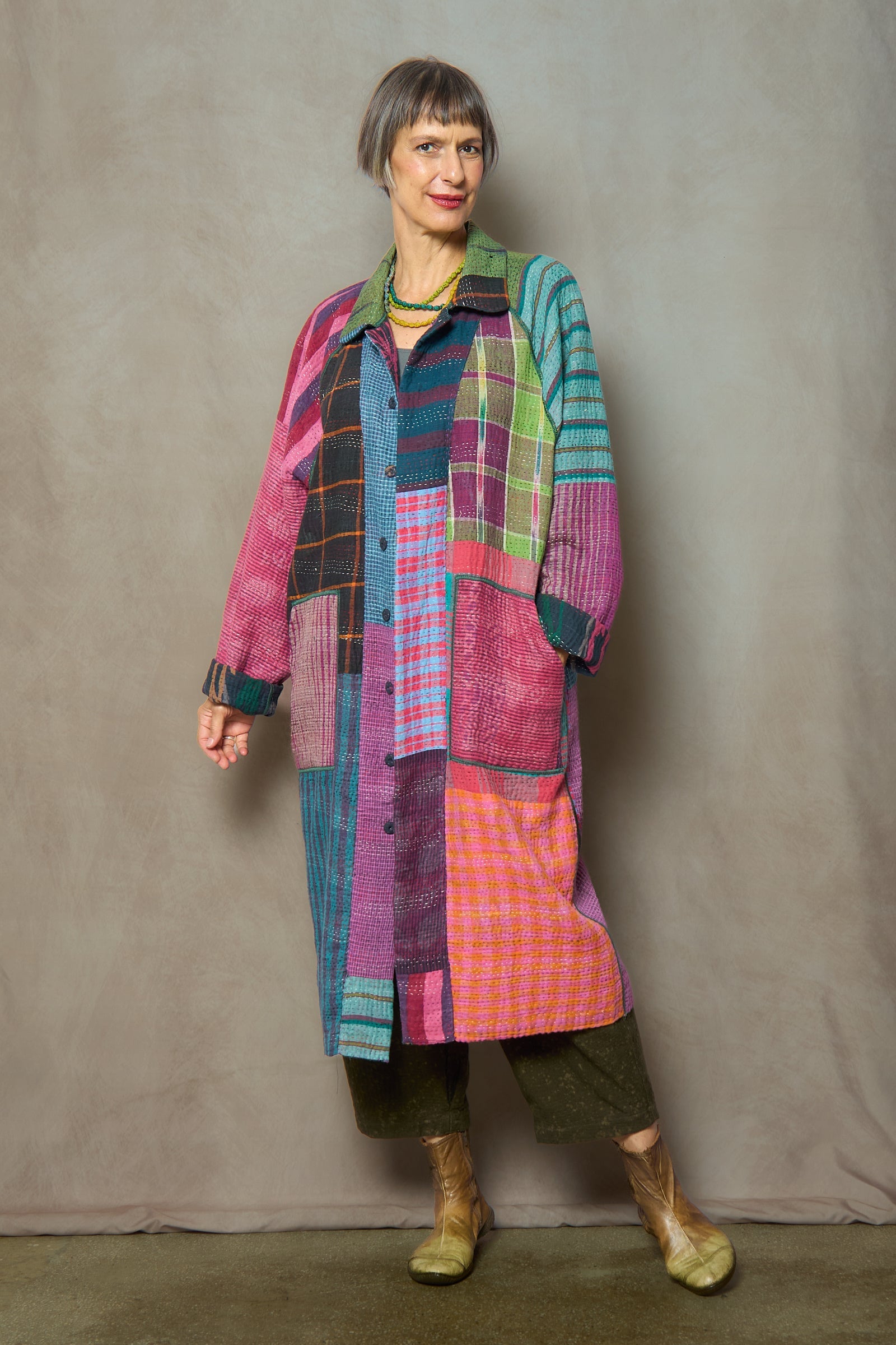 4 Layer Vintage Saris with Hand Stitches on Entire Garment - Reversible