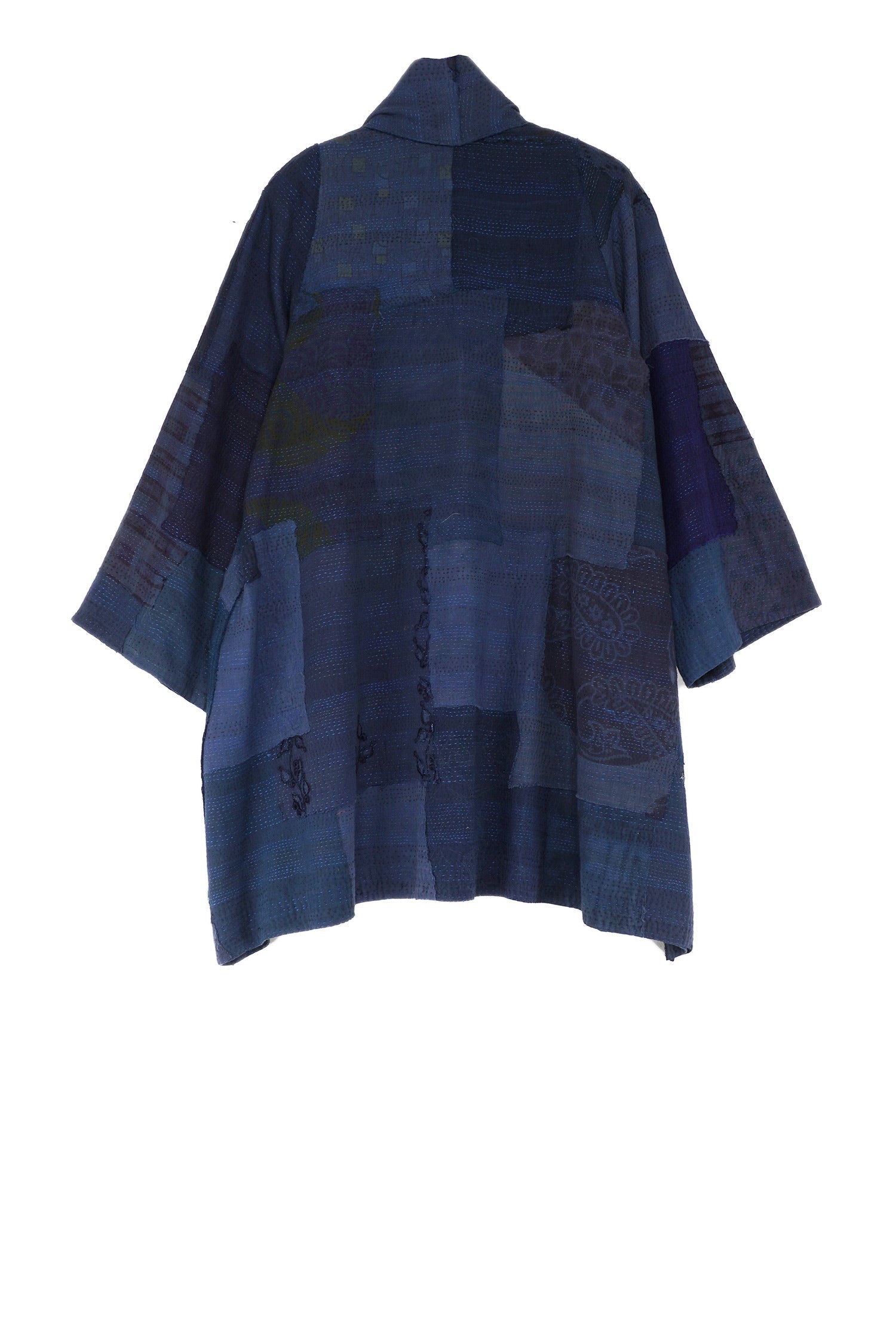 FRAYED PATCH KANTHA A-LINE JKT - fi2003-nvy -