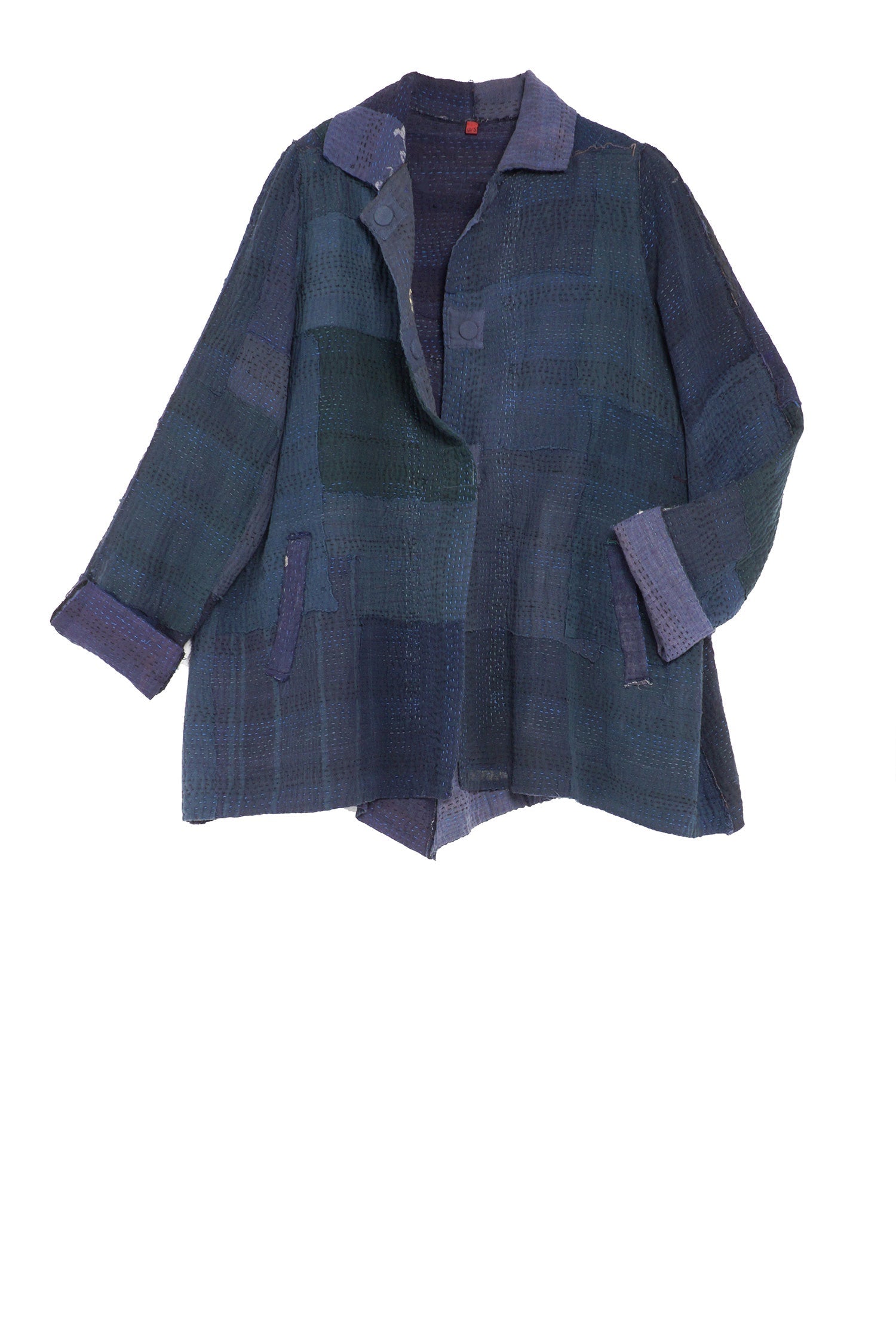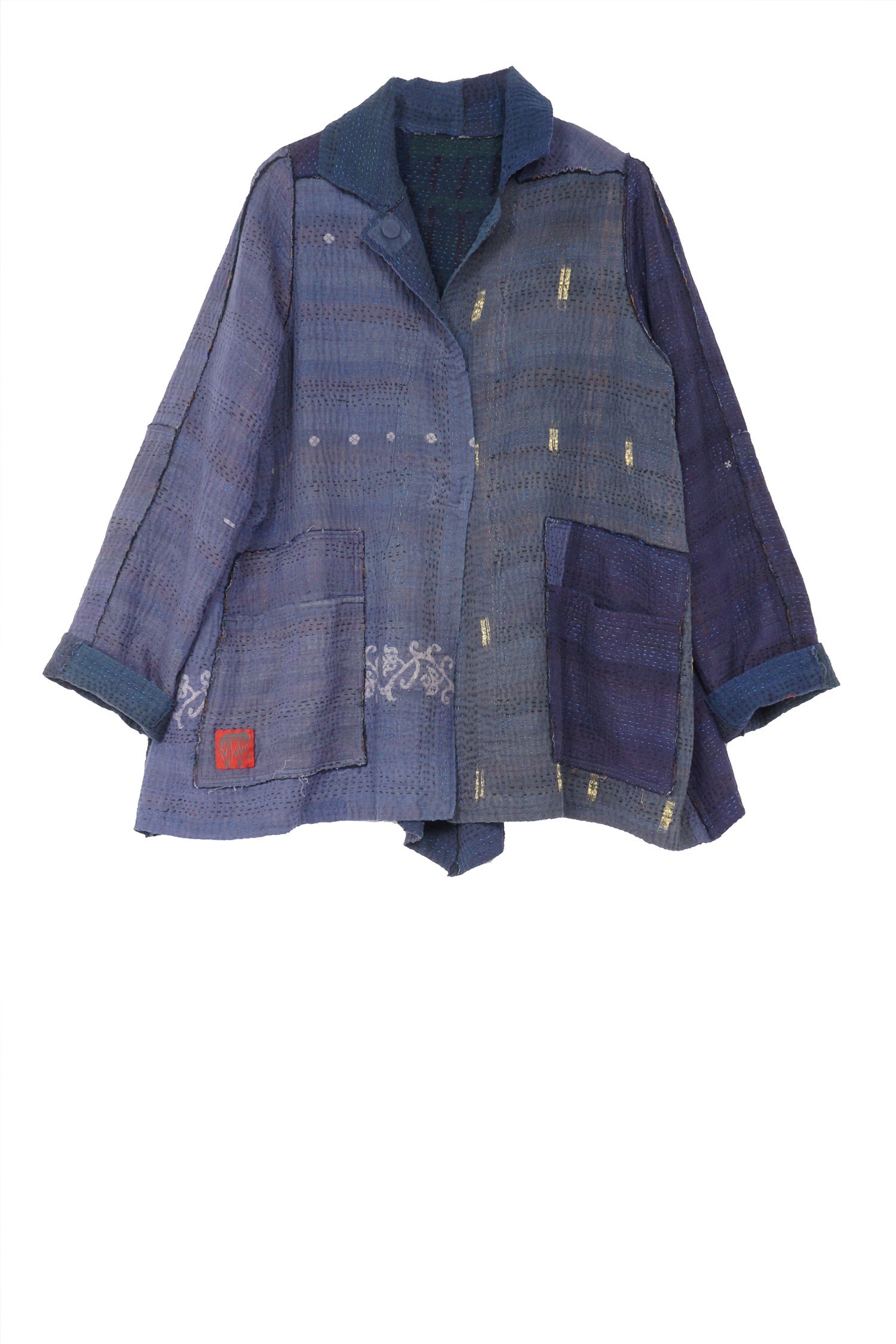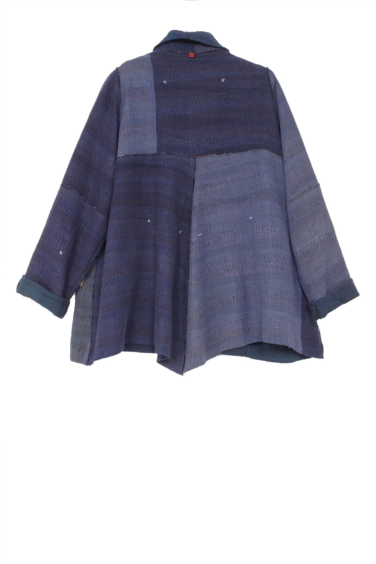 FRAYED PATCH KANTHA BACK FLARE JKT - fi4046-nvy -