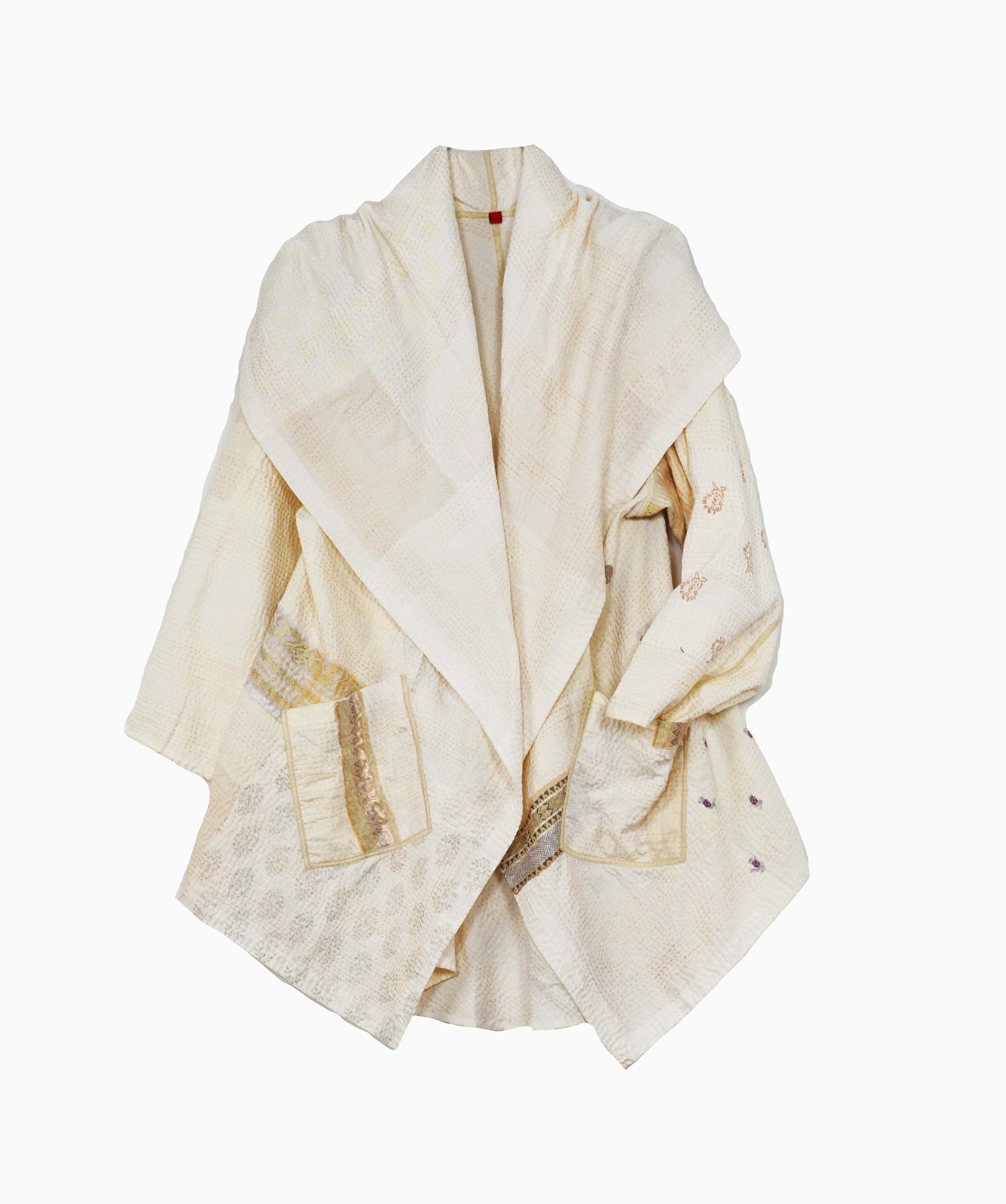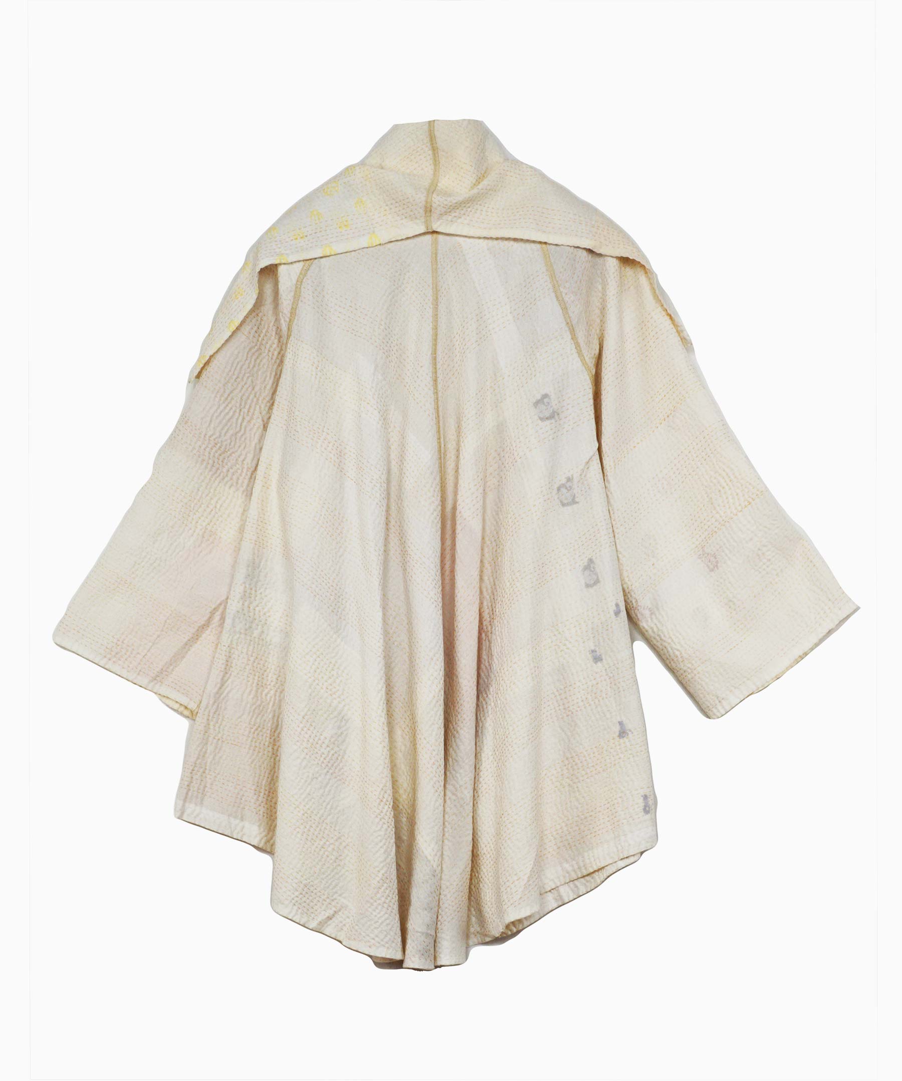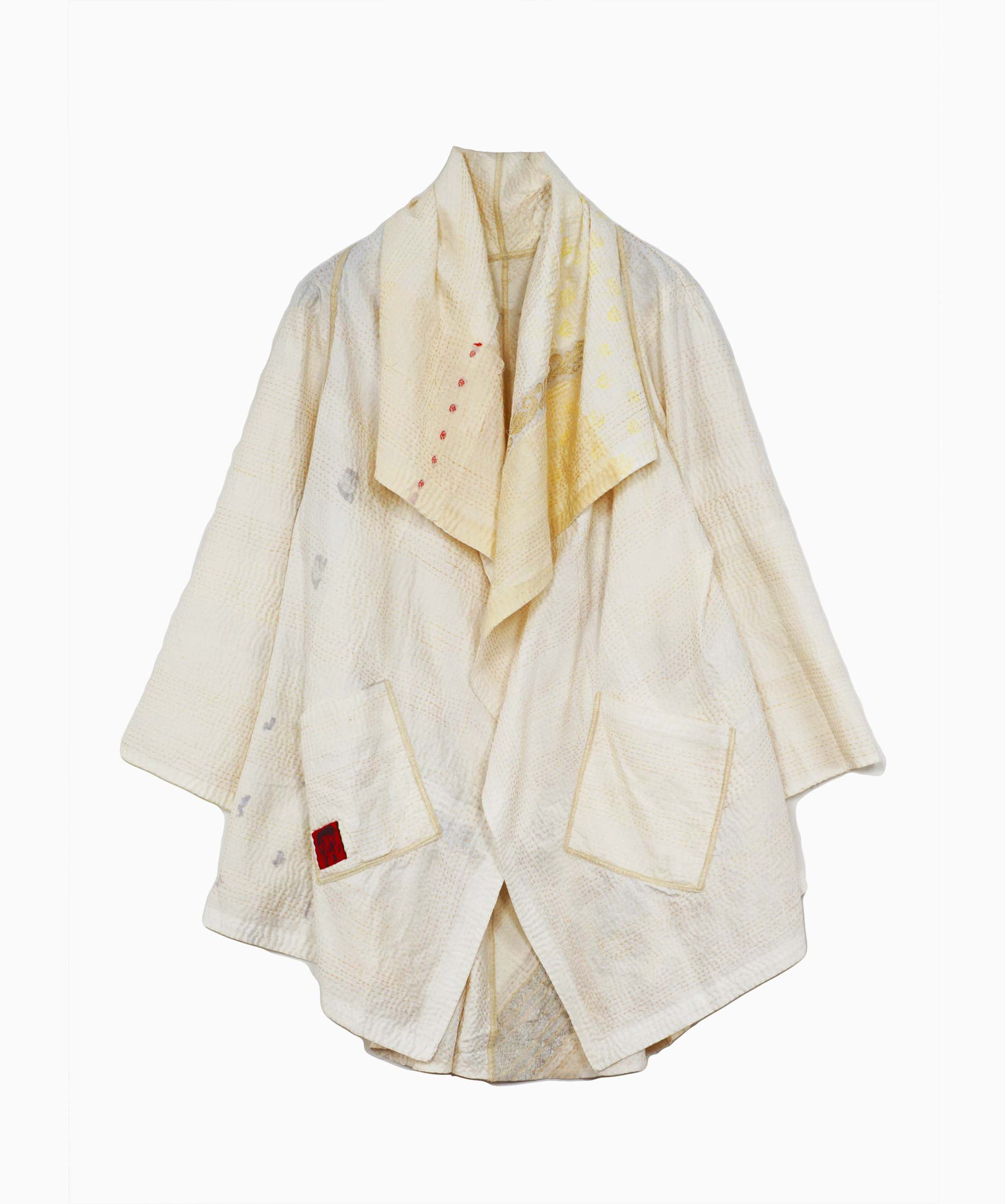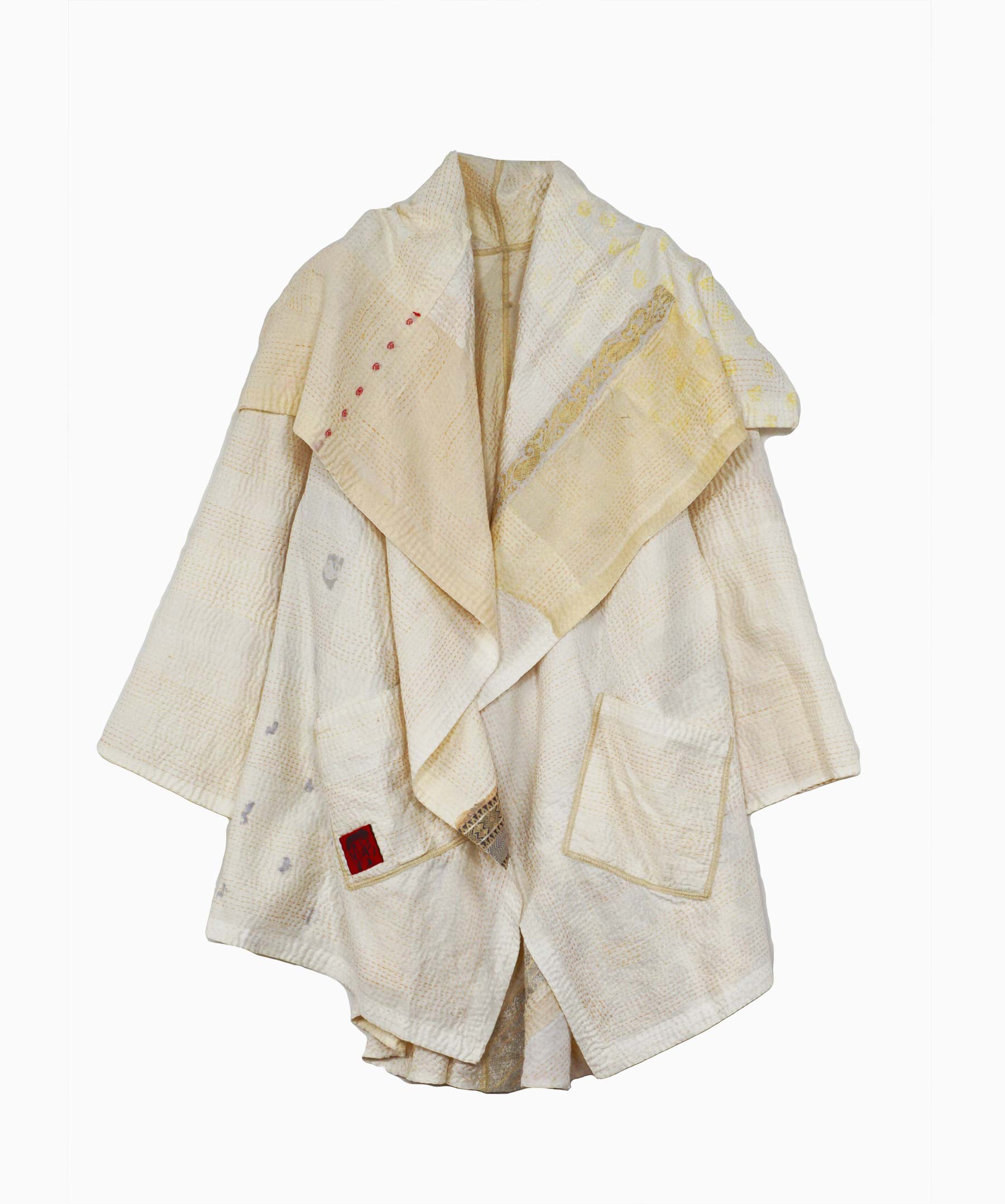 FRAYED PATCH KANTHA CIRCULAR LONG JKT - fi2009-ivy -
