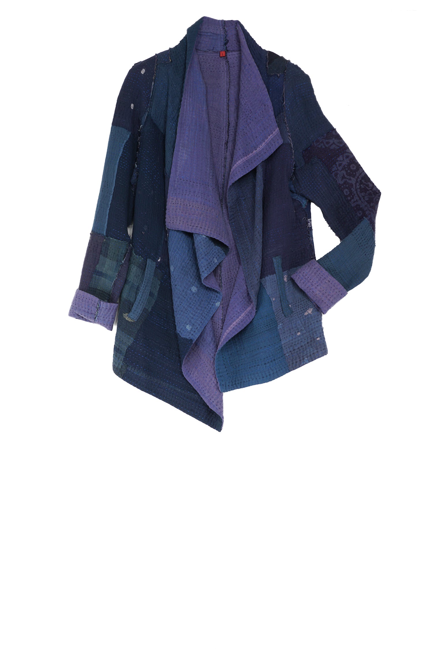 FRAYED PATCH KANTHA DRAPE COLLAR JKT - fi4037-nvy -