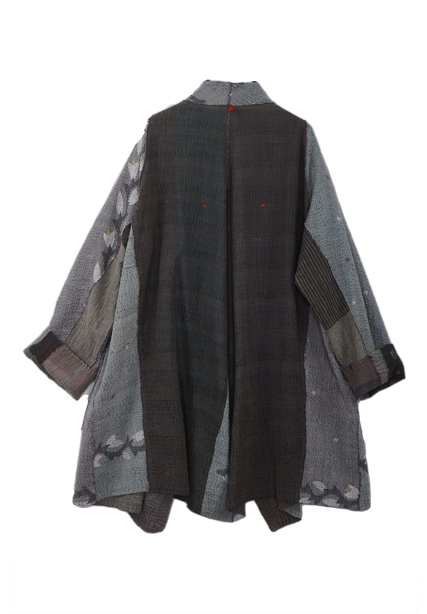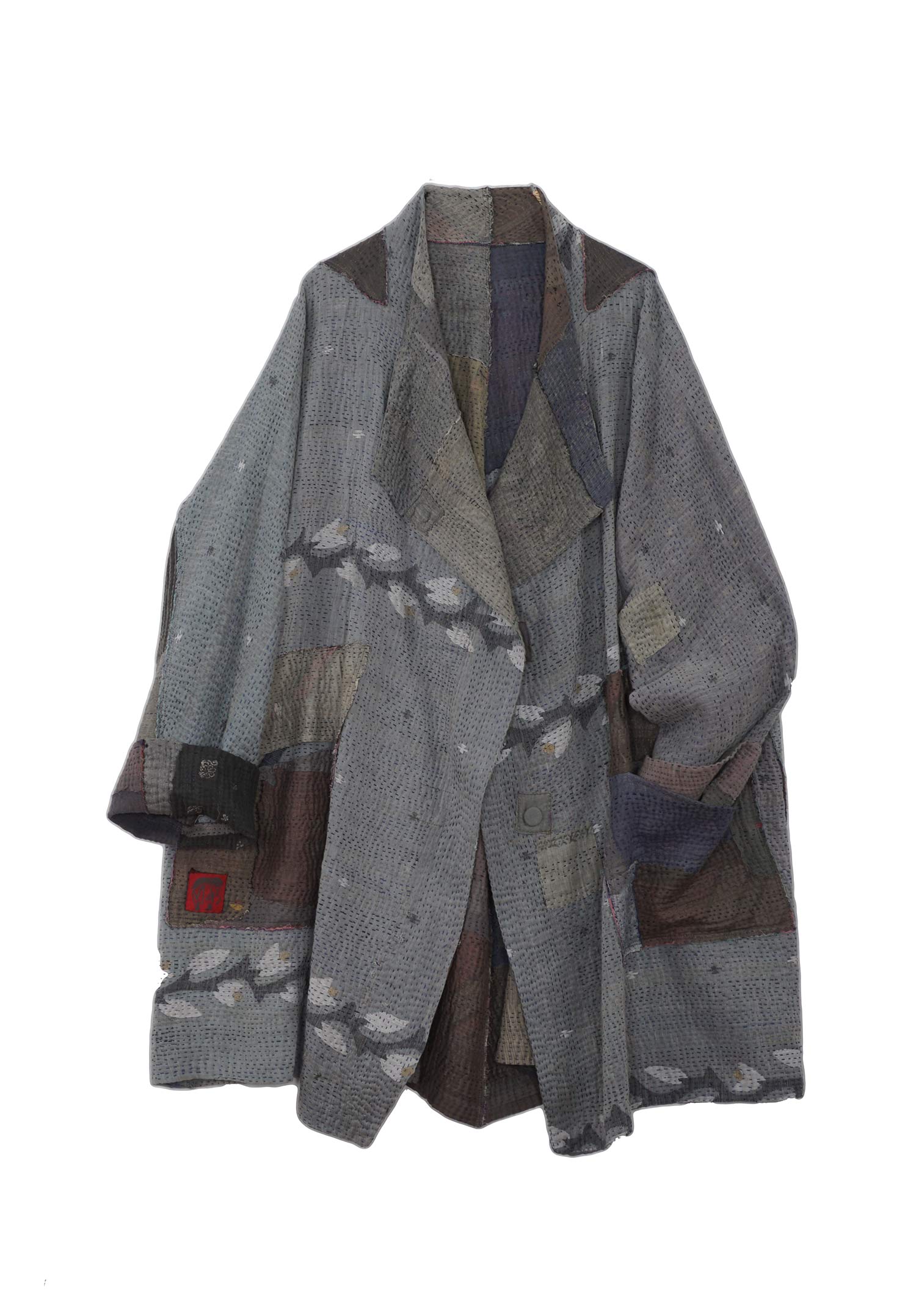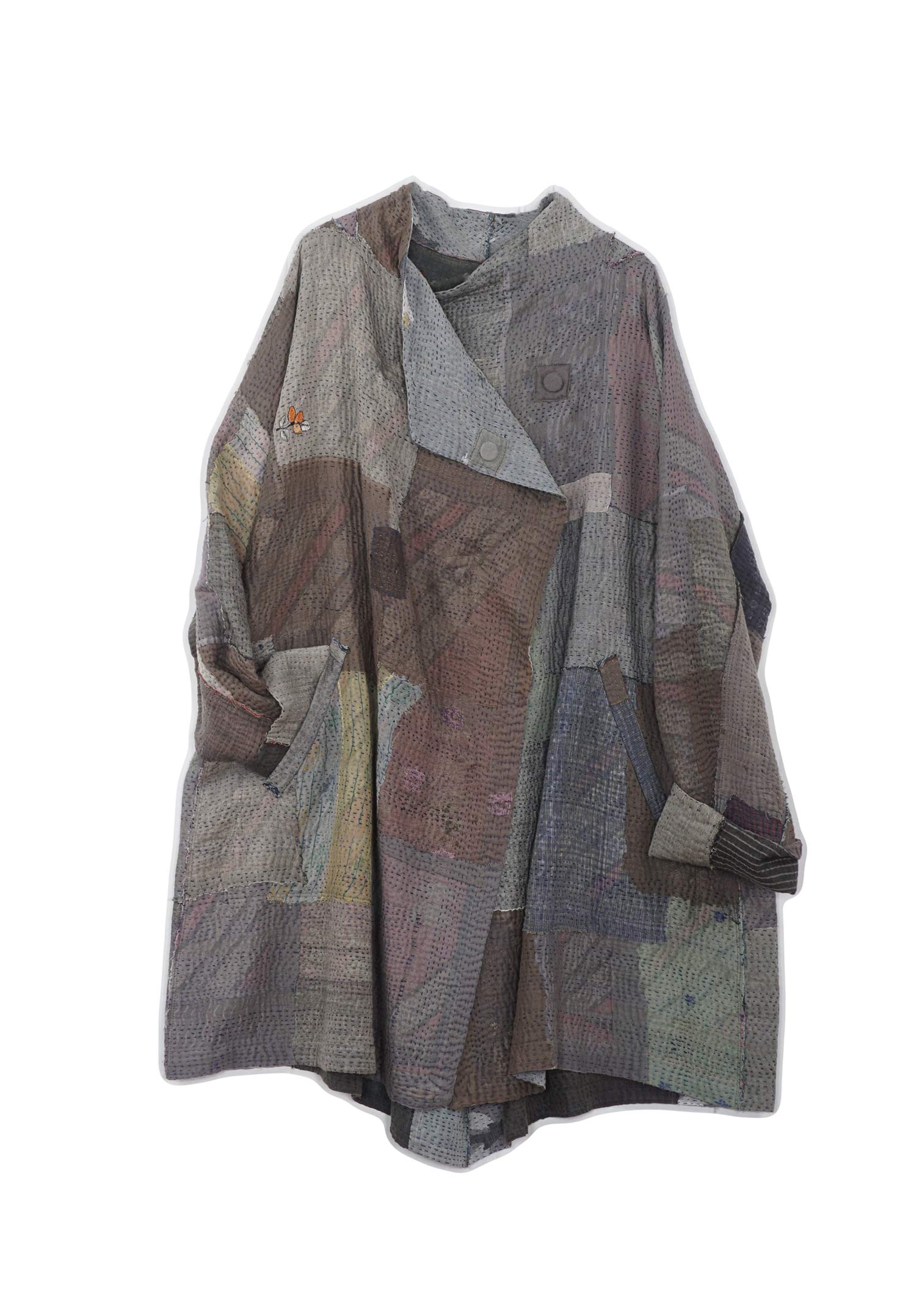 FRAYED PATCH KANTHA FUNNEL COLLAR COAT - fi4312-gry -