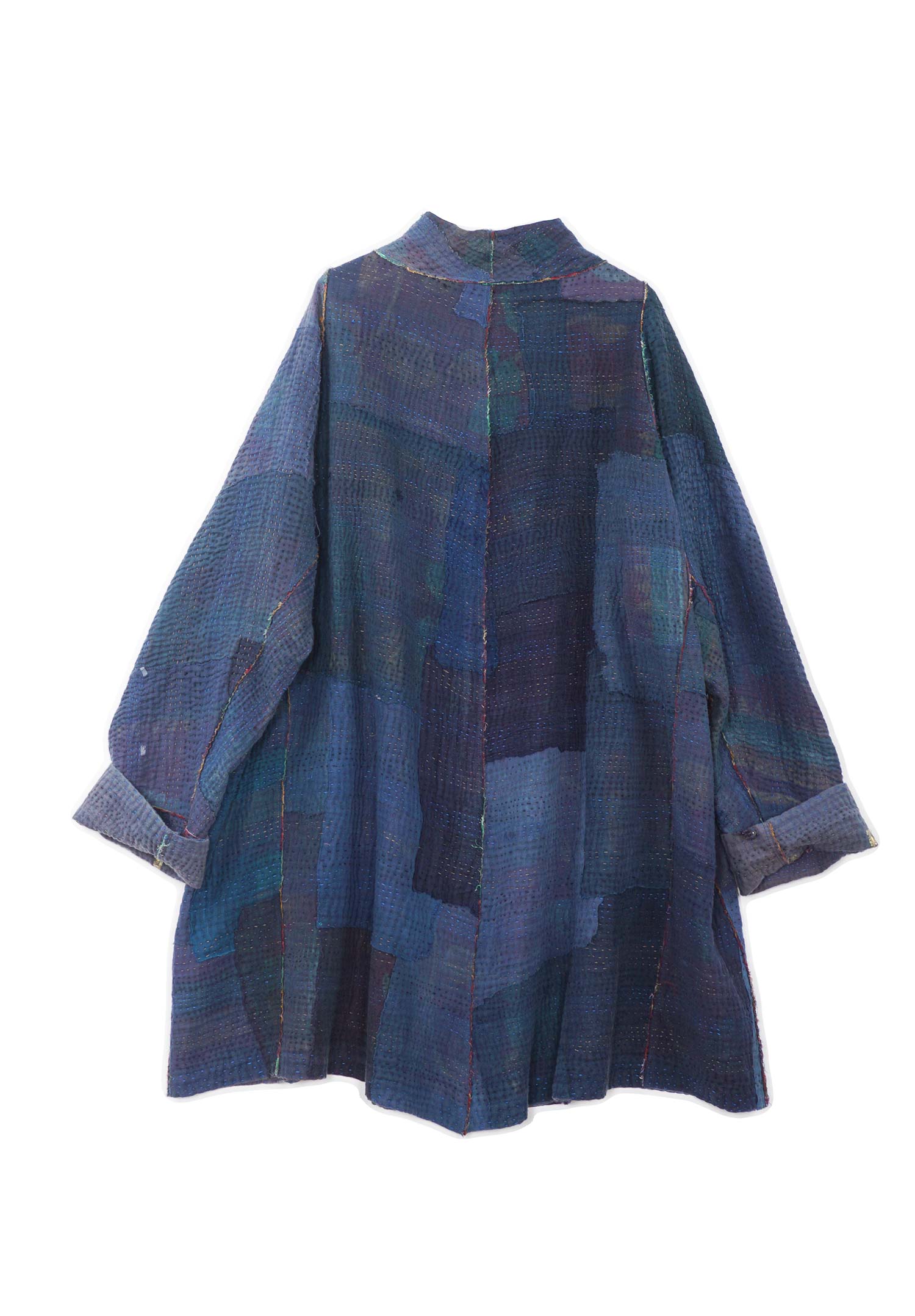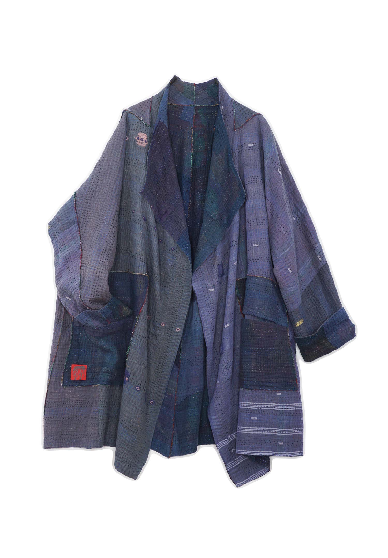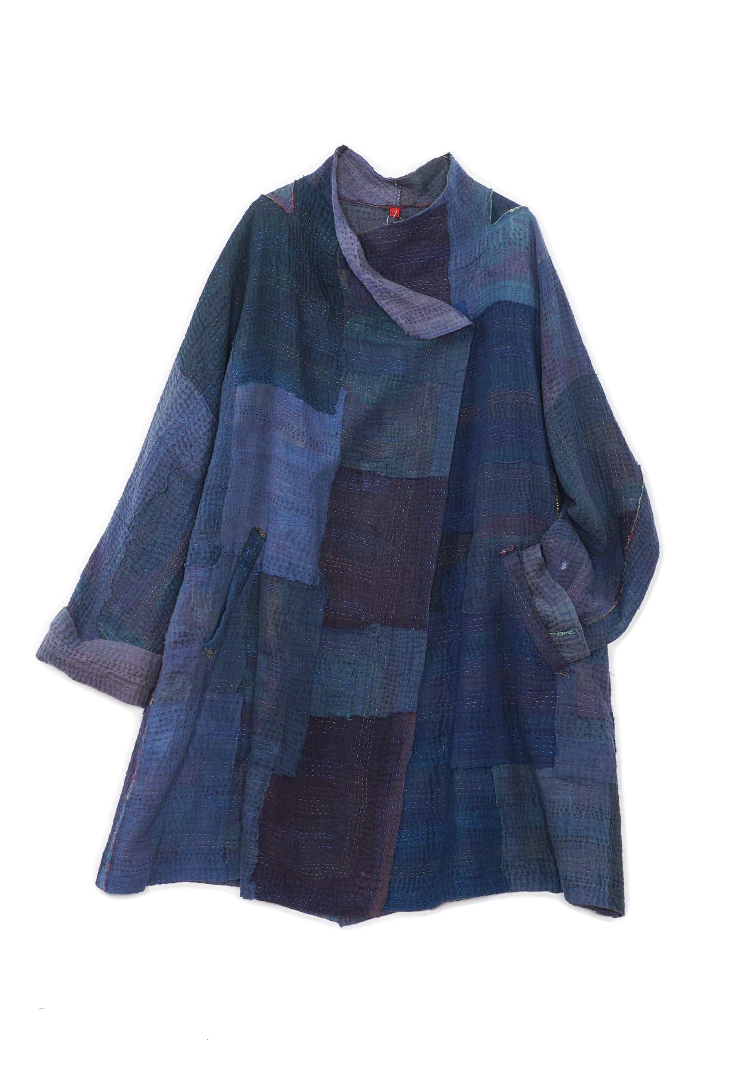 FRAYED PATCH KANTHA FUNNEL COLLAR COAT - fi4312-nvy -