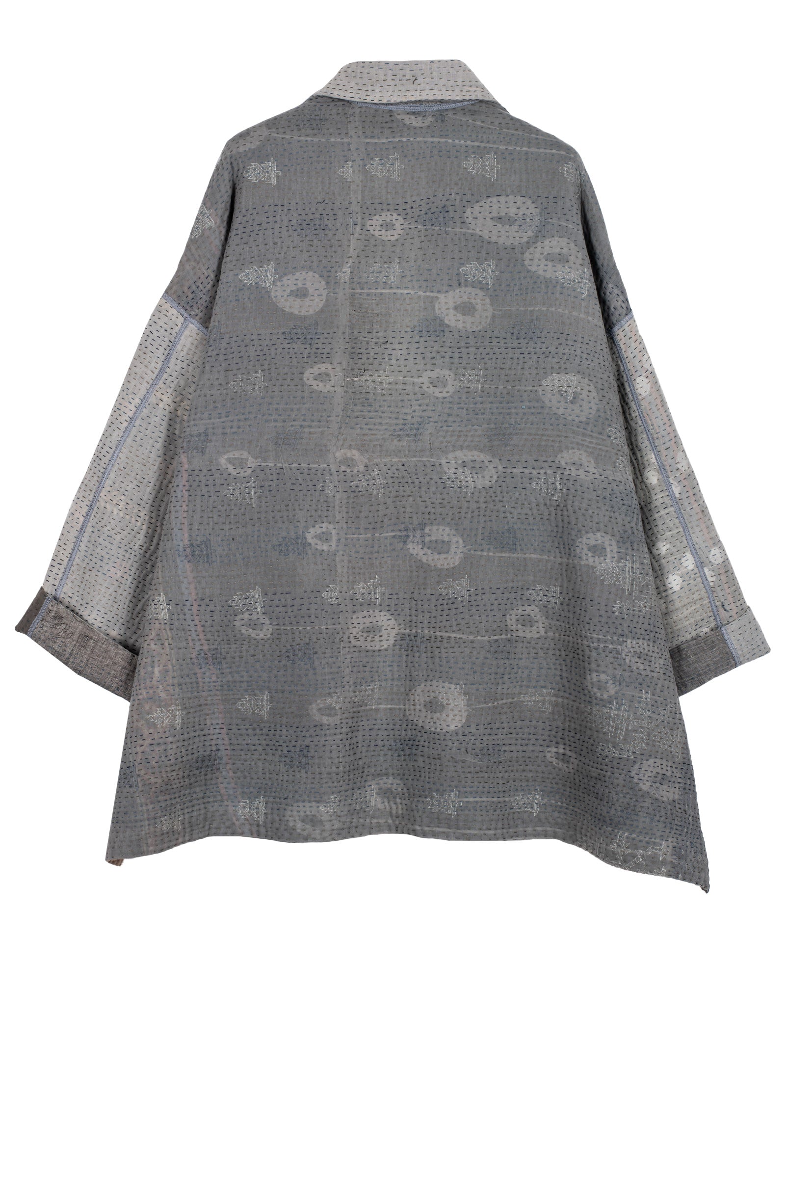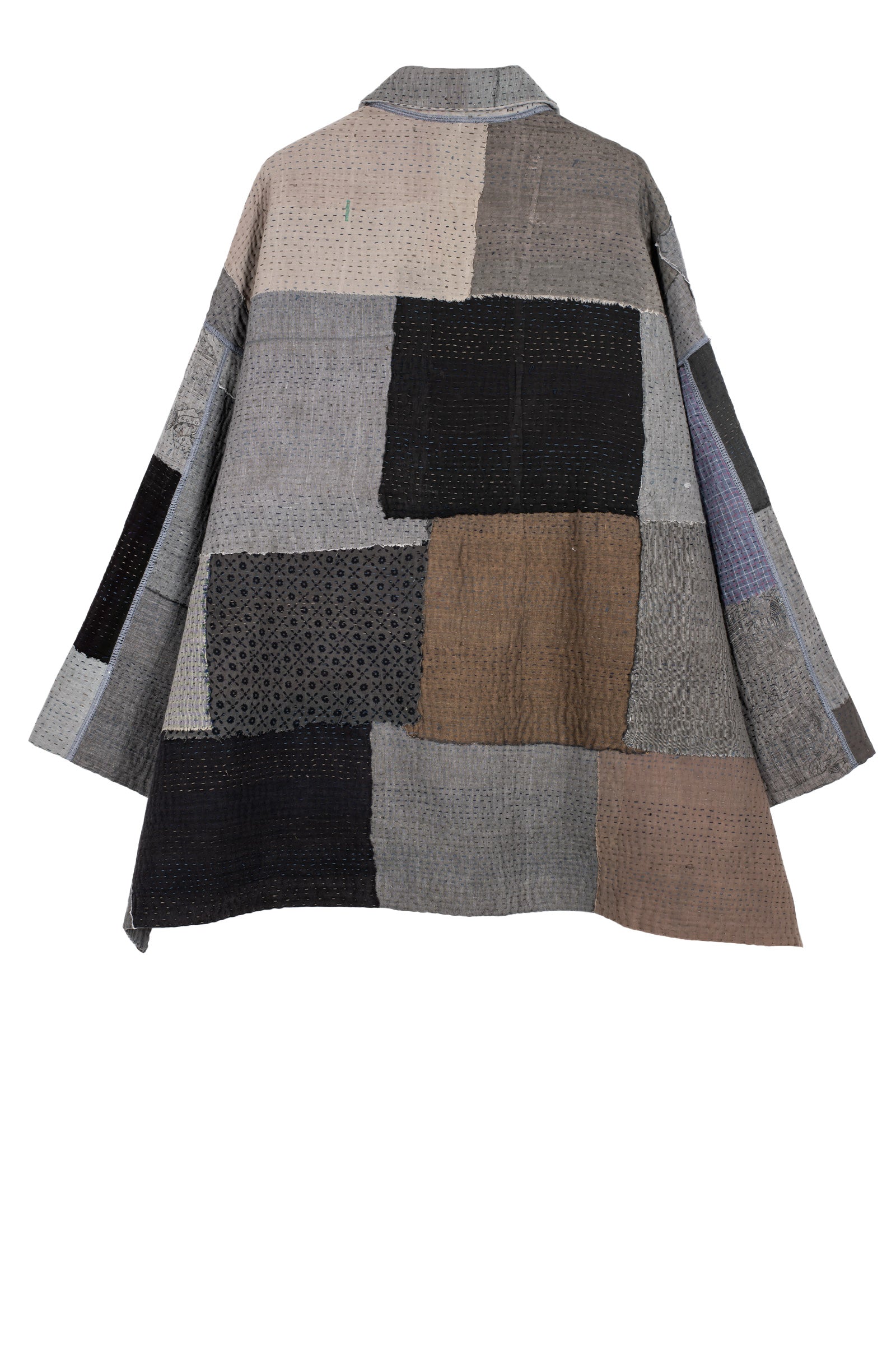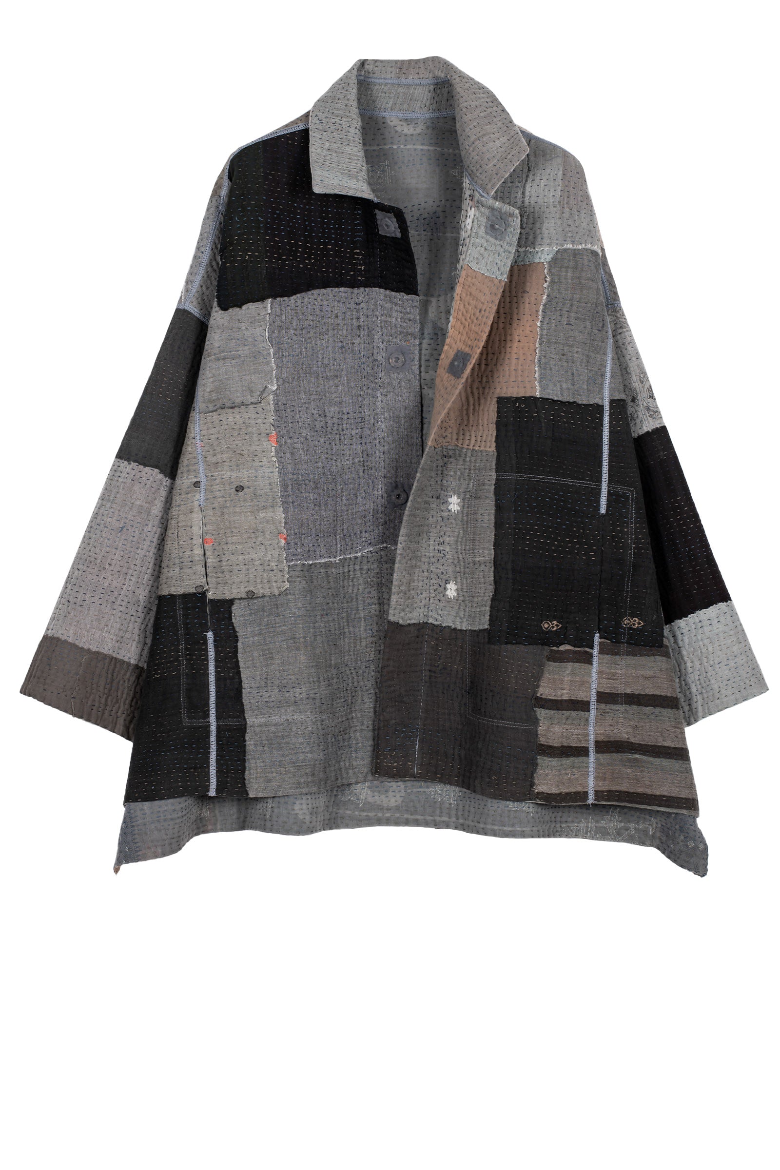FRAYED PATCH KANTHA OVERSIZED MINI COAT - fi4332-glk -