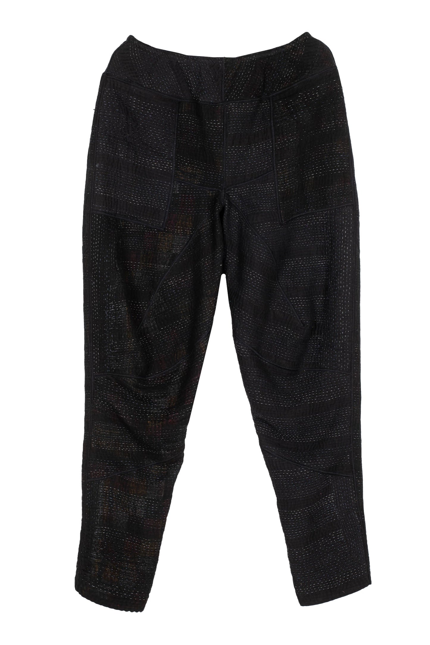 FRAYED PATCH KANTHA SHAPED YAMAHA PANTS - fi4638-blk -