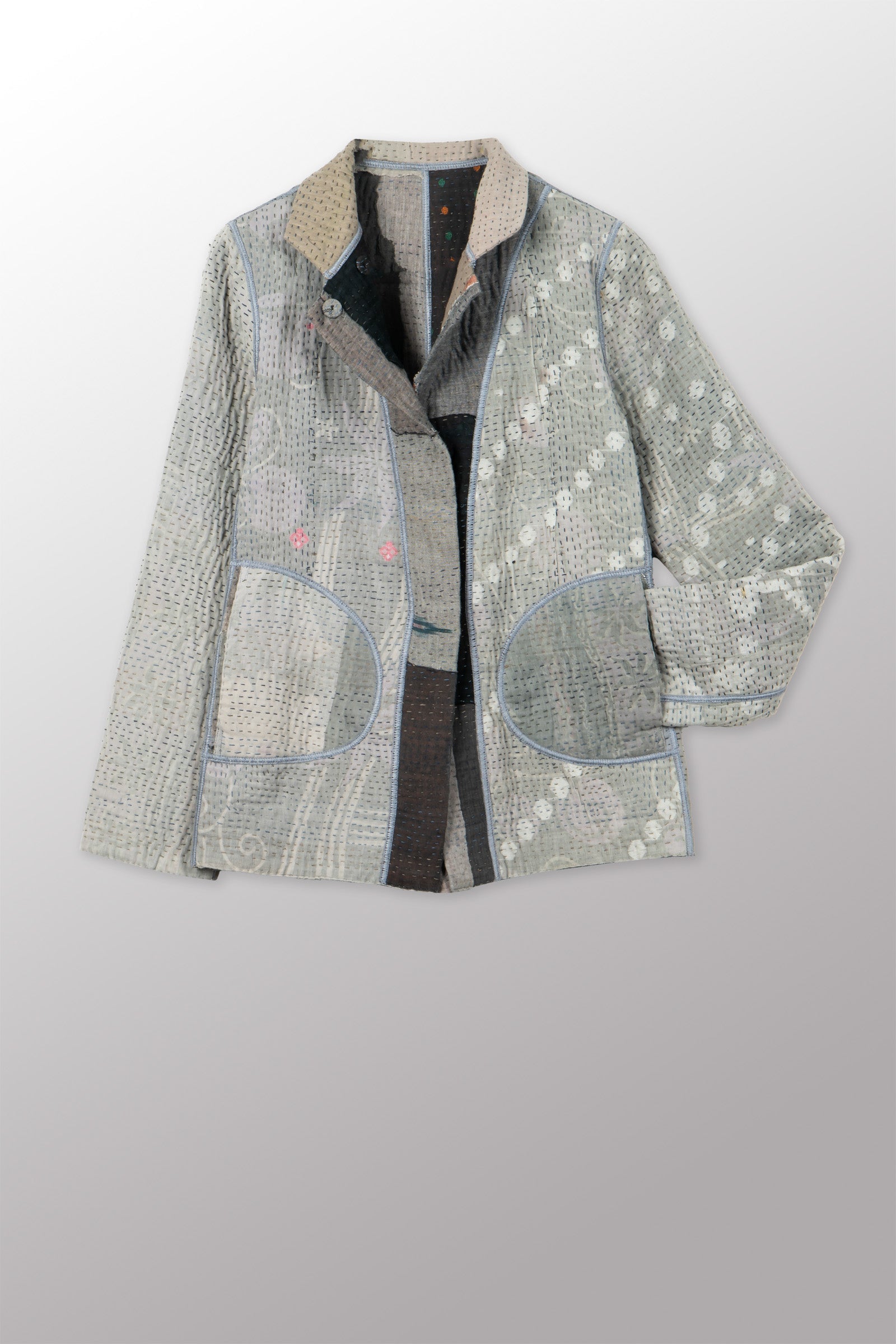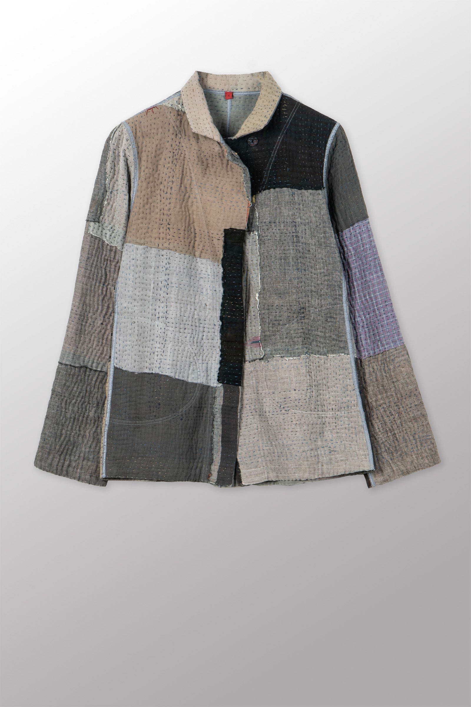 FRAYED PATCH KANTHA SIMPLE JKT - fi4022-glk -