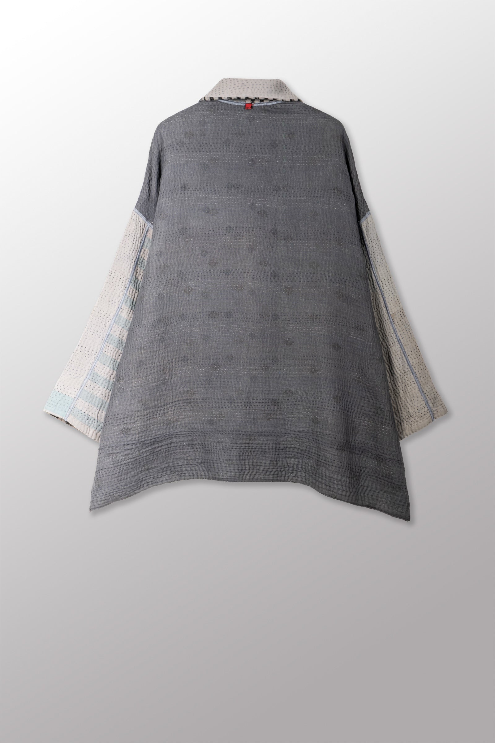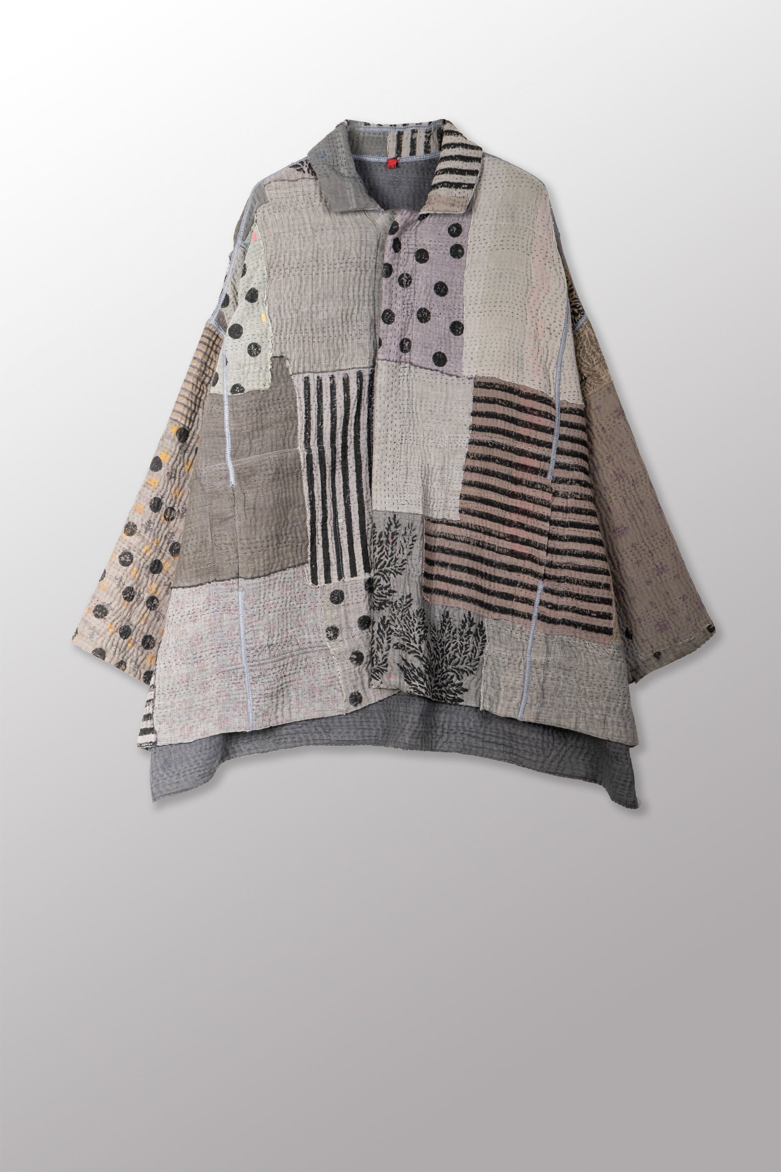 FRAYED PATCH KANTHA WITH STAMP RELAXED SHIRT JACKET - sp-fi4j105-gry -