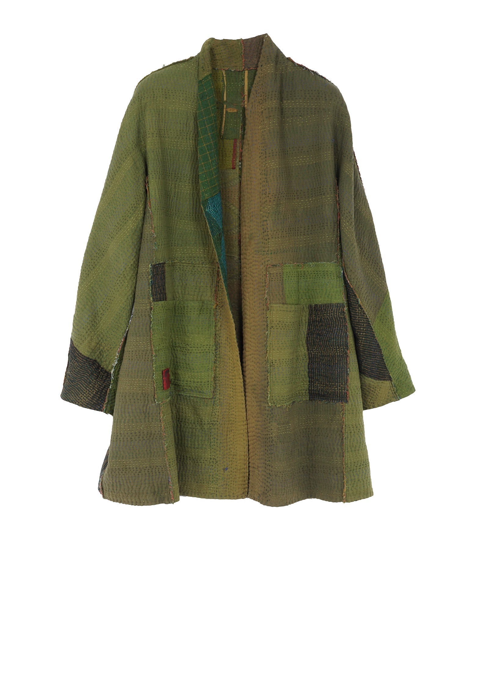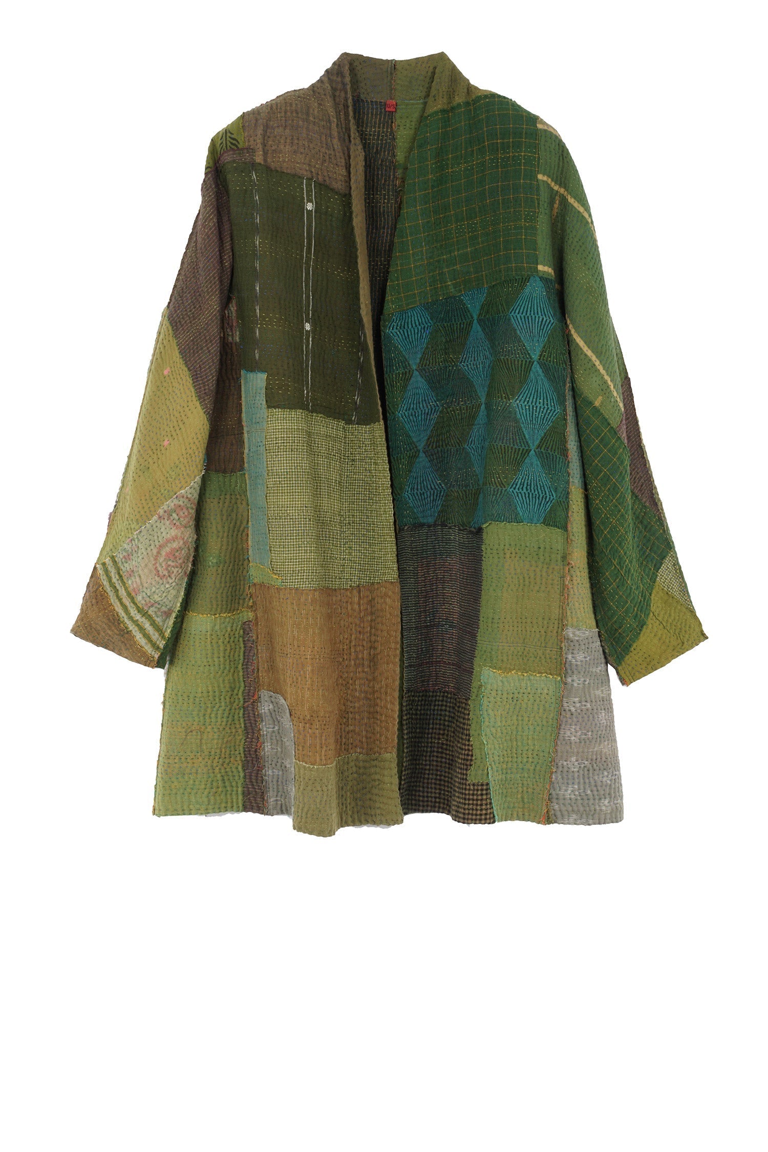 4 Layer Vintage Saris with Hand Stitches on Entire Garment - Reversible
