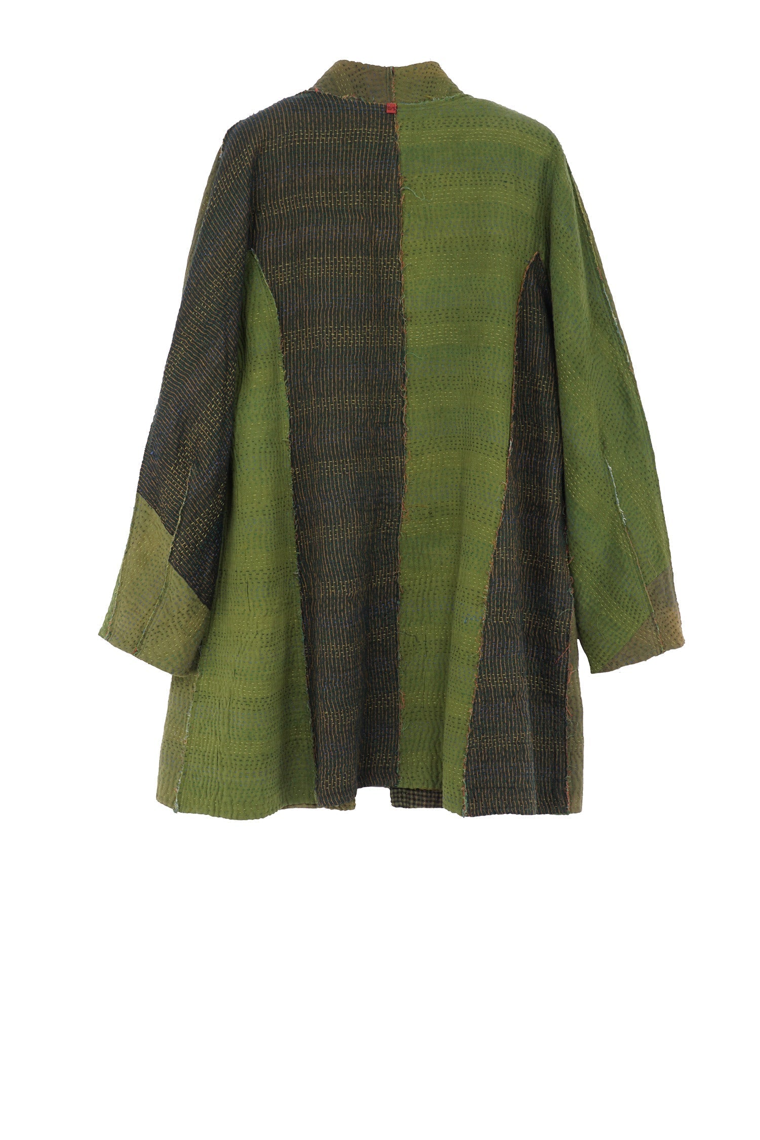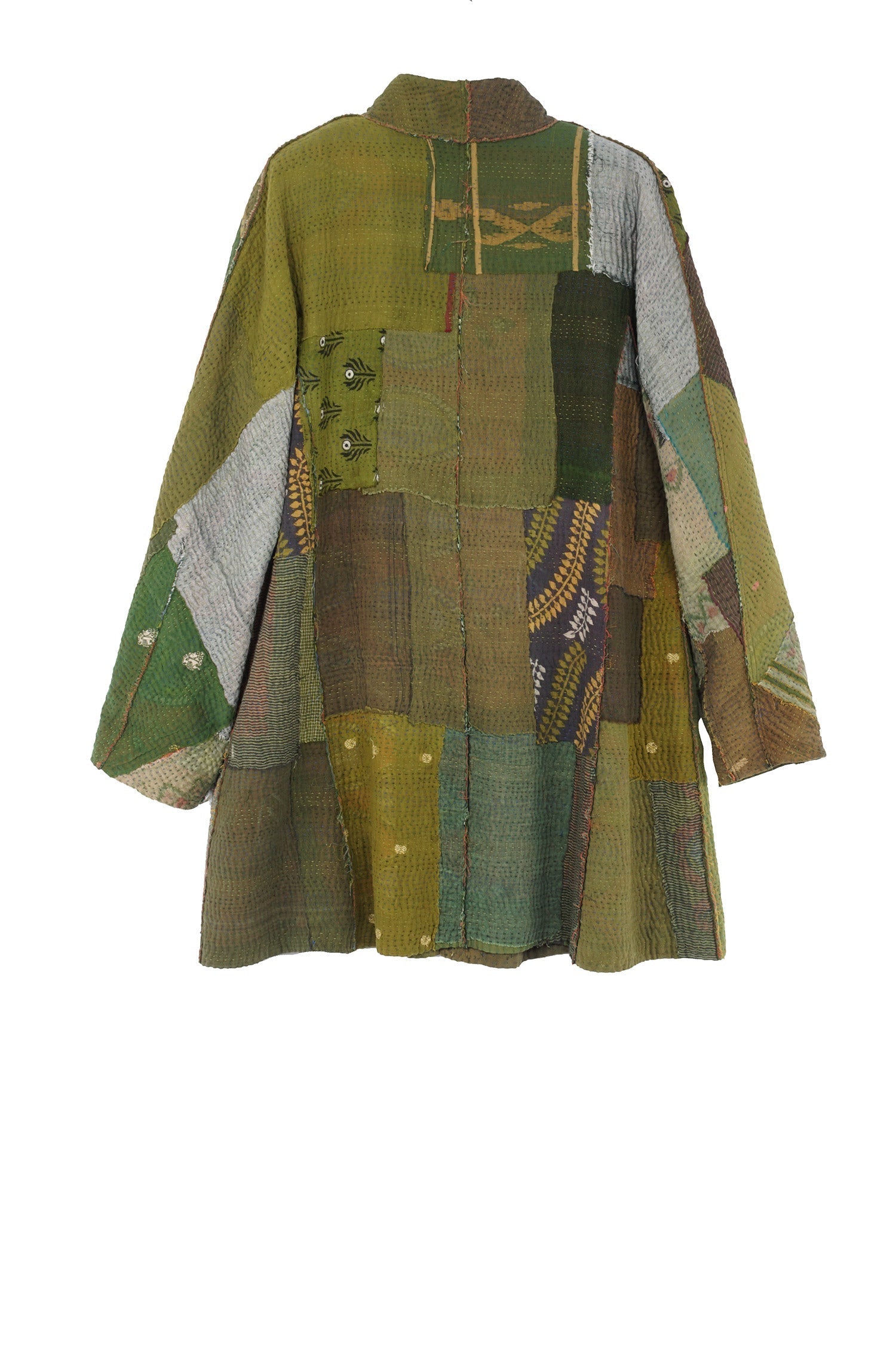 FRAYED PATCH MIX KANTHA HIGH-NECK TOPPER - fm4045-grn -