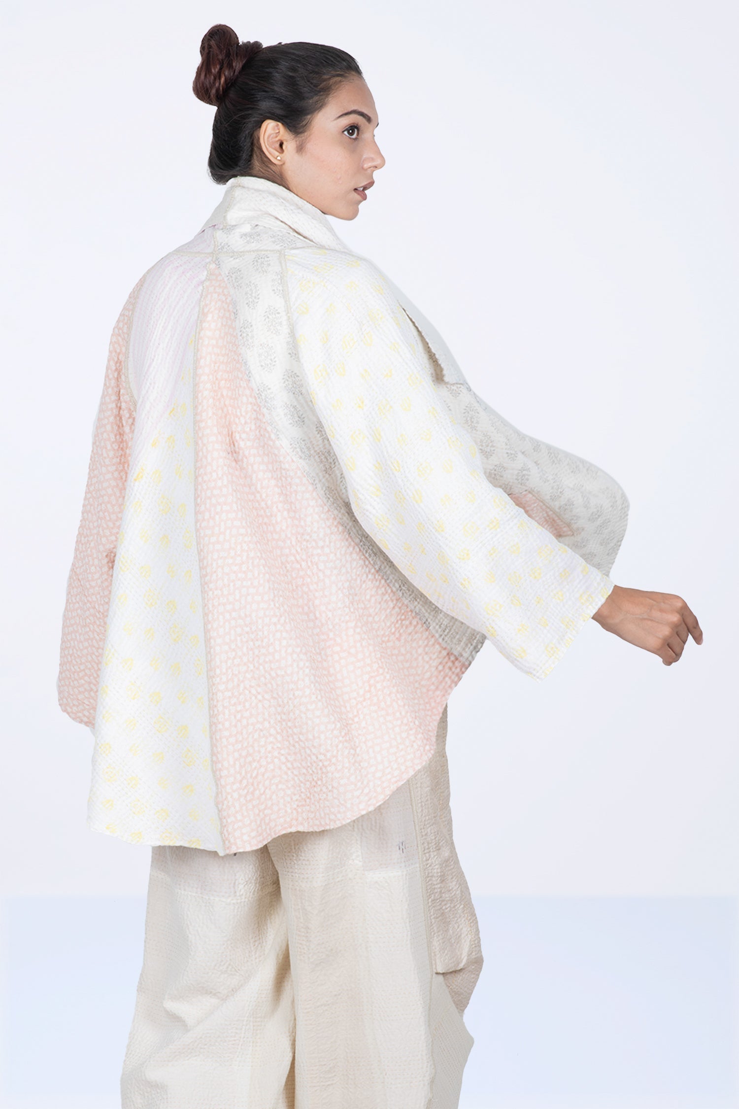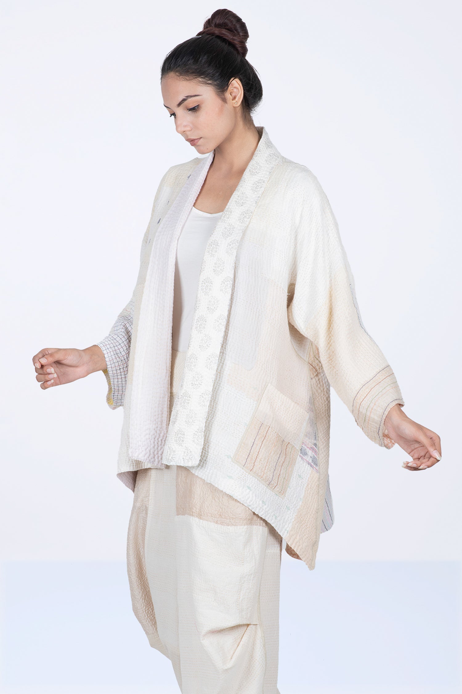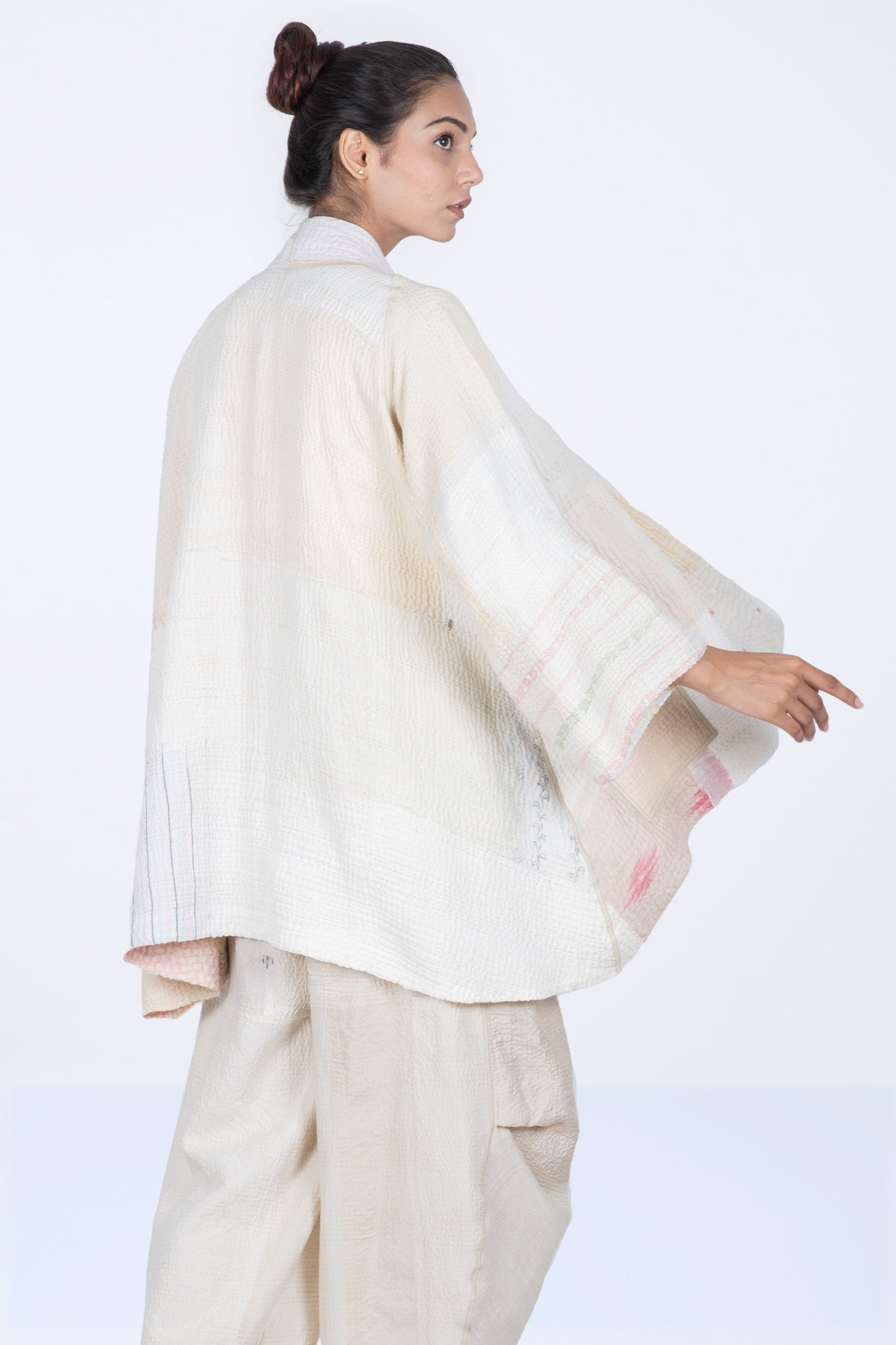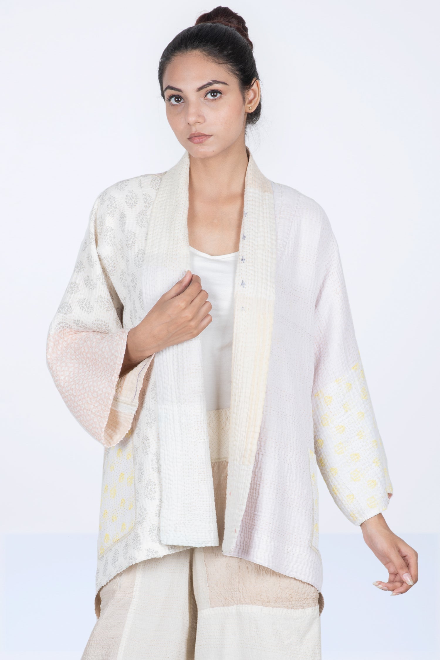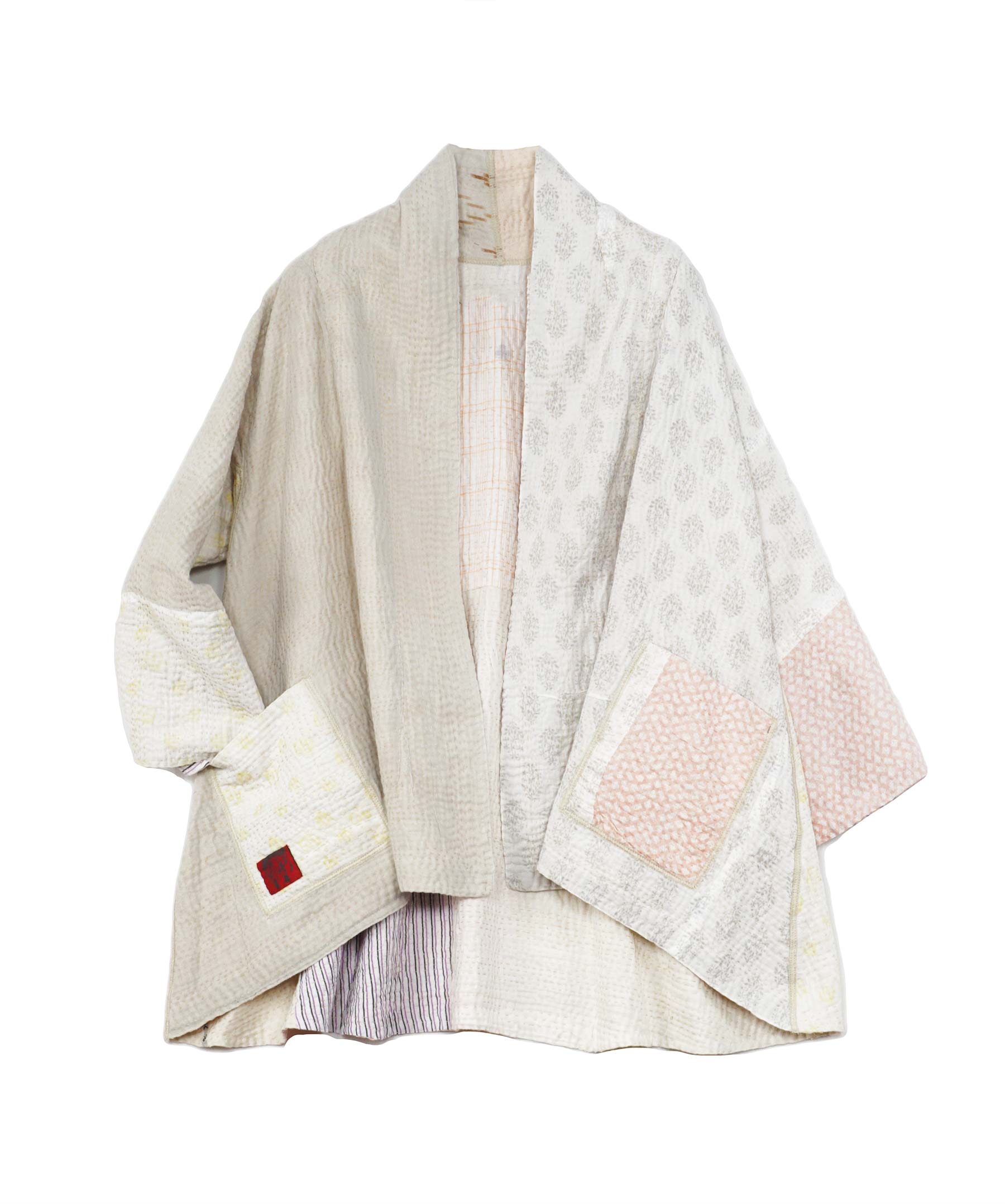 FRAYED PATCH MIX KANTHA KIMONO JKT - fm4004-ivy -